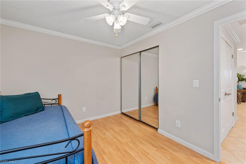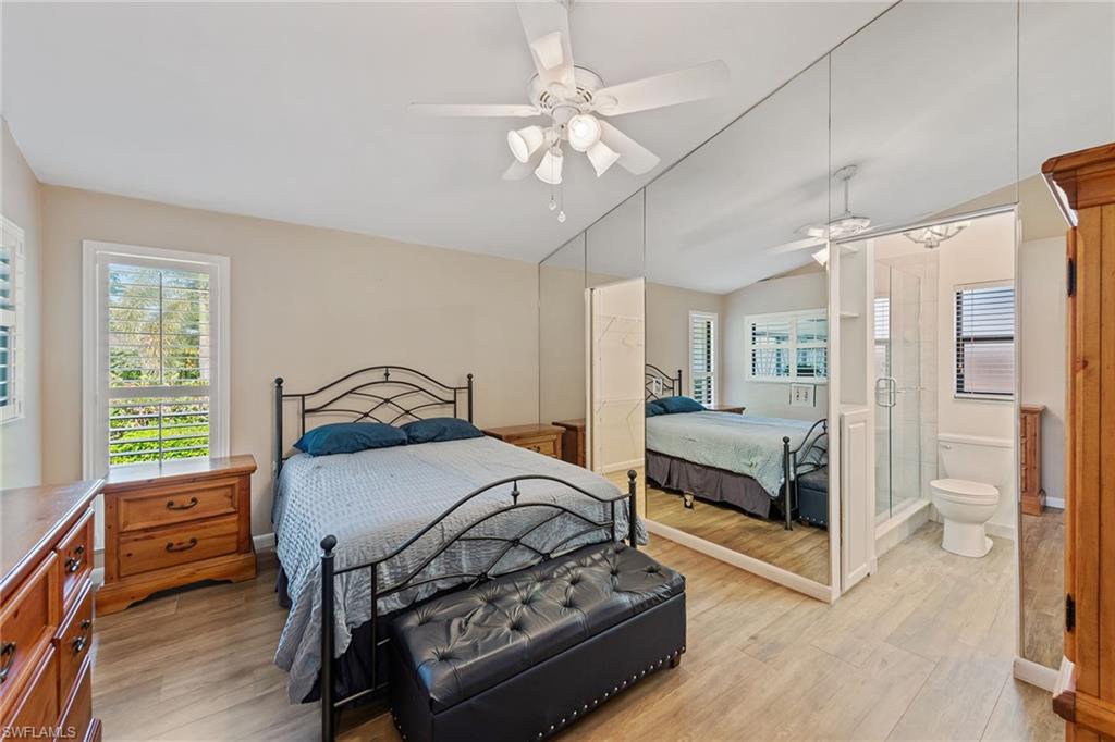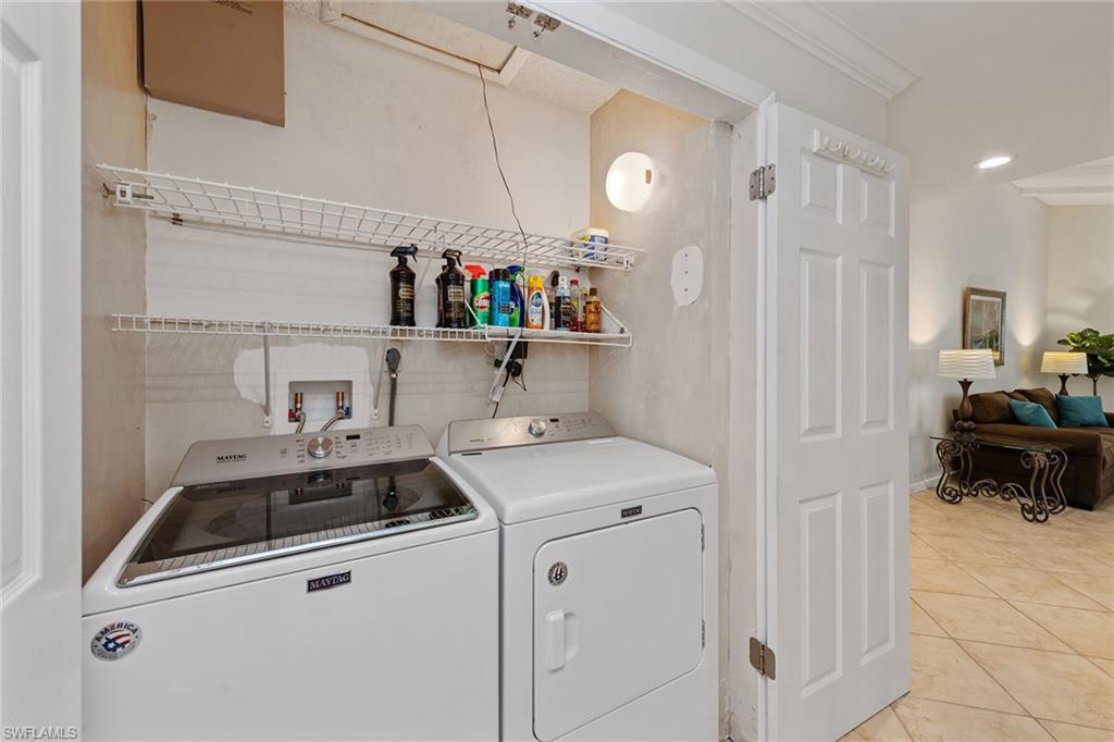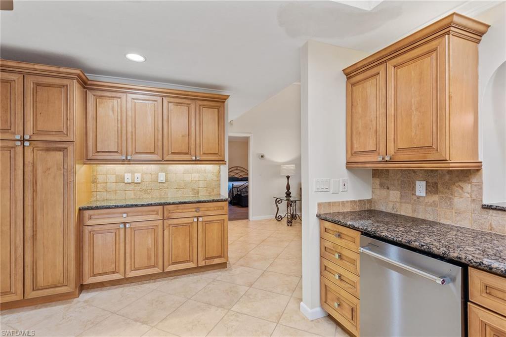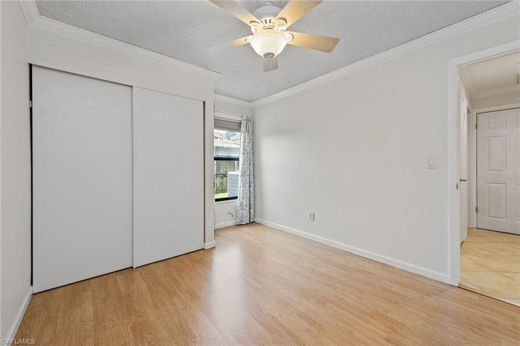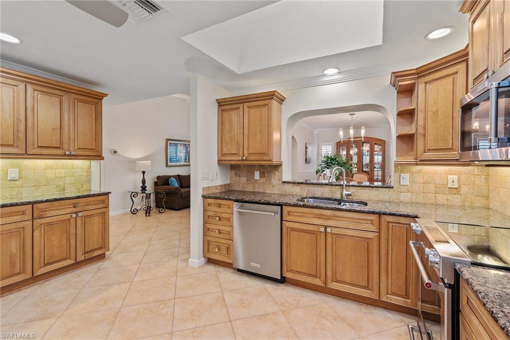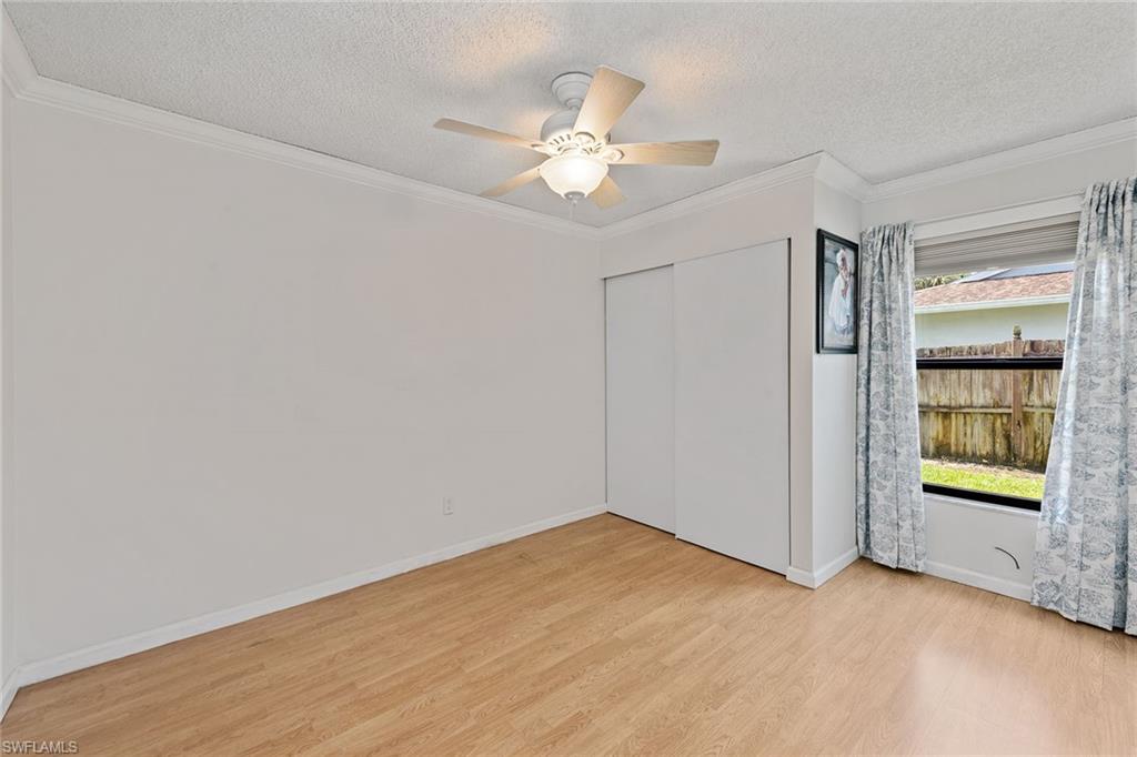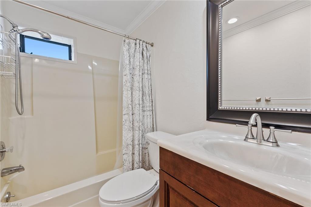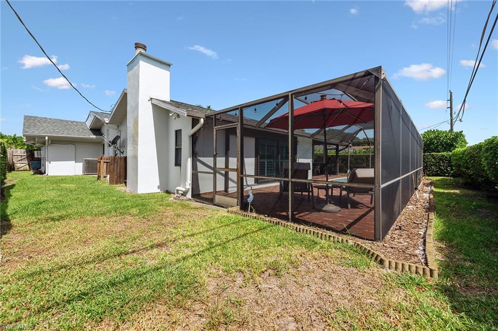 In a sought-after location just minutes from Naples’ pristine beaches, Waterside Shops, Venetian Village, and a short drive to Mercato, Fifth Avenue and Third Street, this single-family pool home offers a blend of convenience, comfort and investment potential—with no HOA fees. Ideal for investors, snowbirds and year-round residents, this property combines timeless charm with modern updates, creating a private oasis close to everything. Featuring three bedrooms, three baths, and a two-car garage with a newer garage door (2021), the home is designed for relaxed Florida living. Eastern exposure fills the living spaces with natural light, enhanced by impact doors and windows, high-volume ceilings, crown molding and white plantation shutters. Diagonal tile flooring runs through the main living areas, while the spacious kitchen impresses with quality cabinetry, a cabinet-style pantry with pullout drawers, granite countertops, tumbled marble backsplash, under-cabinet lighting and stainless steel appliances, including a KitchenAid dishwasher, microwave and smooth-top range (2020) plus a Maytag French door refrigerator. A skylight, recessed lighting, and ceiling fan complete the space. The formal dining room offers crown molding, wall trim, and a pass-through window to the kitchen, while the living room flows seamlessly to the screened lanai through new hurricane-resistant sliding glass doors installed in 2023. The inviting family room boasts a built-in entertainment area, wood-burning fireplace, built-in bar with quartz countertop, skylight, plantation shutters over sliders to the pool, and two ceiling fans. The owner’s suite features vinyl plank flooring, a mirrored wall, walk-in closet, and a renovated en-suite bath with a skylight, white vanity, and frameless glass walk-in shower. Two guest bedrooms with laminate flooring and crown molding share an updated bath with a shower/tub combo. Go outside to your private garden and enjoy a screened lanai with covered outdoor living, ceiling fan, and a paver pool deck surrounding the sparkling pool, ideal for entertaining or relaxing. With a new roof (2023), hurricane-resistant sliders (2023) and HVAC from 2018, this home is move-in ready in one of Naples best locations.