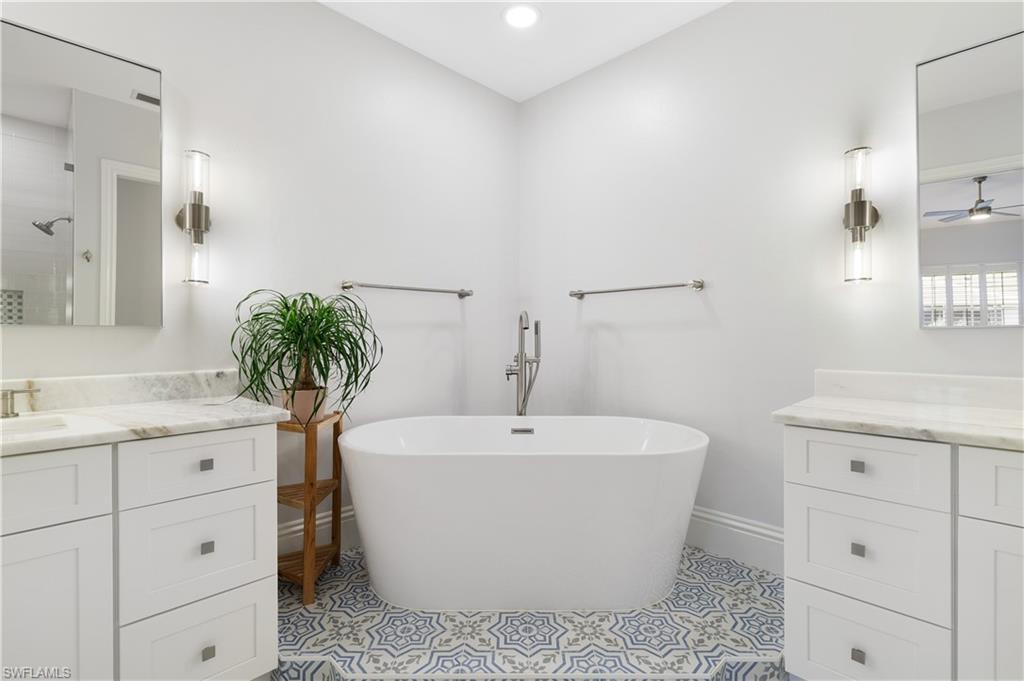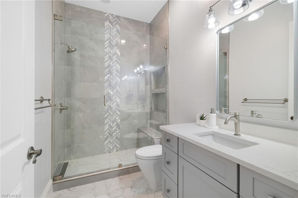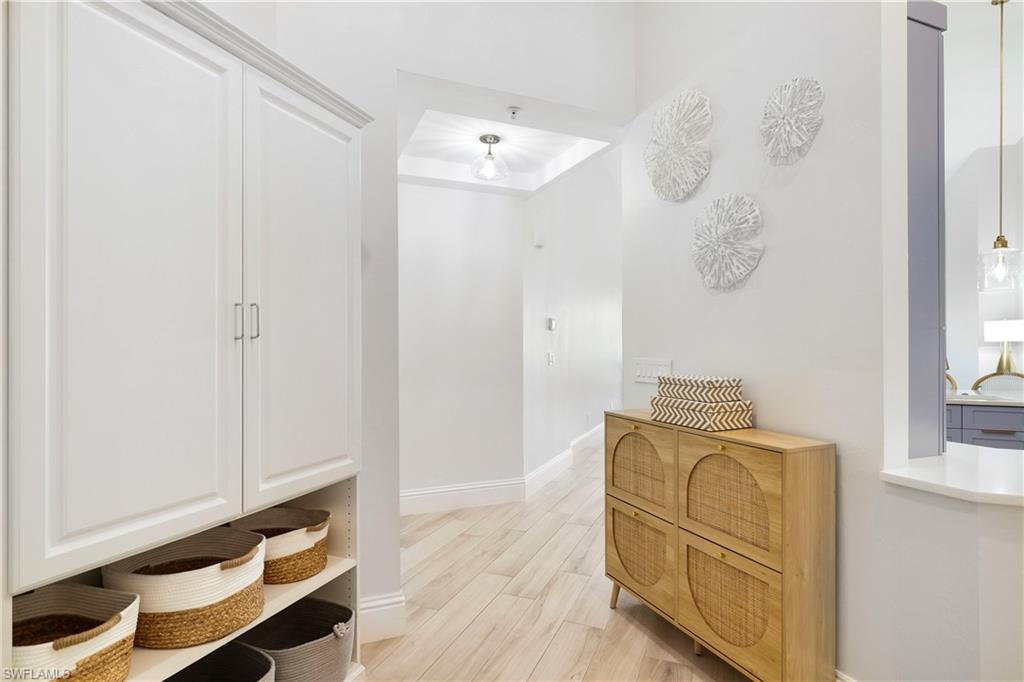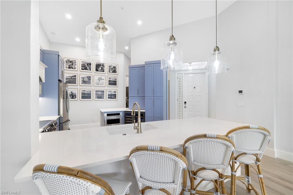 Welcome to Breakwater, Pelican Bay’s most coveted enclave of luxury coastal living. This three-bedroom, two-bath residence has been transformed into a showcase of modern elegance by Nicoletta & Co., one of Southwest Florida’s most celebrated design firms. While many homes in Pelican Bay require costly renovations, contractor coordination, and rising material expenses, this exceptional residence is move-in ready today, providing you with access to embrace the Naples lifestyle this season. Every detail of this renovation reflects thoughtful design and timeless sophistication. Throughout the home, wide-format 8x48 Jungle Bianco plank floor tile provides a luxury foundation that flows seamlessly from room to room. The reimagined kitchen features Fabuwood Galaxy cabinetry in a striking Ocean Blue finish, paired with Pompeii Quartz Avorio countertops. Bathrooms have been fully redesigned with today’s most sought-after finishes, while brand-new appliances, HVAC system, and water heater ensure lasting comfort and peace of mind. Positioned on the top floor, the residence is bathed in natural light and offers soaring ceilings that elevate the sense of space throughout. Three spacious bedrooms and two impeccably styled baths create an ideal setting for both entertaining and private retreat. Elevator access enhances convenience, while the oversized two-car garage equipped with electricity directly tied to the unit offers the option of a fully air-conditioned space. The Breakwater community itself has recently undergone extensive improvements, including new roofs and fresh exterior painting, with further enhancements underway. Located directly across from Bay Colony, Breakwater offers residents both privacy and proximity. And with a foundation membership in Pelican Bay, you’ll enjoy Naples’ premier lifestyle: private beach access, beachfront dining along the Gulf, world-class tennis, a cutting-edge fitness center, and miles of scenic walking paths shaded by mangroves. This is more than a residence it is a turnkey opportunity to immerse yourself in the unparalleled beauty and lifestyle of Pelican Bay. Skip the stress of renovations and step immediately into a home that embodies effortless sophistication.This rare, fully renovated gem in Breakwater is ready for you to enjoy this season with no delays, no stress, just pure Naples coastal living.
