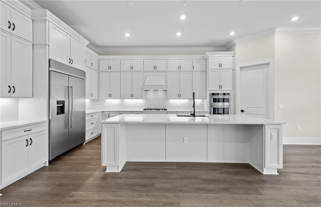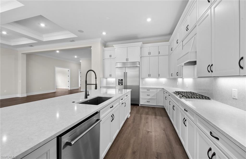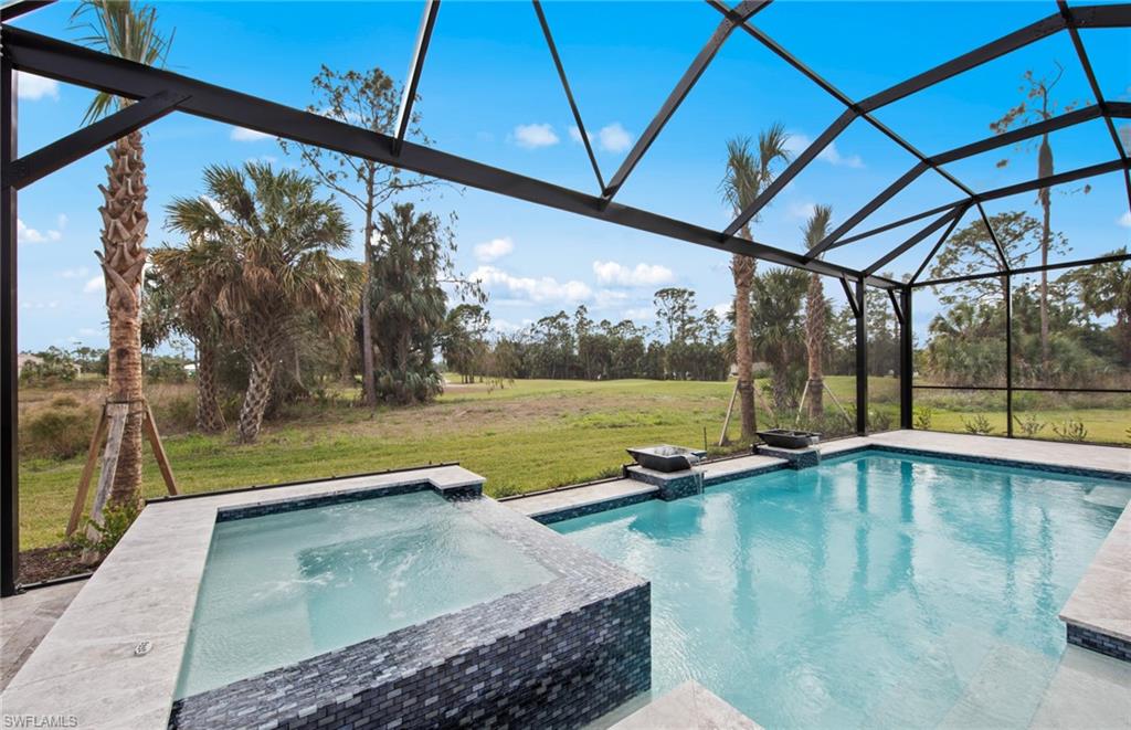 Move to Terreno this year! This Layton Home with a Golf Course View features a Custom-Designed Screened-In Pool & Spa, a Freestanding Tub in the Owner’s Bathroom, Outdoor Kitchen Pre-Plumbing, an Upgraded Laundry Room, Built-In Kitchen Appliances, & so much more! Terreno by DiVosta is a gated community offering a resort lifestyle with open floor plans, gourmet kitchens, and large outdoor living spaces. For those looking for resort lifestyle communities with private amenities and modern houses, or luxury homes for sale in Naples, FL, Terreno should be your top choice. Neighborhood features include a 15,000 sq. ft. grand clubhouse with large community room for events, catering kitchen, state-of-the-art fitness center, exercise studio, 8 pickleball courts, 2 tennis courts, dog park, playground, firepit lounge, resort style pool, lap lanes, heated spa, full-service restaurant bar & grill, food truck drive-up, 18-hole public golf-course next door & more! Photos are from a completed home of the same model. Options for this home may vary.