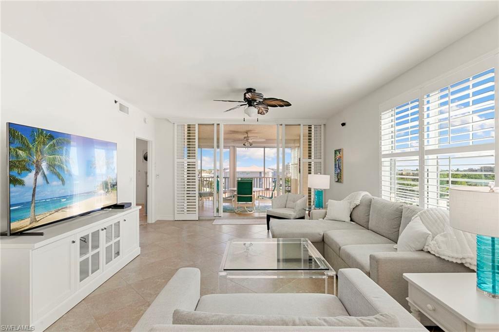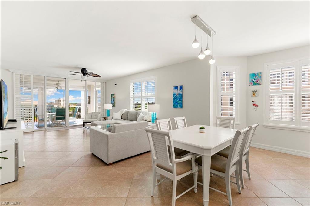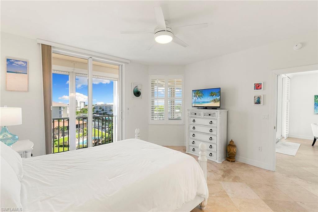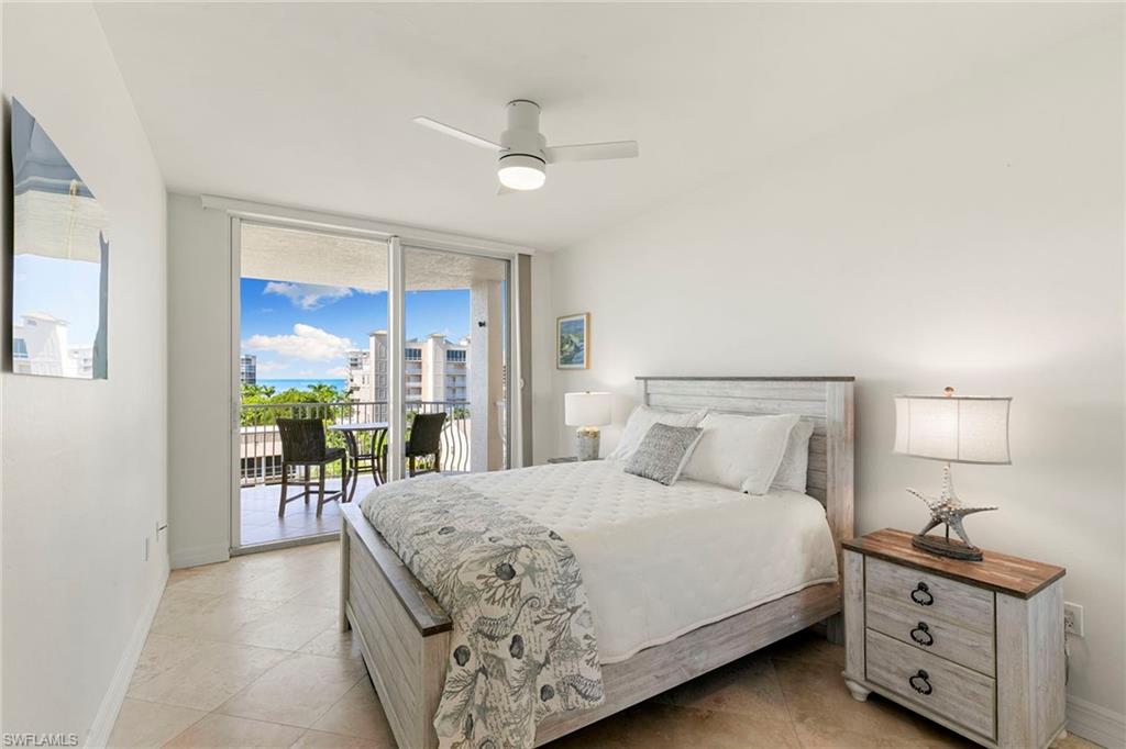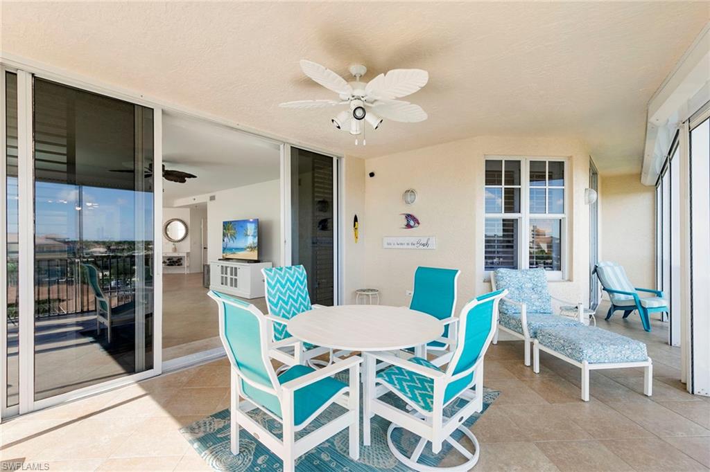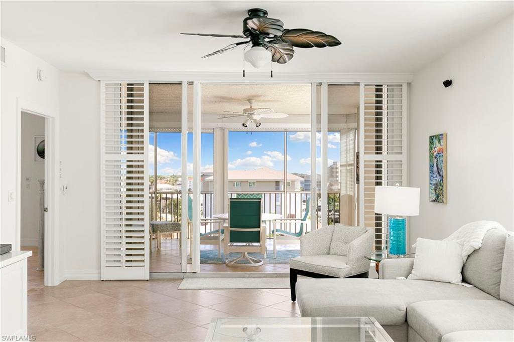 Steps from the sand, with sweeping water views—welcome to your Marco Island retreat. Built in 2001, this spacious and impeccably maintained sixth-floor residence offers the rare combination of newer-construction peace of mind and a prime South End location just a short walk to the beach. A private foyer entry creates a warm, home-like welcome before opening into an airy, open-concept living area where natural light and views take center stage. The screened lanai, shared by the primary suite and family room, overlooks the pool with long waterway views by day and the twinkling Marco Island skyline by night. A second balcony, accessed from both guest bedrooms, captures beautiful Gulf views. The updated, light-filled kitchen features Café appliances, and flows seamlessly into the dining and living areas. Custom plantation shutters enhance the abundant natural sunlight. Additional features include a private one-car garage, electric shutters on the main lanai, and an in-unit washer and dryer. Residents enjoy a heated pool, clubhouse with fitness center and the option to lease a boat slip via lottery. Offered furnished, this condominium blends location, views and comfort in one exceptional Marco Island address.