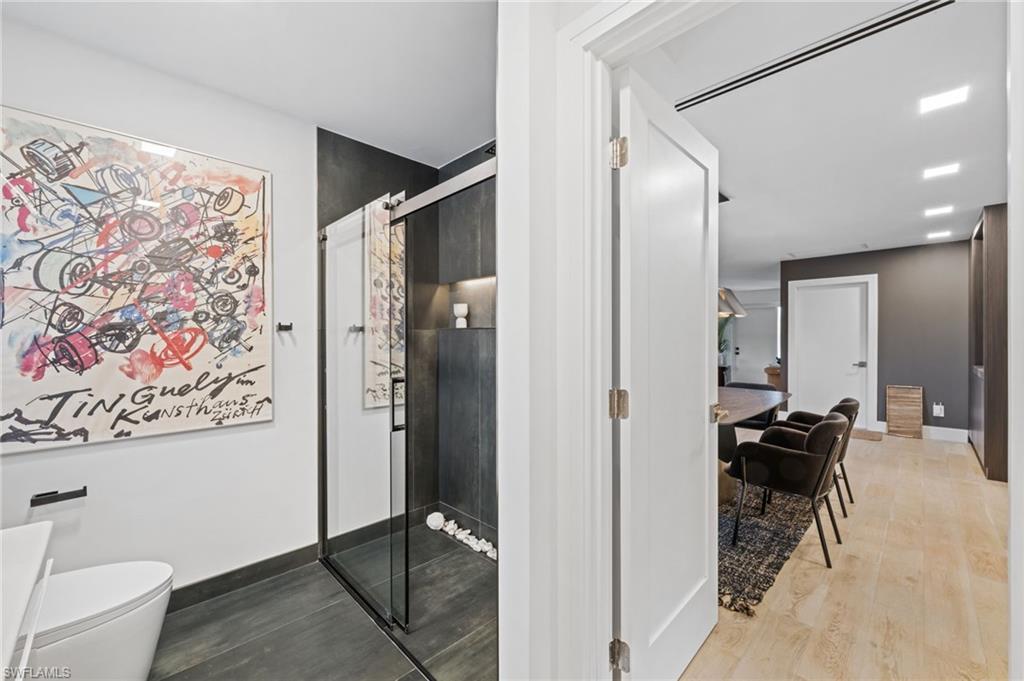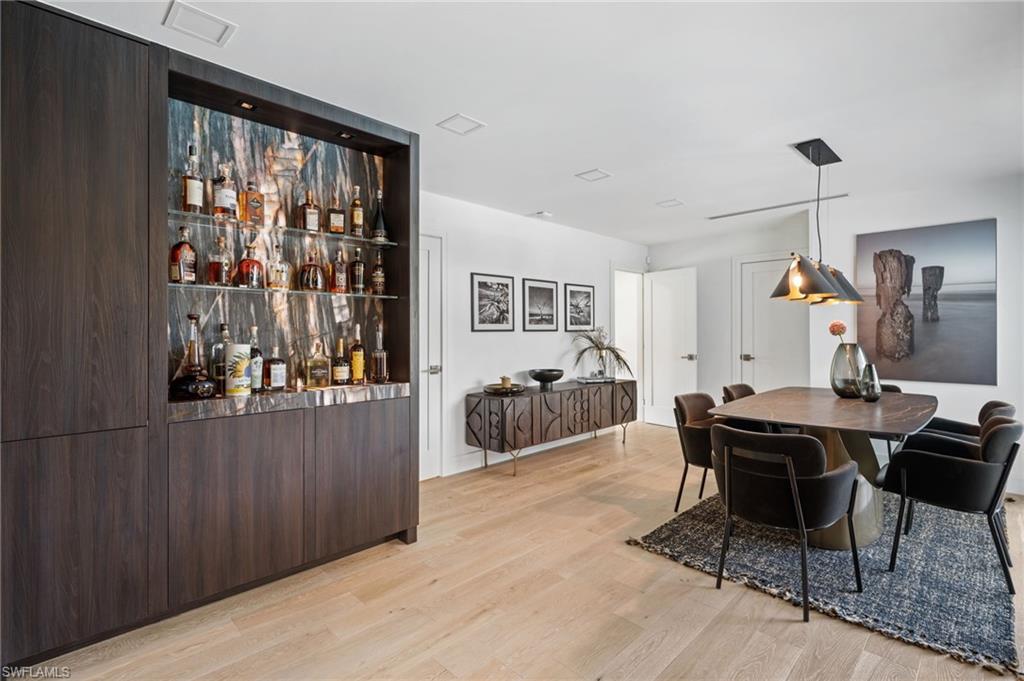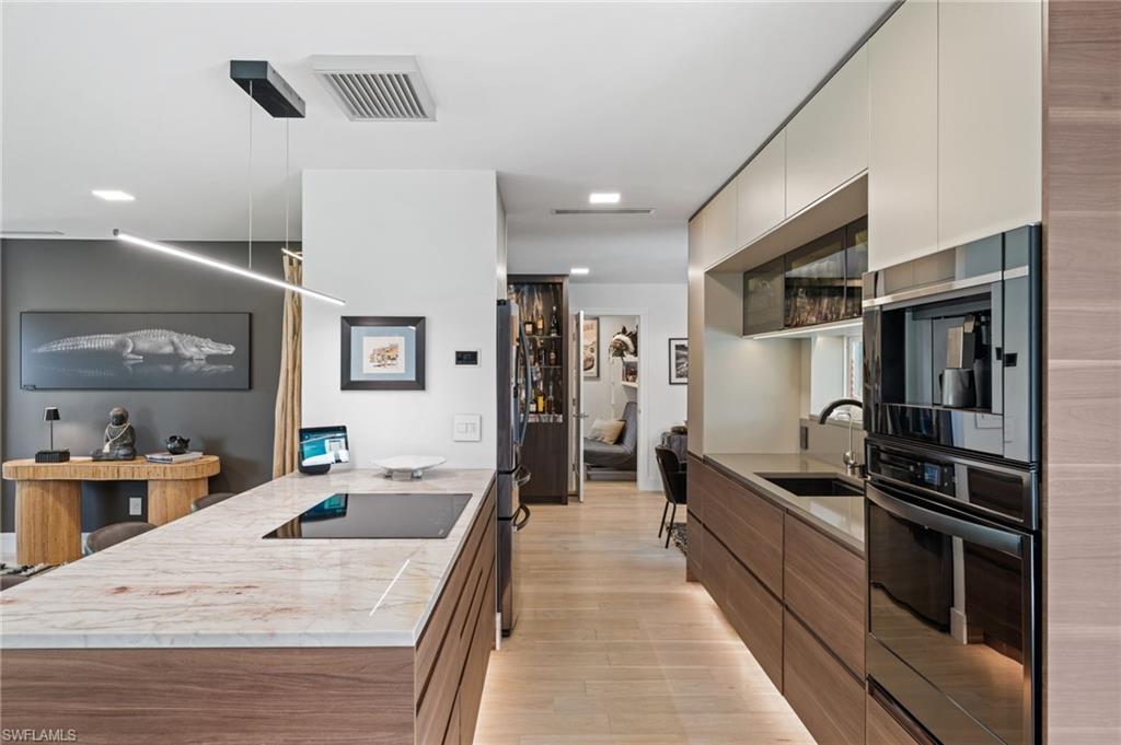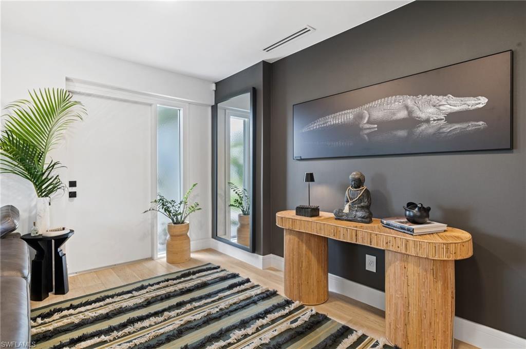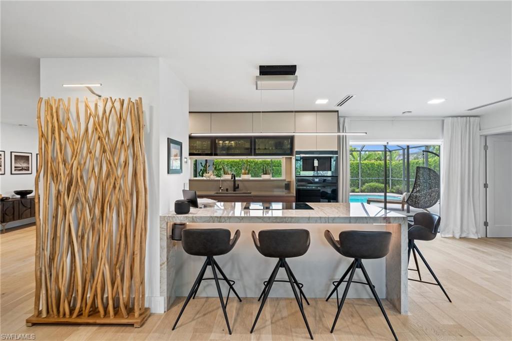 COMPLETELY REMODELED 2021. RESIDENCE COMES TASTEFULLY FURNISHED WITH LUXURIOUS , HIGH-END FURNITURE, CREATING AN ELEGANT AND MOVE-IN READY LIVING SPACE. THIS STUNNING 3-bedroom home offers EXEPTIONAL QUALITY and one-of-a-kind contemporary design. Every detail has been thoughtfully curated, from the open-concept floor plan to the imported natural stone accents from Brazil. The kitchen features a spacious island, a rare backsplash window that creates beautiful light effects, a bar area with dramatic backlit stone, and premium appliances including a smart Whirlpool oven, built-in Fisher & Paykel coffee machine, Bosch dishwasher, and smart Samsung washer/dryer. The luxurious primary suite boasts an open California-style lighted closet concept, while the home’s smart features enhance comfort and convenience throughout. Step outside to a large swimming pool and expansive outdoor living area, fully enclosed with lush privacy landscaping. LOCATED just 3 miles from 5th Avenue South, this home combines style, location, and LOW HOA fees—perfect for those seeking something truly unique and move-in ready. ROOF WITH DOUBLE INSULATION- 2021,WINDOWS-2022 WITH ASTRO GUARD HURRACAINE PROTECTION-HVAC-2021, ALL ELECTRIC, PUMBING AND DRYWALL 2021, POOL HEATER AND POMP 2023. ALL WORK PERMITED AND INSPECTED. A true Naples gem that must be seen to be appreciated!