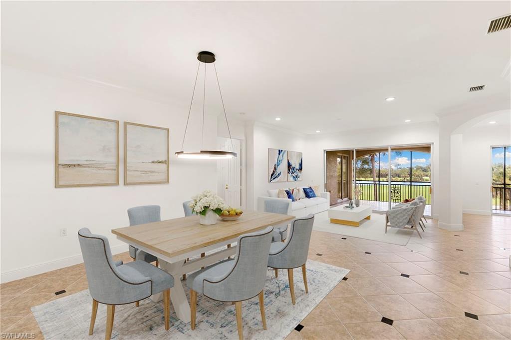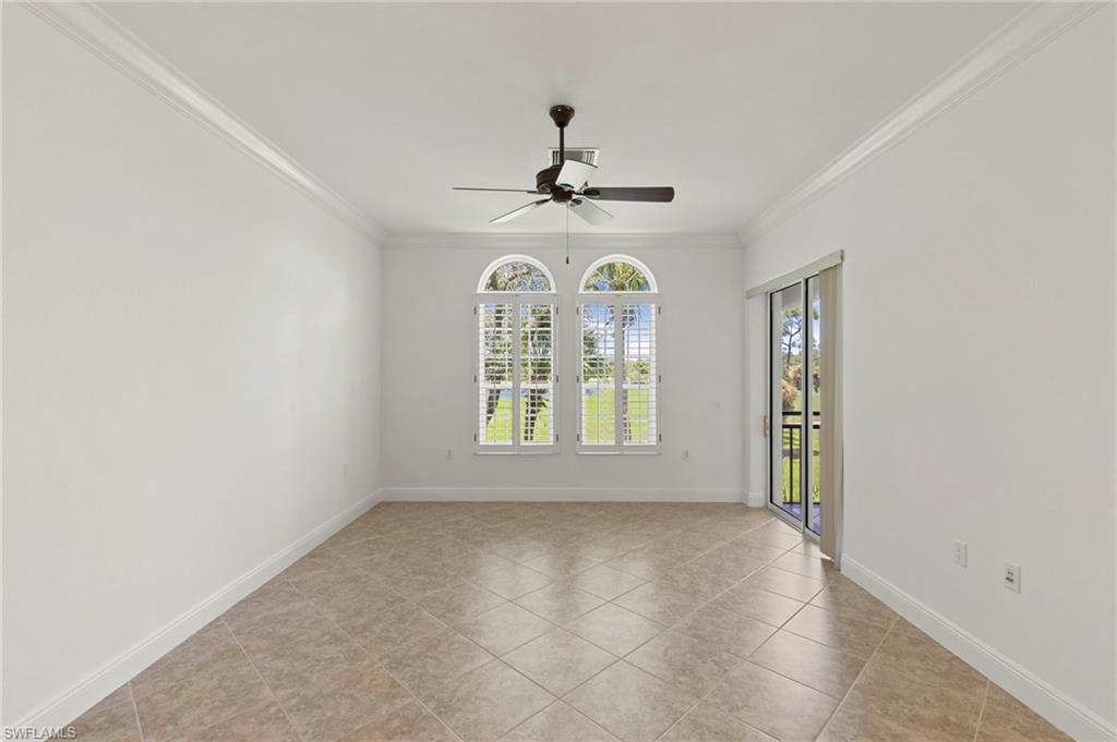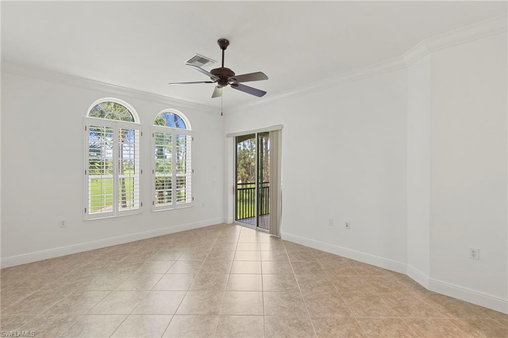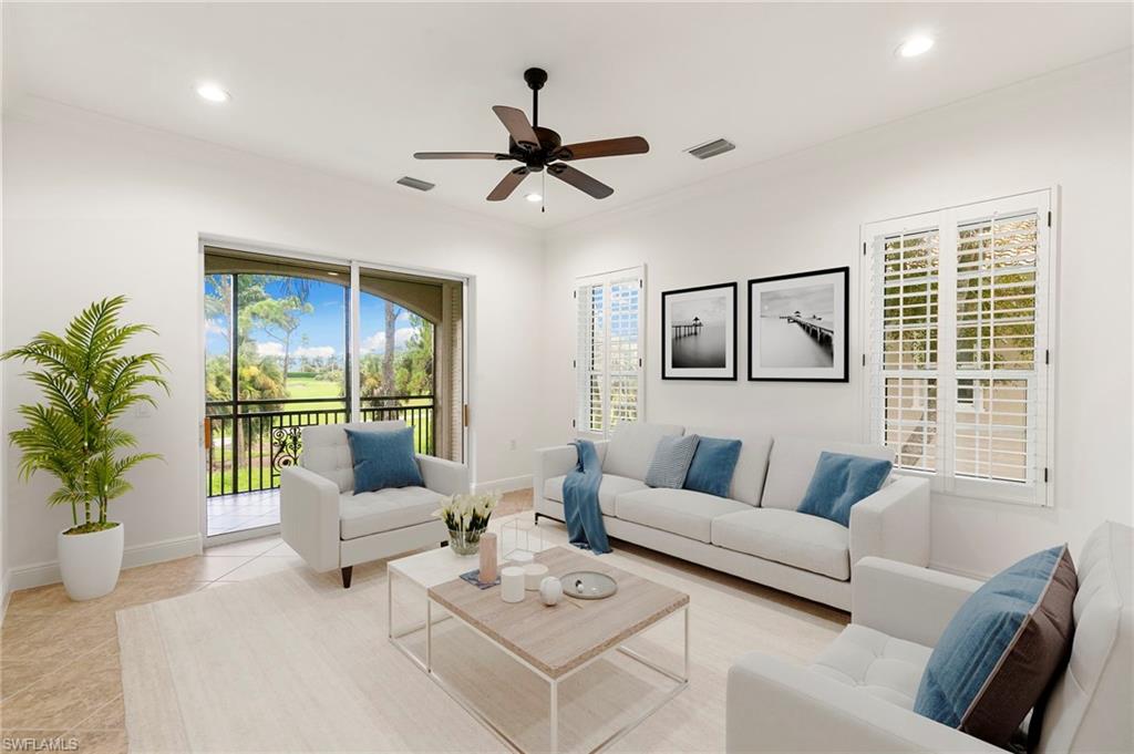 Step into elegance and comfort with this expansive 3-bedroom + den, 3-bathroom end-unit condo located in the well-regarded Cherry Oaks neighborhood. Boasting over 3,000 sq. ft. of interior space, this residence offers the ultimate in resort-style living. Enjoy panoramic golf course and serene water views from your private, expansive lanai — perfect for entertaining or relaxing and enjoying every Florida sunset. Enjoy intimate meals in your eat-in kitchen featuring granite countertops and a generously spacious pantry, or let the evening take you into your formal dining room where memories are waiting to be made. The property is further enhanced by crown moulding throughout and plantation shutters that adorn the home’s impact glass windows. With rich wood flooring, built-ins, and crown moulding, the den lends itself as an ideal space to express one’s more studious side. Complete with a 2-car garage, high ceilings, generous storage, and storm screens this home delivers luxury, convenience, and security. Don’t miss this rare opportunity to own a beautifully maintained, move-in ready condo with unparalleled views and space! The resort style community of Fiddler's Creek is enhanced by a club and spa, fitness center, swimming pools, two golf courses, tennis courts, pickleball courts, a bocce court, fine and casual dining, social activities, and miles of biking and walking paths. Optional beach club and marina memberships are available. Experience the epitome of luxury living, where every detail is thoughtfully curated to complement your lifestyle.