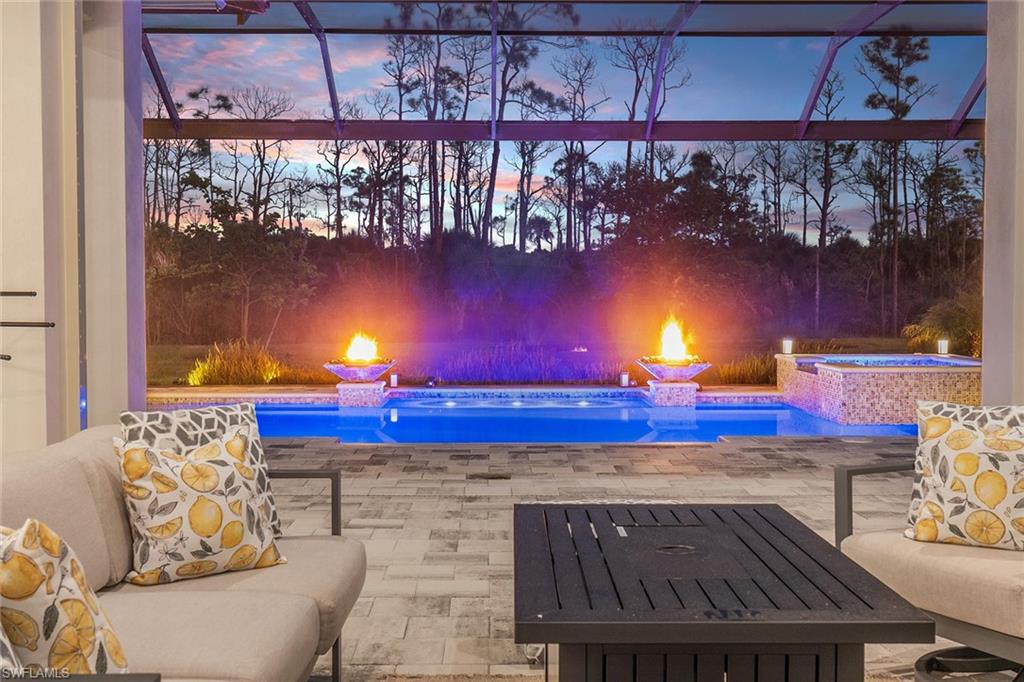 Welcome to this exquisite Madison II Stock built residence, a true gem in the prestigious Isles of Collier Preserve! Experience the pinnacle of luxury living in a home that beautifully integrates elegance with the surrounding natural beauty. The open-concept living area is ideal for entertaining, featuring high coffered ceilings and a gourmet kitchen equipped with upgraded appliances, a large island, a beverage center, a wine cooler and a walk-in pantry. The primary suite offers a lavish retreat with spa-like amenities and spacious walk-in closets. Every bedroom boasts en-suite baths, and a dedicated home office accommodates family needs. Go outside to your private oasis—a screened lanai with views of untouched landscapes, and indulge in the gas-heated saltwater pool and spa, accentuated by fire bowls. Noteworthy features include warm engineered wood flooring, electric interior blinds on sliders, outdoor lighting, an indoor sound system, electric storm protection for the patio, a split air-conditioning unit in the garage, an on-demand hot water system, a rough-in for an outdoor fireplace, a buried 500-gallon propane tank with generator, a whole-home surge protector and a mosquito protection system. At the heart of ICP, enjoy the vibrant community life with access to the clubhouse, exceptional amenities, dining at the Overlook Bar & Grill, walking trails, bocce, tennis, pickleball, kayaking and a state-of-the-art fitness center. Isles of Collier Preserve presents a lifestyle embraced by the beauty of nature. This magnificent home stands ready to offer tranquility and sophistication. Not in a flood zone.