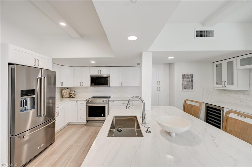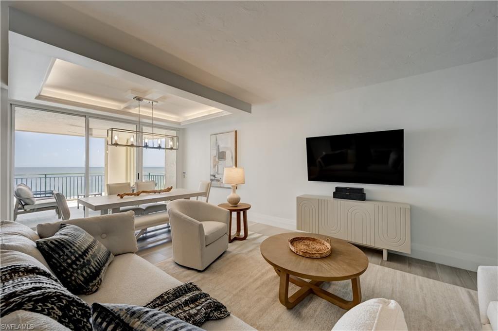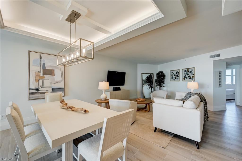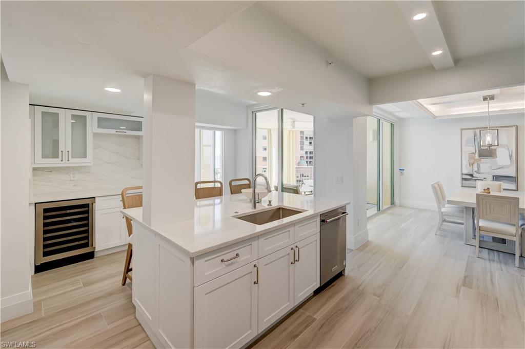 Marco Island Gulf-Front Elegance – Renovated 7th-Floor Condominium. Welcome to coastal sophistication at its finest. Perched on the 7th floor with sweeping views of the Gulf of Mexico, this completely renovated 3-bedroom, 2-bath condominium invites you to experience the very best of Marco Island living. Whether your dream is a year-round residence or a seasonal escape, this home delivers both comfort and luxury in every detail. The open-concept layout is filled with natural light, offering an effortless flow for entertaining or quiet relaxation. Crown molding and wood-look tile throughout set a polished tone, while a coffered ceiling adds distinctive character. The kitchen is a showpiece—complete with a generous island, sleek solid surface counters, stainless appliances, dual wine coolers, and abundant storage designed to delight any home chef. A spacious lanai frames dramatic Gulf panoramas that can be enjoyed from sunrise to sunset. From casual morning coffee to elegant evening dining, every moment here is enhanced by the backdrop of turquoise waters and dazzling skies. The primary suite is a private retreat offering a cozy sitting area, and a spa-inspired ensuite featuring dual vanities, solid surface counters, and a large walk-in shower with multiple showerheads. Two additional bedrooms provide comfortable accommodations for guests, with the flexibility to use one as an office, den, or creative space. Residents enjoy exclusive amenities, including direct beach access, a resort-style pool, fitness center, clubhouse, tennis, and more. Just beyond the gates lies everything that makes Marco Island world-renowned—sugar-sand beaches, over 100 miles of waterways, upscale dining, and endless outdoor adventures. This is more than a condo—it’s a lifestyle on one of Florida’s most treasured islands. Schedule your private showing today and claim your place in paradise.