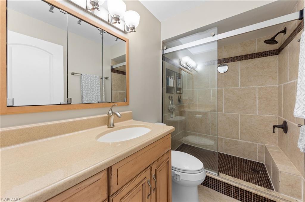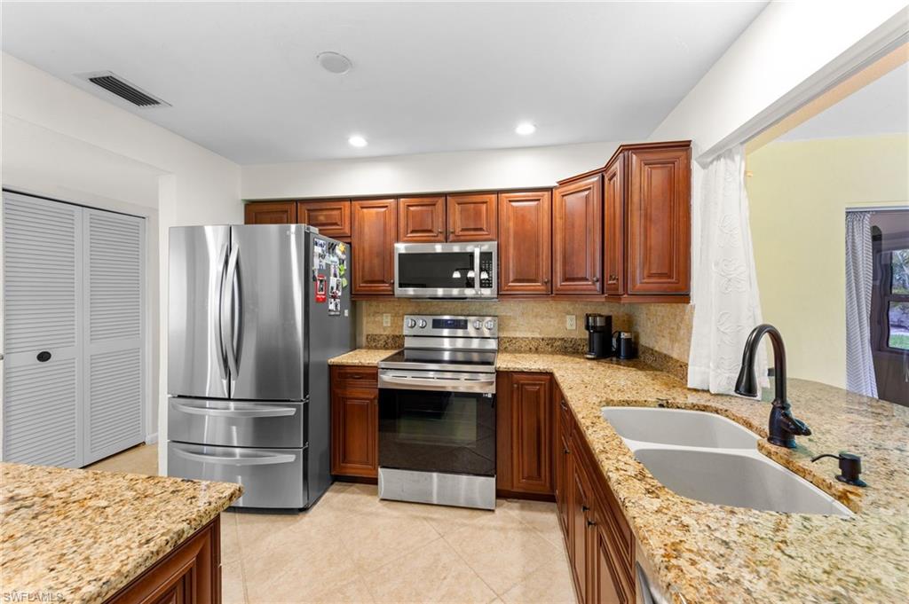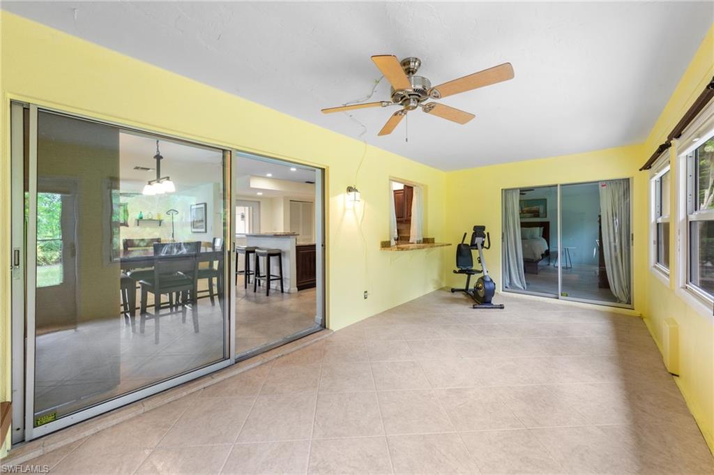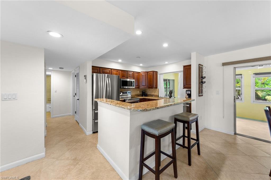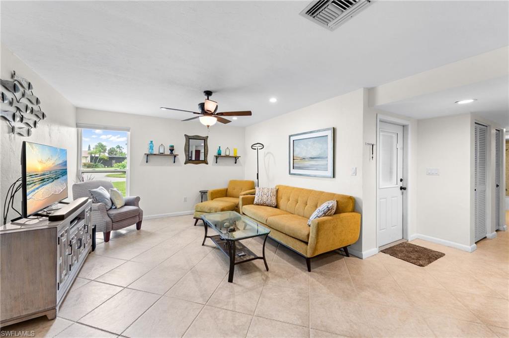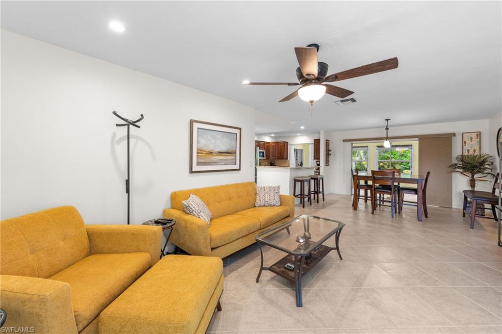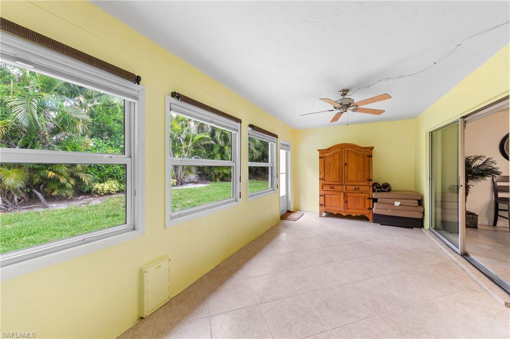 Experience the best Naples has to offer in this private 2 bed/2 bath attached villa less than 5 miles from the beach! If pickleball is more your thing you'll love the fact that this property is less than 1.5 miles to the home of the US Open Pickleball Championships at the East Naples Community Park. The Lakewood Community recently went fiber optic which means your low HOA dues also cover high speed fiber optic internet access. Along with its terrific location and low monthly dues this unit has an attached garage and many thoughtful upgrades; new exterior lights, custom designer blinds, canned lighting and dimmer switches in the kitchen and living room to name a few. Regardless of how your days are spent the privacy of the Florida room at sunset is a great way to spend an evening. Step outside the Florida room and you'll find it's a perfect spot for a grill and/or easy way to take your small pet outside. Membership at the Lakewood Country Club Golf Course is optional.