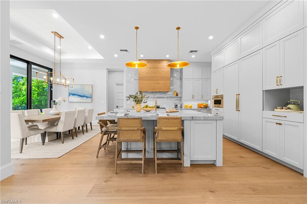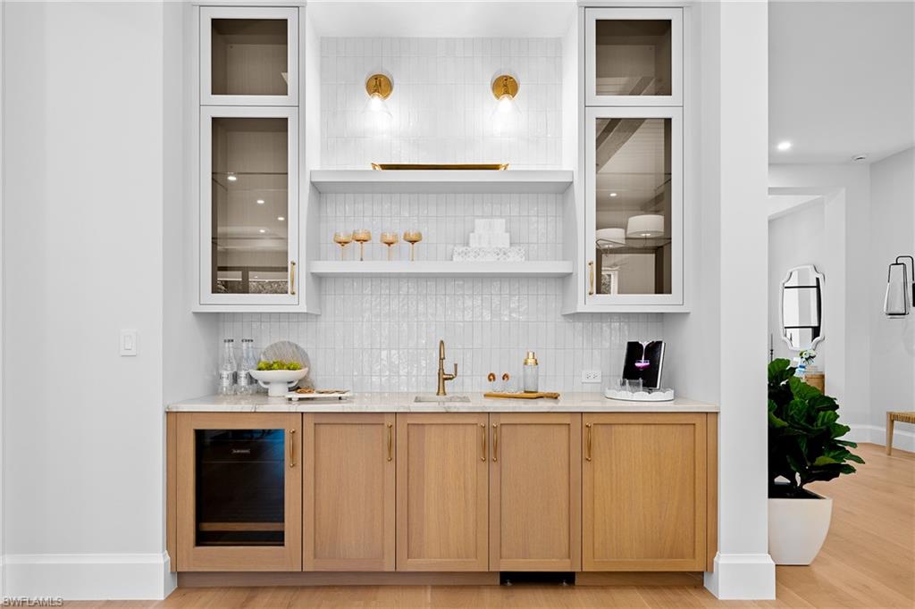 SAND DOLLAR 2025 WINNER, 448 Devils Lane, Nestled on one of Park Shore’s most coveted streets, this newly completed residence is a showcase of architectural artistry and conscious design. Built by T.B. Price Builders, envisioned by architect T. Boyatt, and brought to life with the sophisticated touch of R & CO. Designs, the home redefines modern coastal living with a mindful embrace of sustainability and a palette that radiates warmth. Spanning approximately 5,135 square feet, the property offers five en-suite bedrooms plus a den, thoughtfully laid out to maximize natural light and connection to the lush streetscape. The interiors are enriched with European wide-plank wood flooring, quartzite countertops, and custom coffered ceilings — materials chosen not only for their elegance but also for their durability and eco-friendly sourcing. The home’s oversized southern exposure lot invites sunlight to bathe the outdoor kitchen and living areas from morning to evening. It’s an entertainer’s dream, where guests can dine al fresco amid warm-toned finishes that echo Naples’ golden sunsets. In the kitchen, Sub-Zero, Wolf, and Dacor appliances deliver the pinnacle of performance for gourmet cooking, while Anderson windows optimize energy efficiency and frame serene views. Two dedicated office spaces on the ground floor offer refined productivity, while the elevator seamlessly connects to the second level’s additional bedrooms and versatile bonus room — a retreat perfectly suited for guests or family gatherings. Throughout, the interiors are curated with a sustainable mindset — from energy-efficient systems to furnishings and textiles chosen for their minimal environmental footprint. The result is a harmonious balance between high design and conscious living. Located just minutes from Venetian Village, Waterside Shops, and Fifth Avenue South, this home is more than a residence — it’s a testament to the art of crafting spaces that are both luxurious and deeply connected to their environment.
