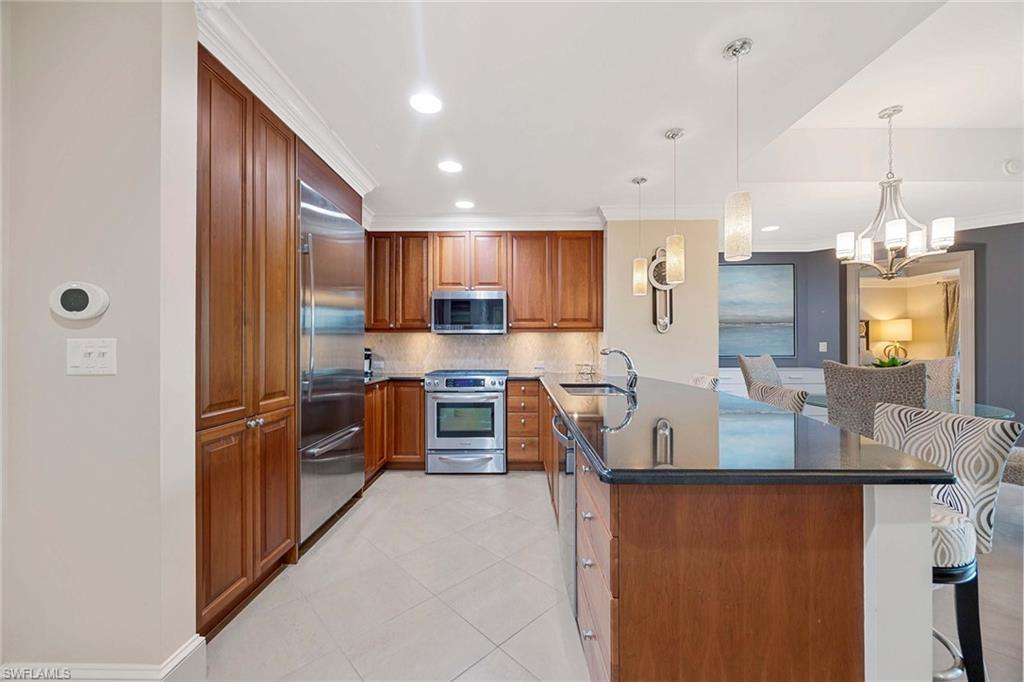 Luxury, comfort and convenience converge in one of Naples sought-after urban destinations. Penthouse-level two-bedroom, two-bath residence, offered turnkey furnished for effortless move-in. Sleek newer appliances and meticulous condition and new air conditioner, set the stage for modern comfort. Enjoy the vibrant urban lifestyle just outside your door. Stroll to upscale shops, fine dining and lively entertainment, all near your private retreat. Whether for year-round enjoyment or a seasonal escape, this residence combines sophistication, convenience and style in the heart of it all. Residents have exclusive access to a private rooftop retreat featuring a resort-style 52-foot sparkling swimming pool and spa, a state-of-the-art fitness center, renovated clubhouse with catering kitchen, an indoor and outdoor bar area, Viking gas grills and a firepit seating area, making this the ultimate place for entertaining guests. This is a pet-friendly building that has a rooftop fenced-in dog park. All this, just steps to Naples finest dining, shopping, entertainment, Whole Foods and pristine Gulf beaches. This is more than a home, it’s a lifestyle of elevated urban sophistication. Two parking spaces are included in the owner's gated garage. There is also a large climate-controlled storage space on the same level.