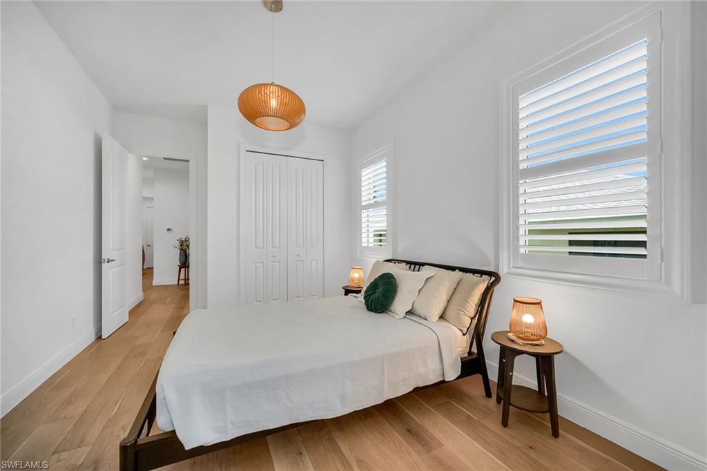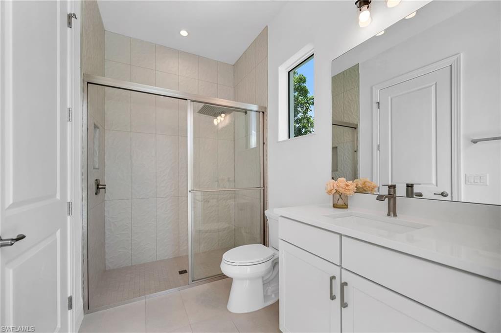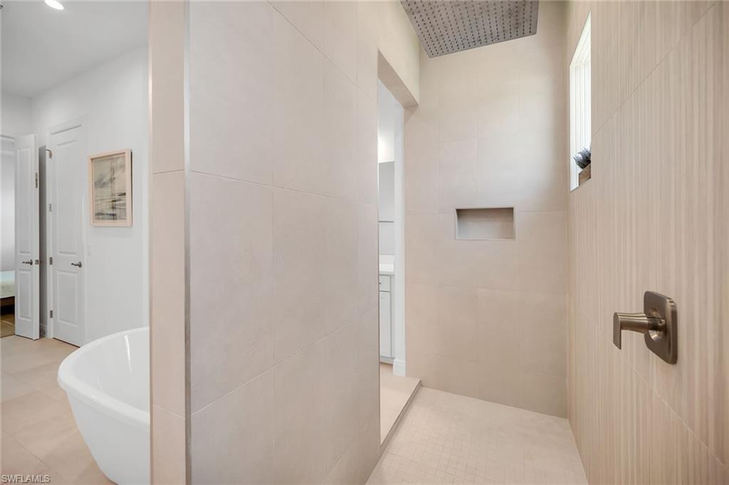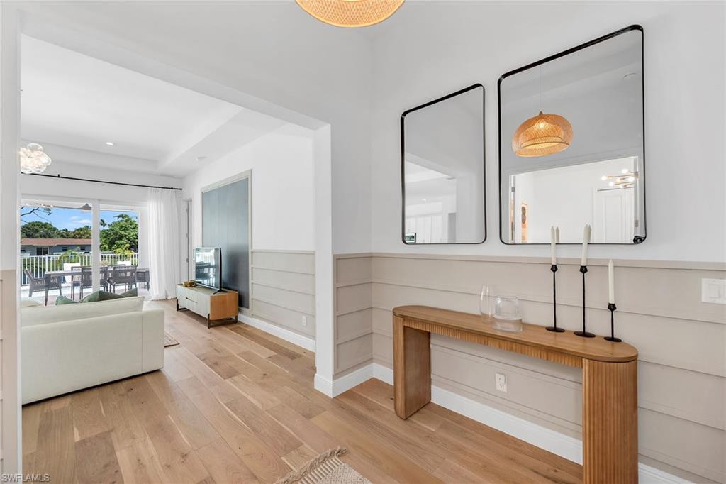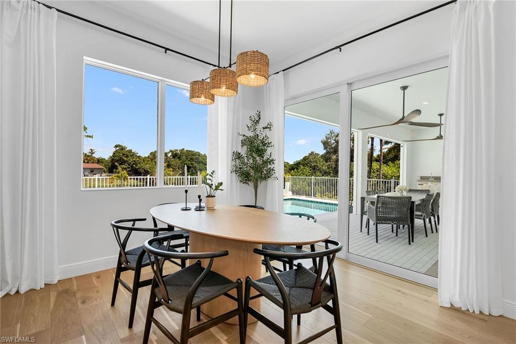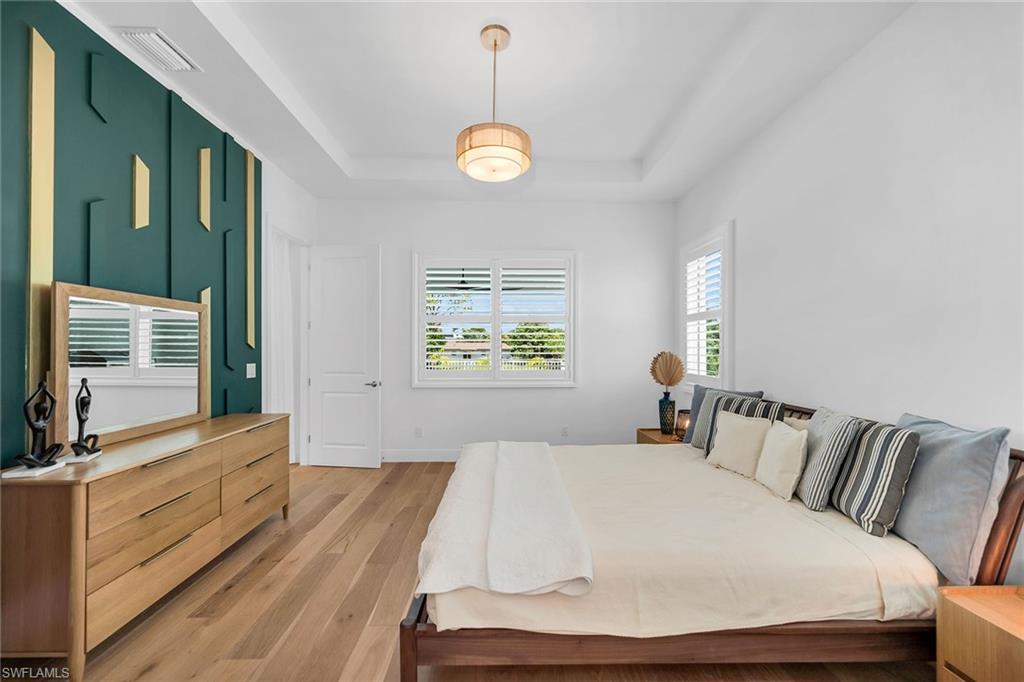 Enjoy the ultimate in luxury coastal living with this new, never-lived-in single-family pool home offering a rare combination of modern design, lakefront views, and a prime central Naples location with no HOA fees. Sitting at a high elevation of 14.8 feet, this property provides peace of mind and added security. Just minutes from world-renowned beaches, shopping, dining and top attractions, this stunning residence was custom-built in 2025 by Kaye Lifestyle Homes and professionally furnished, with furnishings negotiable. Designed for full-time living and high-end investment potential, this open-concept four-bedroom, three-bath home features a flat tile roof, soaring 12-foot tray ceilings, wide-plank hardwood floors, and hurricane-impact glass windows and doors throughout. The great room impresses with custom wall detailing and glass sliders opening to tranquil lakefront views. The gourmet kitchen offers white soft-close cabinetry, quartz countertops, a tile backsplash, pendant lighting and a large island with bar seating. A spacious walk-in pantry and new stainless steel appliances, including range, refrigerator and freezer, microwave, and dishwasher, complete the space. The adjacent dining area overlooks the water and provides direct lanai access. Go outside to a private, resort-style lanai featuring covered outdoor living with two modern ceiling fans and a custom outdoor kitchen complete with a built-in stainless steel barbecue, mini refrigerator and sink. The open heated pool and spa, built by Summit Pools, are surrounded by a fully fenced brick paver deck with unobstructed lakefront views, allowing you to enjoy stargazing nights without a cage. A dedicated pool bath provides added convenience for outdoor living. The luxurious owner’s suite offers peaceful lake and pool views, a 3D textured accent wall, two walk-in closets with built-ins and a spa-inspired bath with dual vanities, quartz counters, soaking tub and a walk-in shower with textured tile, rain head, niches and private windows. One guest bedroom has its own en-suite bath with a walk-in shower that also functions as a pool bath, while the remaining guest bedroom is served by a full bath with a custom tile shower and tub combination. The spacious layout includes a versatile fourth bedroom that can also serve as a den, office or study, complete with a closet, modern light fixture and double door entry. Additional upgrades include white plantation shutters throughout, custom trim and baseboards, washer and dryer with utility sink, epoxy garage flooring, Ring doorbell, Arlo camera system and pre-wiring for a generator. Seller offers transferable flood insurance, along with a 10-year builder warranty and 2-10 Home Buyers Warranty coverage for added peace of mind. In desirable Twin Lakes, this lakefront home offers exceptional convenience with no HOA, ideal as a luxurious residence or smart investment.
