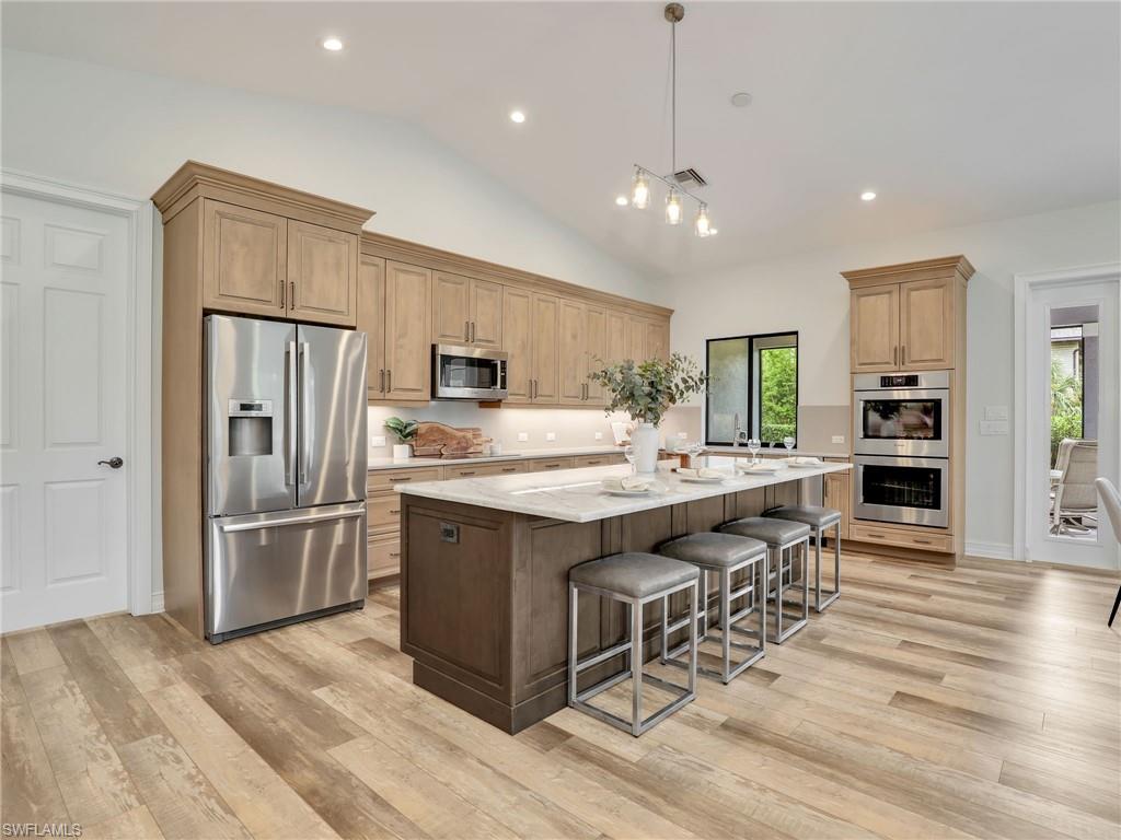 North Naples – Discover a rare opportunity in Collier Woods / Golden Gate Estates: This 2.5-acre property is 100% uplands and thoughtfully designed for comfort, convenience, and long-term livability. The homeowner meticulously planned every detail, with features ideal for ADA accessibility and aging in place, including zero-entry access (even from the garage) and extra-wide doorways for wheelchair navigation. Peace of mind comes standard with impact glass windows and doors, a whole-house generator, a humidistat in the insulated attic, and a battery back up for the upgraded garage doors. The oversized three-car garage is a hobbyist’s dream—equipped with an exhaust fan and three 240-amp outlets for electric vehicle charging, heavy machinery, automotive work, or woodworking. Inside, the gourmet kitchen takes center stage with a massive quartz island, Bosch stainless steel appliances, double oven, French door refrigerator/freezer, and a vented microwave. Soft-close wood cabinetry, an under the counter reverse osmosis system, and a water softener enhance everyday living. The open-concept floor plan flows seamlessly, while the additional large interior storage room and zoned A/C systems add functionality. The outdoor spaces are equally impressive—prepped for a summer kitchen, a raised garden in the backyard, and a beautifully paved circular driveway. The entire front and side porch are screened-in for family enjoyment, the elevated front yard for drainage, and perfect for play. This oversized acreage homesite, provides ample space to add a larger main residence, smaller guest home, large custom pool, or outbuilding at the rear of the property. Absolute serene setting with plenty of room for expansion make this the perfect choice. 4445 5th Ave SW is located in an A-rated school district and ideally positioned near premier shopping, dining, beaches, and regional airports—all supporting the best of the Florida lifestyle.