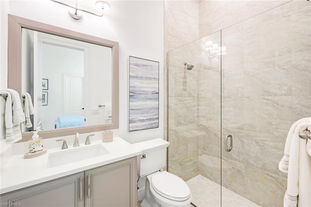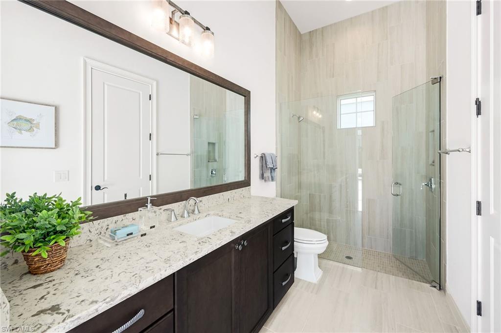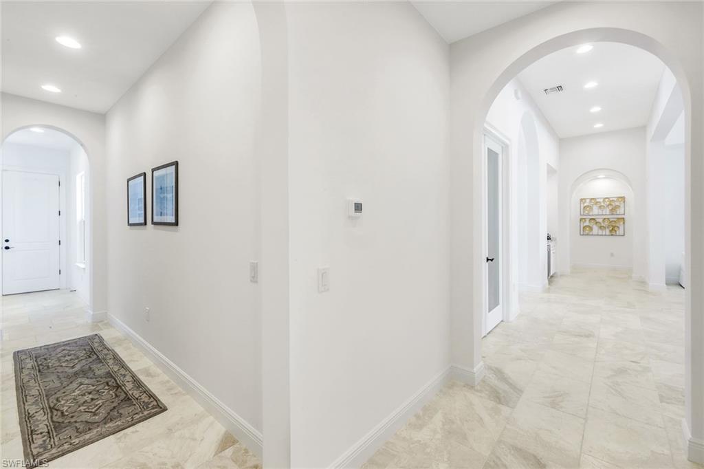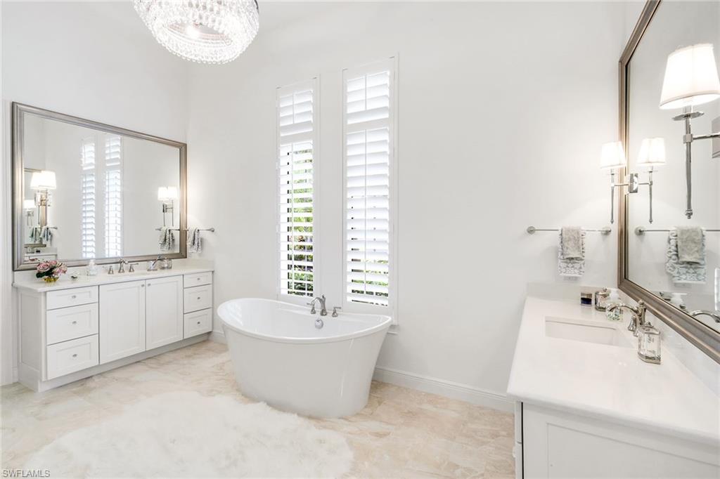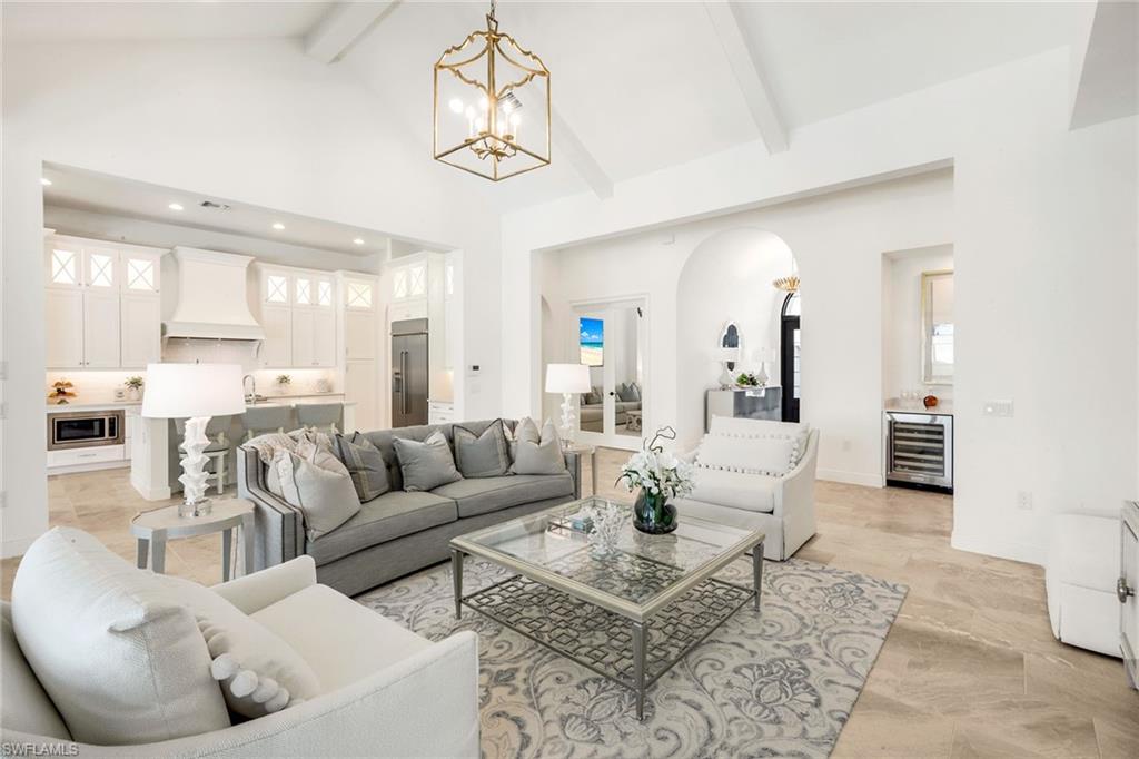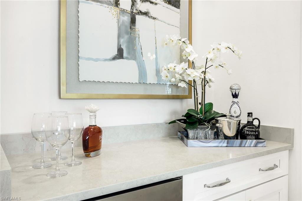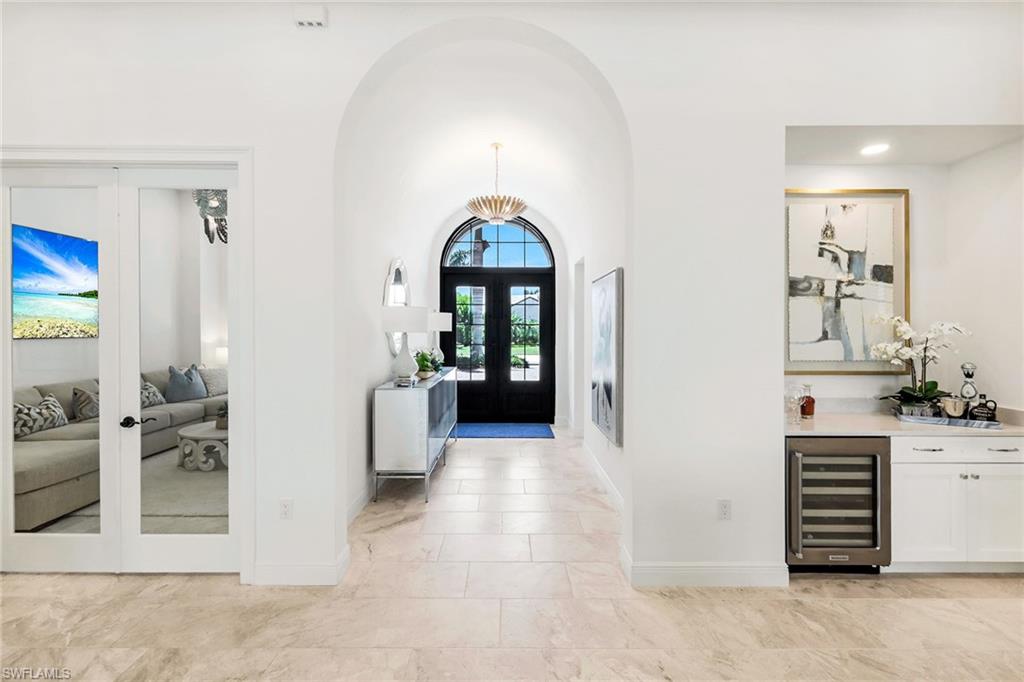In prestigious Fiddler’s Creek, this exceptional luxury residence offers expansive golf course views, professional landscaping, and delightful outdoor lighting. The charming French door entry opens to inviting 14-foot ceilings, a distinctive foyer, and stunning designer flooring. The exceptional living area opens through 10-foot impact glass doors to the breathtaking pool and summer kitchen beyond. Sun-shelf, bubblers and a delightful spa with sparkling multi-colored tile invite you to spend lots of time in the pool. The wood accent ceiling has a warm and inviting effect on the overall impression of the outdoor area. Inside, the open-concept great room embraces formal dining with seamless access to the expanded lanai. The gourmet-style dining and kitchen area features an oversized island with stunning white quartz and KitchenAid appliances. The custom cabinetry with additional height and glass front doors is exceptional. Pullout shelving, and a custom-designed range hood complete the desirability of soft tropical elegance. Plantation shutters, custom lighting, and ceiling fans exist throughout the home. A sitting area in the primary main suite contributes to the home’s refined style. An exceptionally large walk-in closet is always a good idea and this home has it. The gorgeous main bath is unique and beautifully appointed. Additional features include a three-car garage, extended driveway, and enhanced exterior elevation. The three additional bedrooms are all en suite and continue the color and style of the overall decor. Each with oversized closets. A delightful powder room and niche just off the entrance hallway gives character and appeal to this lovely home. A large laundry room and superior, side-load, three-car garage complete the picture. Residents enjoy award-winning amenities of Fiddler’s Creek, including many new pickleball and tennis courts, a newly remodeled lagoon-style pool, spa and fitness center, with the benefit of gracious formal dining as well as outdoor grill and other dining venues. Recreation opportunities are numerous as well as the option of golf, beach and boating memberships. Minutes from the amenities of Old Naples and Marco Island, this gorgeous home is a delight.