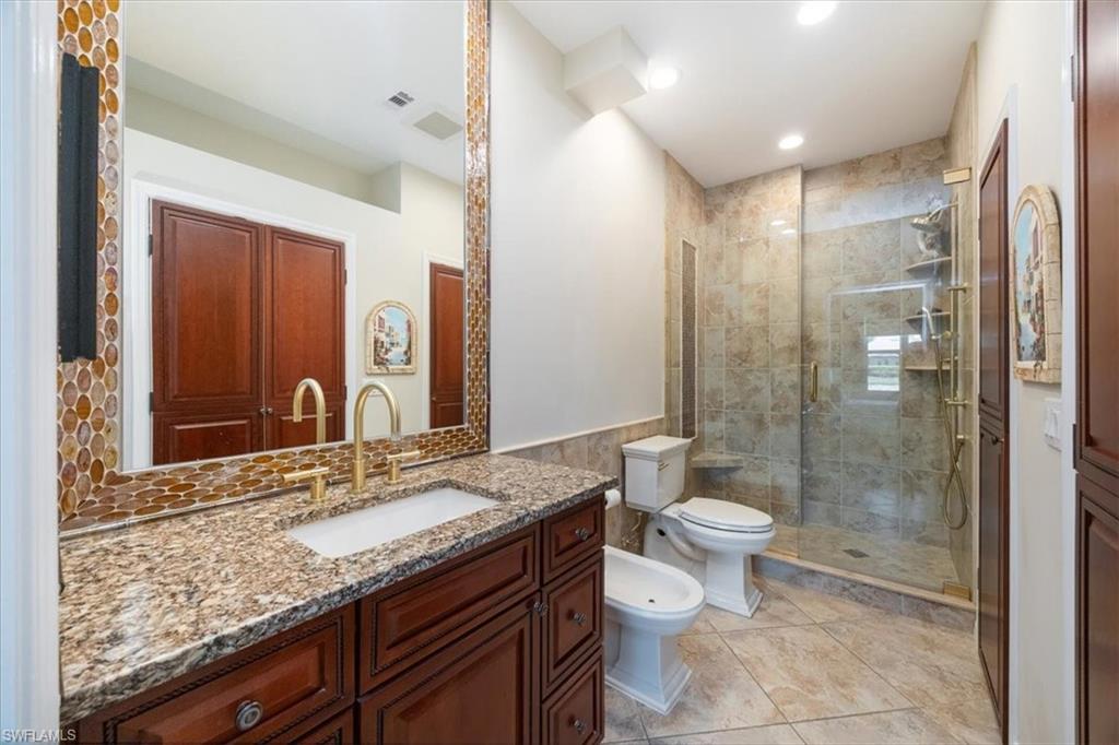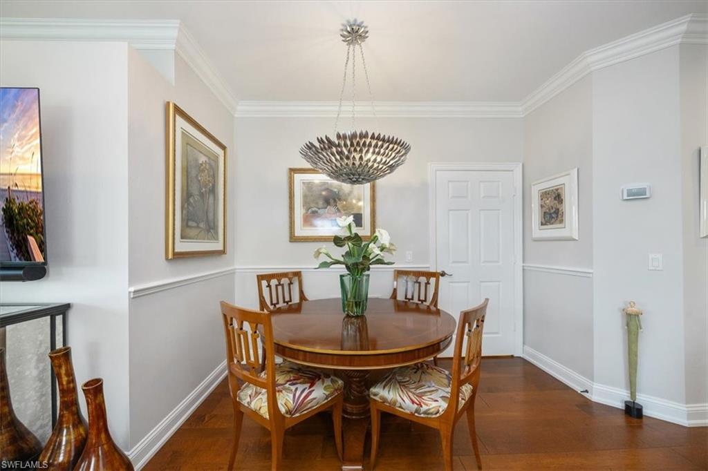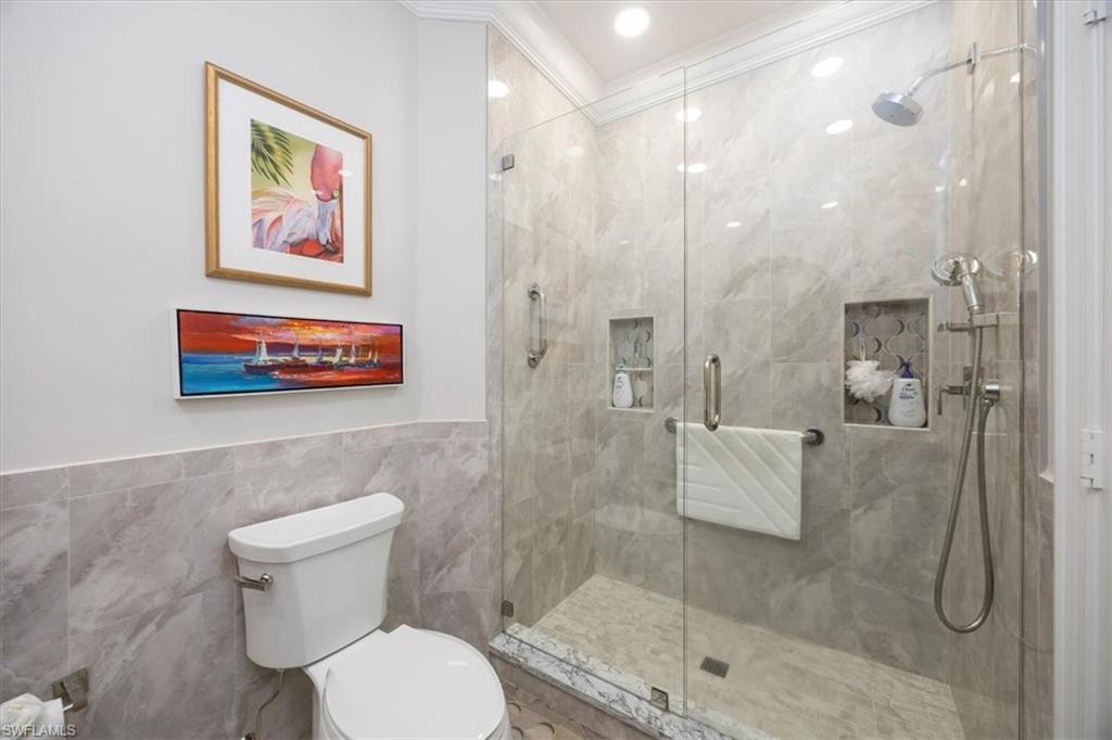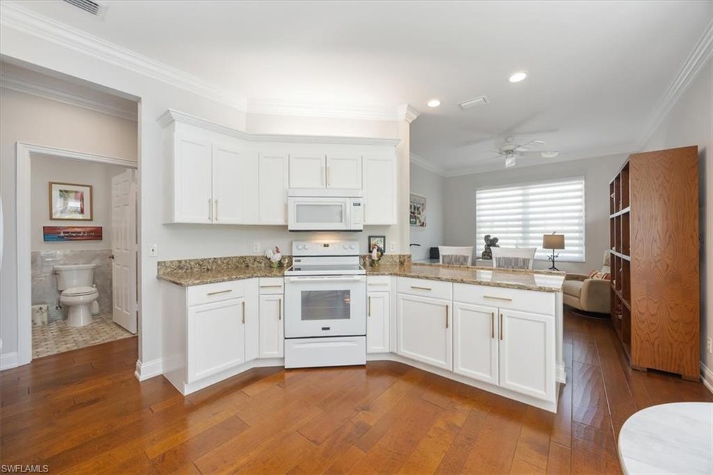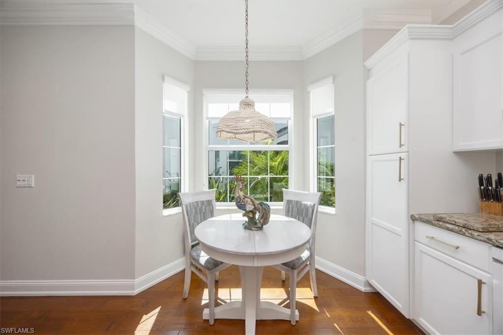 Welcome to this beautifully updated ground-floor end unit in the sought-after Wedgewood neighborhood of The Strand. With 1,449 square feet of living space, this residence blends comfort and style in one of North Naples’ premier gated communities. Inside, the bright, open layout is ideal for both everyday living and entertaining. The spacious kitchen features granite countertops, abundant cabinetry, and an inviting breakfast nook—perfect for enjoying your morning coffee. The living room extends seamlessly to the screened patio, where serene lake views and a tranquil water feature create a peaceful backdrop. The primary suite offers a private retreat with a renovated bath, walk-in shower, and generous closet space. A guest bedroom and beautifully remodeled guest bath ensure comfort and privacy for visitors. Elegant details, including hardwood floors, crown molding, Hunter Douglas blinds, and custom lighting, elevate the home’s timeless appeal. Additional upgrades include impact-resistant windows and electric storm shutters on the lanai. A detached single-car garage with an epoxy floor provides both storage and convenience. The Club at The Strand offers three dining options, a lively calendar of events, and an impressive array of resort-style amenities. Enjoy an Olympic-sized pool, a brand-new state-of-the-art fitness center, a full-service spa, eight HydroGrid Har-Tru tennis courts, pickleball, bocce ball, basketball, and so much more! Surrounded by lush landscaping and set within a peaceful community, the home is just minutes from Naples’ world-class shopping, dining, and Gulf beaches. Whether as a year-round residence, seasonal retreat, or investment property, this meticulously maintained home offers the perfect opportunity to embrace the relaxed yet vibrant lifestyle of Southwest Florida.