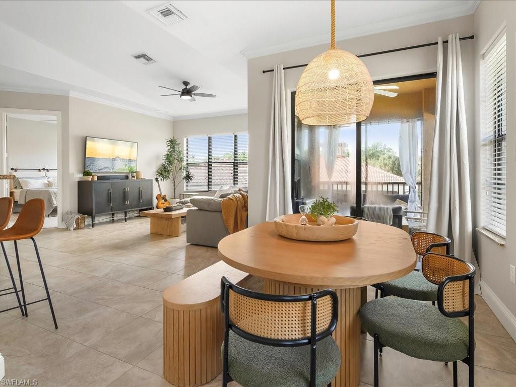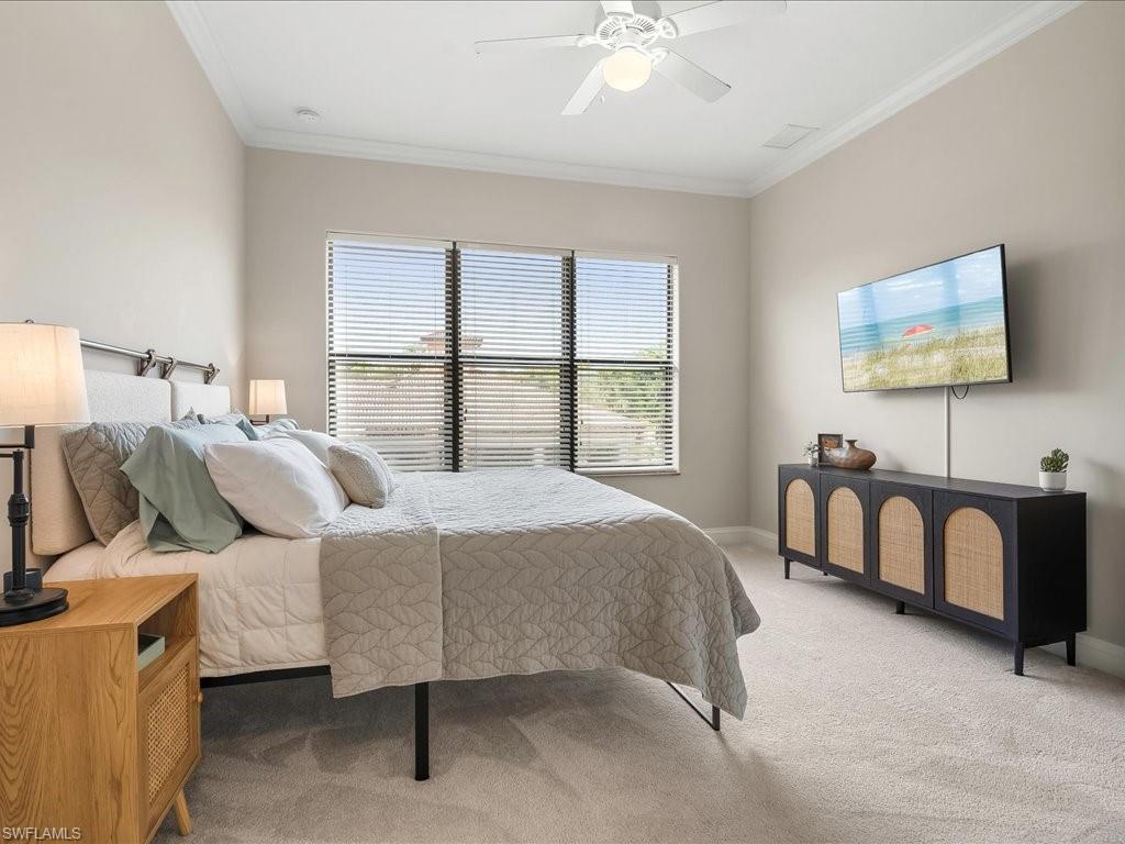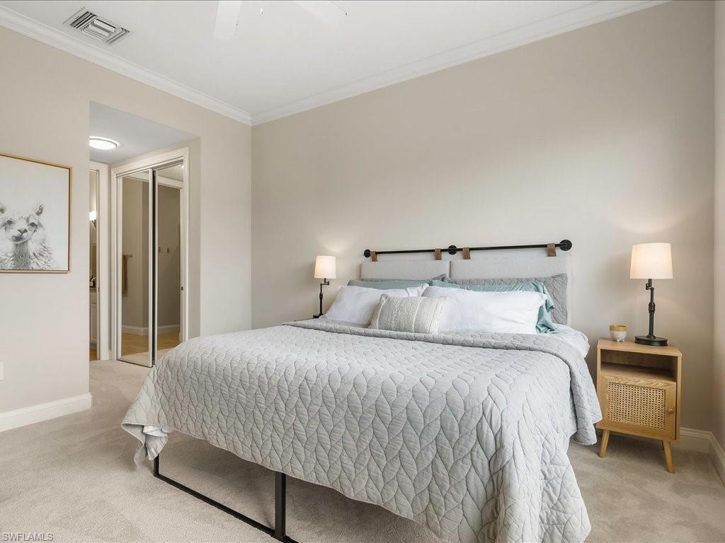 Spacious second-floor condominium in a prime Naples location offering 1,877 square feet of living space with vaulted ceilings and abundant natural light. This three-bedroom, two-bath home features freshly painted cabinets in both the kitchen and bathrooms, oversized bedrooms, and an open layout ideal for comfortable living. Recent updates include all new Kitchen Aid appliances, a new tankless water heater, which creates valuable additional storage space in the garage, interior paint and carpet (2024), and new screens on the lanai for year-round enjoyment of the Florida breeze. Located just steps from the community pool and with access to a fitness center and clubhouse, this property offers a true resort-style lifestyle. Being offered with furniture negotiable, this home is perfect as a primary residence, seasonal retreat, or investment property. Conveniently close to shopping, dining, and Naples’ renowned beaches.