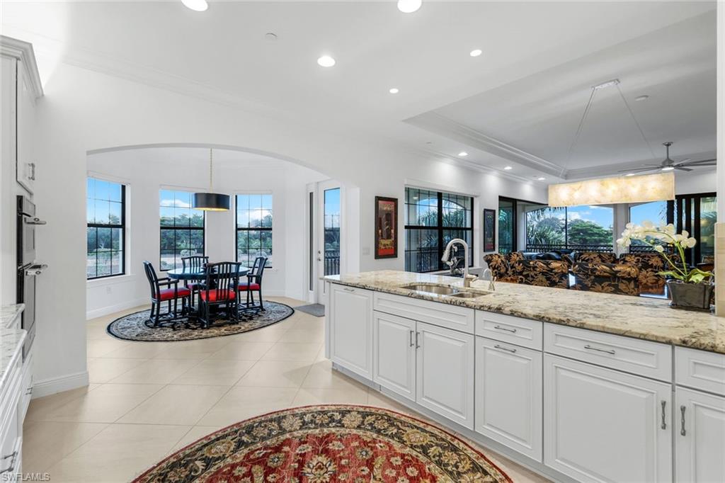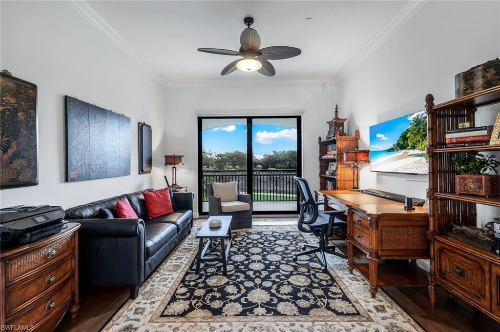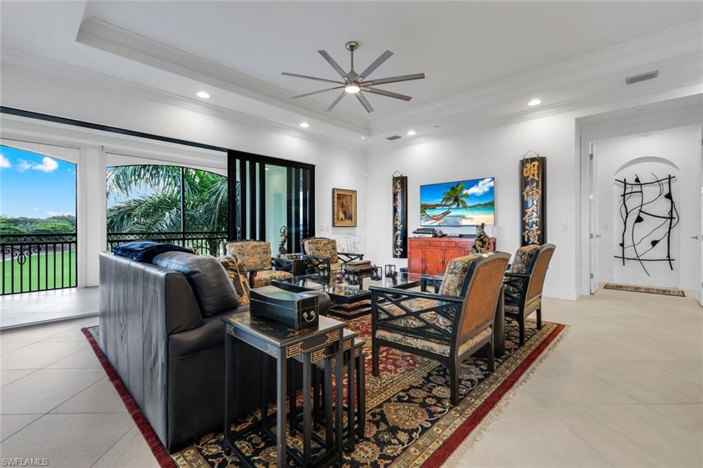 TOP FLOOR PENTHOUSE WITH PRIVATE VIEWS OF THE FIRST HOLE AND TWO WATERFALLS AND PRIVACY! Carrara is the ONLY neighborhood with it’s own community pool and spa!! Step into this exclusive penthouse overlooking the first hole and cascading waterfalls in the Carrara enclave of Talis Park, where timeless design and refined upgrades create a sense of private serenity. Soaring ceilings, tile flooring throughout, designer lighting, and zero-corner sliders set the tone for seamless indoor-outdoor living, filling the home with light and calm. As you enter the open-concept living and dining areas, you are immediately greeted by sweeping golf and water views that frame each moment in peaceful elegance, providing both intimacy and space for entertaining. From here, you flow into the chef-inspired kitchen, where crisp white cabinetry, gas cooking, a Miele dishwasher, custom pull-out storage, and generous counter space meet convenience, complemented by a Kinnectico water system with reverse osmosis and instant hot water dispenser. The kitchen opens to a sunlit eat-in nook surrounded by windows, perfect for casual meals or morning coffee. Built into the nook, a custom wine and beverage center offers generous storage for bottles, sleek countertops, and lighted upper cabinetry for display and organization—blending style and practicality for entertaining or everyday enjoyment. Continuing through, the expansive wraparound lanai—freshly painted and offering multiple seating areas—feels like an extension of the home itself, blurring the line between indoors and out. Remote-controlled electric roll-down hurricane shutters ensure effortless protection while preserving the stunning panorama. As you move into the primary suite, the space unfolds as a private haven, featuring dual sinks, soaking tub, separate shower, Toto toilet seat, remote-controlled blackout shade, and a custom California Closet. Each guest suite offers relaxing comfort, ample storage, and thoughtful design, ideal for vacation living or enjoying Southwest Florida, while a versatile den provides flexibility as a home office, library, or media space, maintaining the home’s sense of ease and refinement. Every detail enhances daily living, from electric blinds, trash chute, a self-cleaning tankless water heater, and private elevator access with secure video entry. A large storage room, with a dehumidifier, adds convenience, while an IFLO system ensures additional peace of mind. As you step back and take in the full panorama, you realize this isn’t just a home—this penthouse is your private sanctuary in the heart of Naples, complete with access to Carrara’s private resort-style pool and sundeck, along with Talis Park’s world-class amenities: championship golf, tennis, pickleball, bocce, spa services, fitness, and multiple dining venues. Perfectly situated just minutes from beaches, shopping, and fine dining, every moment here feels deliberately calm, effortless, and luxurious.