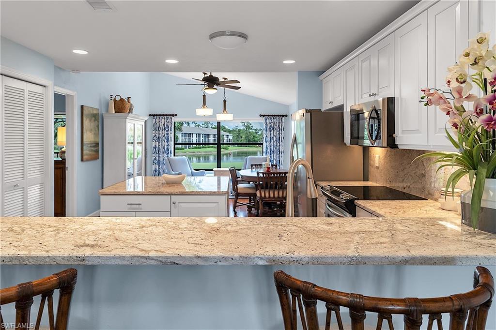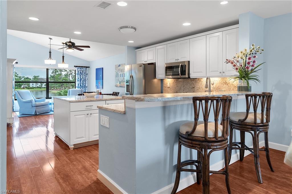WELCOME TO FOXFIRE COUNTRY CLUB! Hard to find 3 Bedroom END CORNER UNIT overlooking the golf course. As you enter this home you are met with open concept living. Gleaming floors throughout, renovated completely in 2014 with new white kitchen, granite counters and backsplash, stainless appliances, gorgeous tiled baths, A/C, and paint. FOXFIRE is a 27 hole golf course Bundled Community. No need to be on a wait list for your golf membership. You are a member as soon as you own. Foxfire’s amenities are a true bonus to an incredible lifestyle. Residents can enjoy a 20,000 square foot clubhouse, which offers fine dining, a casual grille room, bar area with multiple TV's and outdoor seating areas. Stay active with a state-of -the-art brand new fitness center, 3 tennis courts, Bocce Courts and the pool for the condo is located right across the street. Foxfire is located within 5 miles from Naples Beaches, Marinas, 5th Av and 3rd Street restaurants. SWFL Airport is only a 25 min drive.