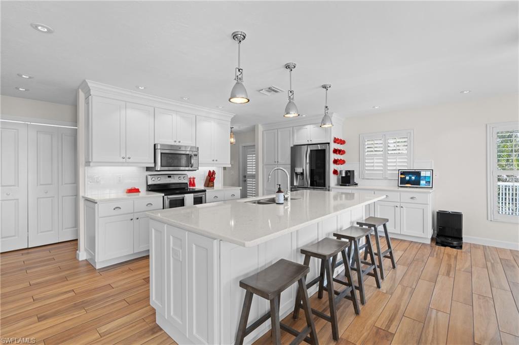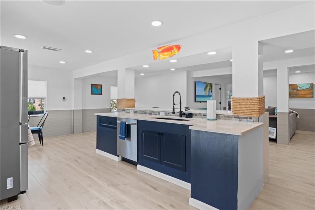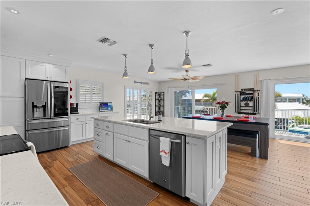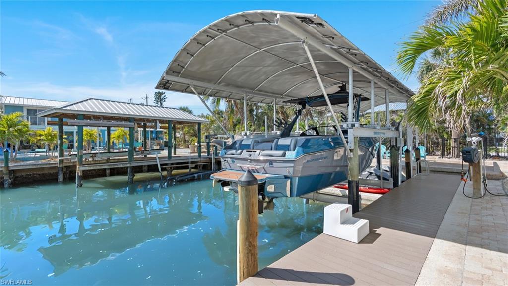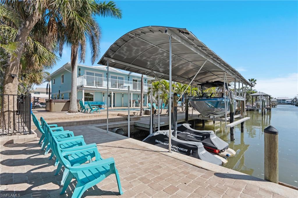 The Ultimate Beach & Boater’s Retreat – Fully furnished, canal-front home offering quick Gulf access, a saltwater pool & spa, and a rare dual-living layout just an easy walk to Fort Myers Beach. The property has a strong history of guest use, and documentation of past rental activity can be provided upon request. Upstairs features a bright 1,500 sq ft 3BR/2BA residence with a full kitchen and private laundry. Downstairs provides an additional apartment-style living space (approximately 1,290 sq ft) with its own living area, sleeping spaces, bathroom, and direct access to the pool and outdoor areas. This flexible layout is ideal for multi-generational living, long-term guests, or creating private retreats while still enjoying the same home. Outdoor living is a highlight, featuring a sparkling saltwater pool and spa, built-in speakers, karaoke system, outdoor shower, and a new privacy fence completed in 2025. Boaters will appreciate the 12,000 lb lift installed in 2023 with WiFi GEM remote, canopy designed for a 30-foot boat and jet skis, plus two Wave Armor jet ski floats. Ample parking, including room for boats or recreational vehicles, makes hosting or accommodating guests easy. Recent upgrades & peace-of-mind features include: • 2024 metal roof with transferable 10-year warranty • 12,000 lb boat lift (2023) with WiFi GEM remote, canopy + two jet ski floats • New privacy fence (2025) • Whole-house water filtration with WiFi leak detection • 9kW portable generator capable of powering the AC • Impact glass, raised electrical outlets, Floodgate door systems • Multiple battery-backed sump pumps and water-resistant materials throughout Inside you will find durable tile flooring, smart-home features, a WiFi-enabled Samsung French-door refrigerator, and an AI-powered all-in-one washer/dryer. EV charging capability, RV/boat parking, and no HOA provide additional convenience and flexibility. With thoughtful upgrades, a versatile dual-living layout, and an ideal location near the beach and open water, 2 Avenida Carita delivers an exceptional blend of comfort, lifestyle, and coastal living.
