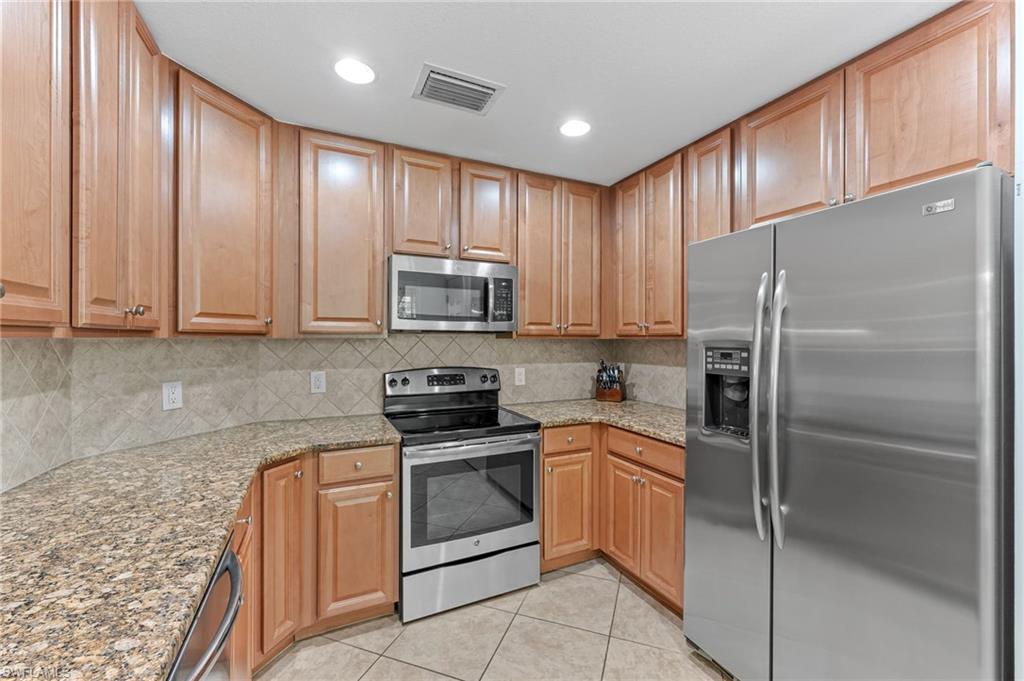 Spacious 3Bed/2Bath First-Floor End Unit with Premium Upgrades & Ideal Location! This beautifully maintained and exceptionally spacious first-floor end unit offers comfort, style, and unmatched convenience. Featuring elegant tile flooring throughout, the open-concept layout is perfect for both everyday living and entertaining. The kitchen is a chef’s dream, boasting granite countertops, beautiful cabinetry, and sleek stainless-steel appliances. The oversized primary suite includes two generous walk-in closets and a luxurious en-suite bathroom with a relaxing garden tub and a separate glass-enclosed shower. Enjoy peace of mind with hurricane impact windows and doors—the only unit in the community with this feature—along with custom upgraded modern plantation shutters that add a sophisticated, contemporary touch. Additional highlights include granite countertops throughout the home, a washer and dryer that are less than a year old, and an A/C system in excellent condition from continuous twice a year maintenance. The screened-in patio features tile flooring and ceiling fans, making it the perfect spot for outdoor relaxation. Located just minutes from shopping, dining, top-rated hospitals, and with quick access to I-75, this home offers the perfect blend of luxury, safety, and convenience. Don’t miss your chance to own this upgraded, move-in ready gem.