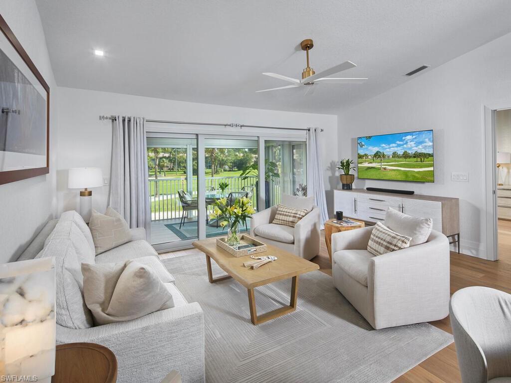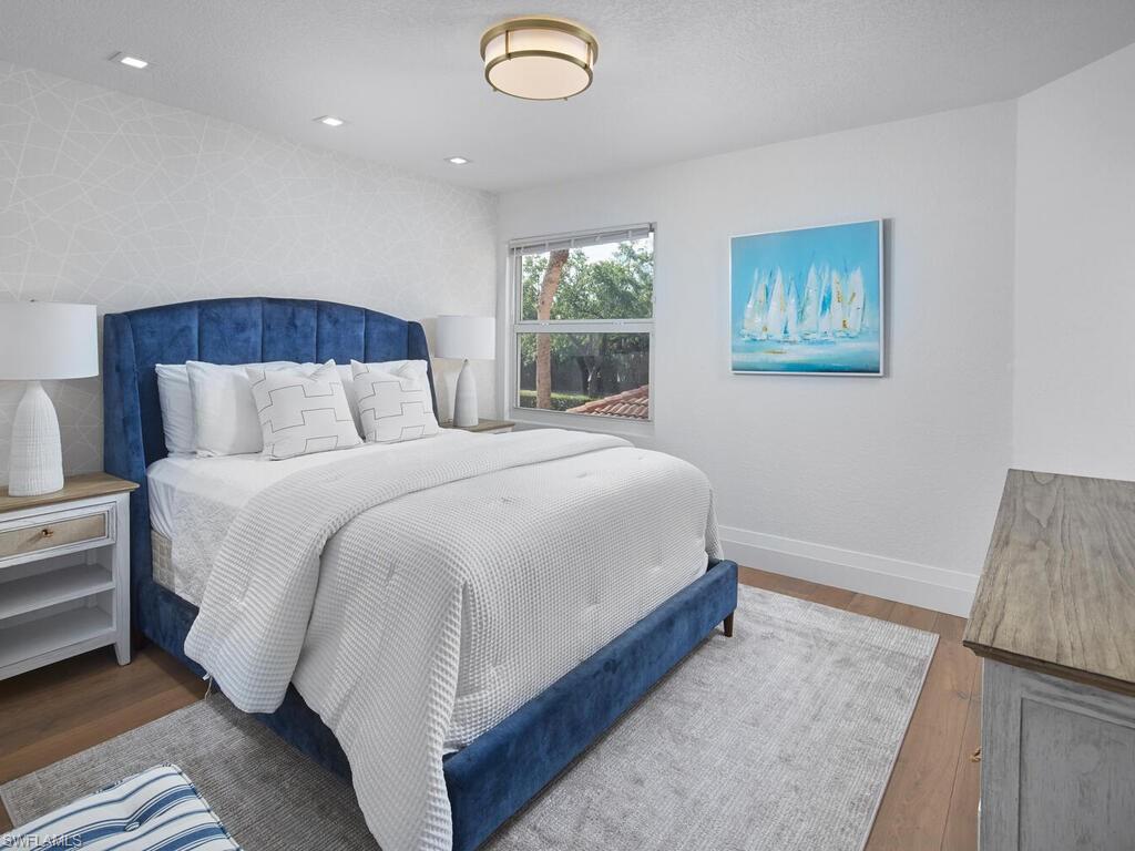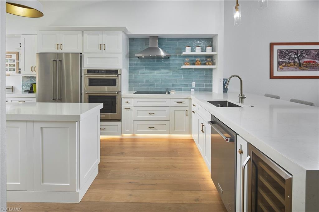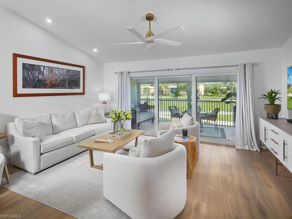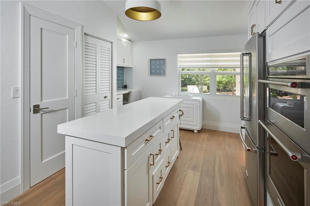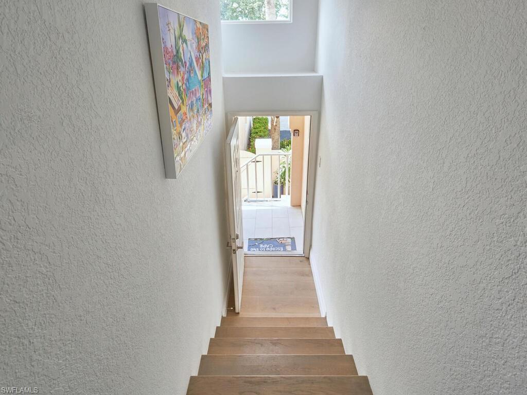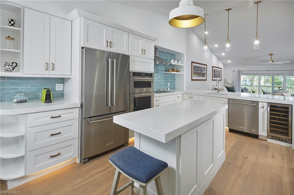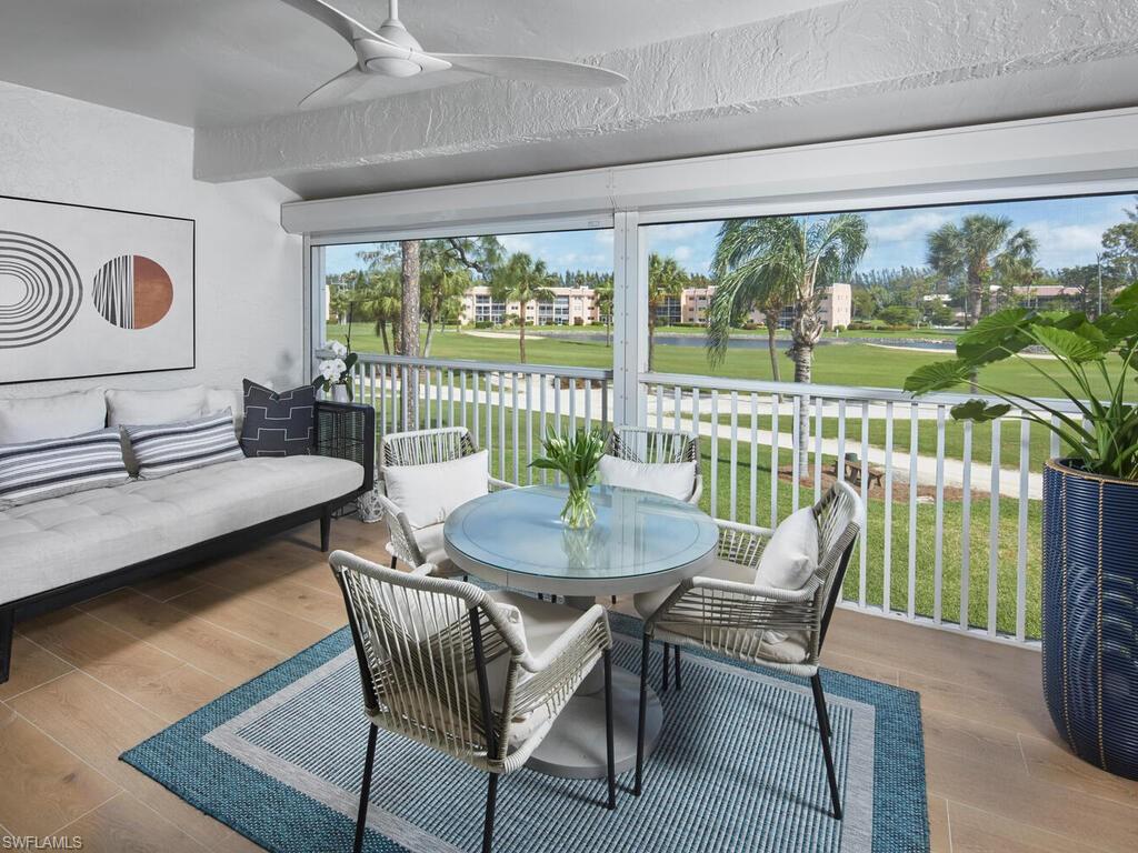 Emerald Green is located in the heart of Naples, less than 10 minutes' drive to the Seagate or Park Shore Beach, Mercato, Venetian Village and Old Naples. Completely renovated, meticulously redesigned open floor plan, 2 BR, 2 Baths and extra large screened terrace with electric hurricane shutters overlooking the golf course. Enjoy your own courtyard where you can grill your barbecue and 1 car detached garage, this high ceiling all in one floor second-floor condo feels like a villa. New hurricane impact windows and sliding doors, rich Legno Bastone wood floors, custom kitchen cabinets, double islands with quartz countertop, new built-in double oven/microwave, refrigerator, dishwasher, wine cooler and extra beverage cooler. Thoughtfully redesigned luxury primary and guest baths with marble floors, marble shower walls, frameless glass shower doors and custom cabinets. This beautifully furnished residence combines luxury and comfort to the most sophisticated buyer. Amenities include a heated pool and spa, clubhouse, tennis and pickle ball courts. Woodshire Lane is lined with stunning Royal Poinciana trees, best hidden gem in Naples just under $550,000