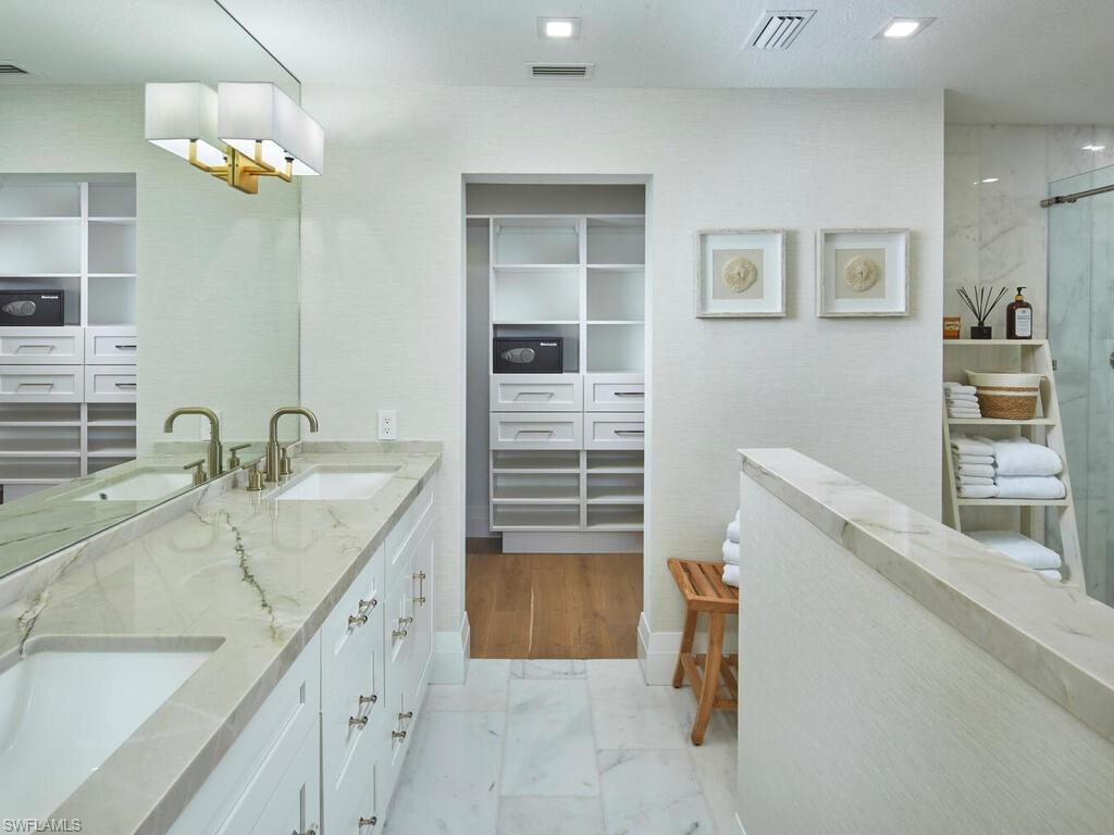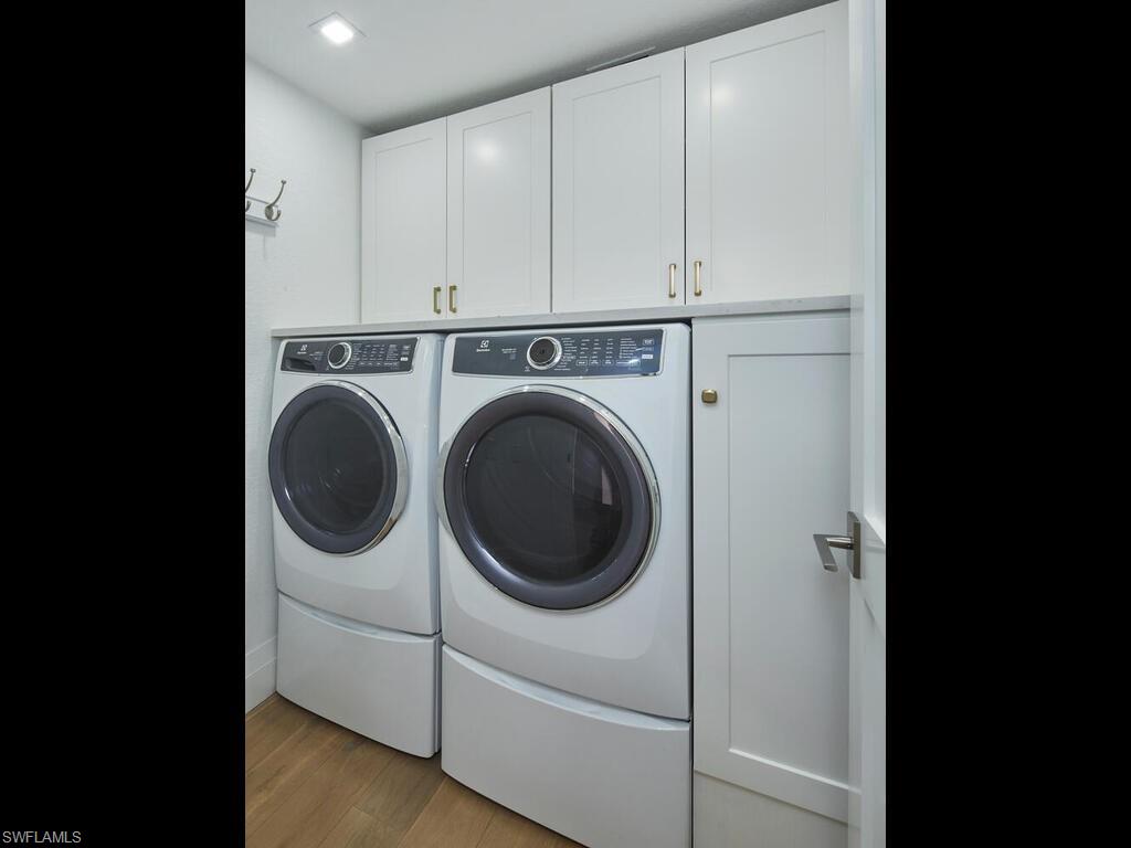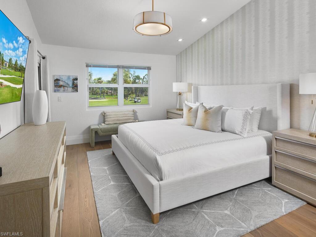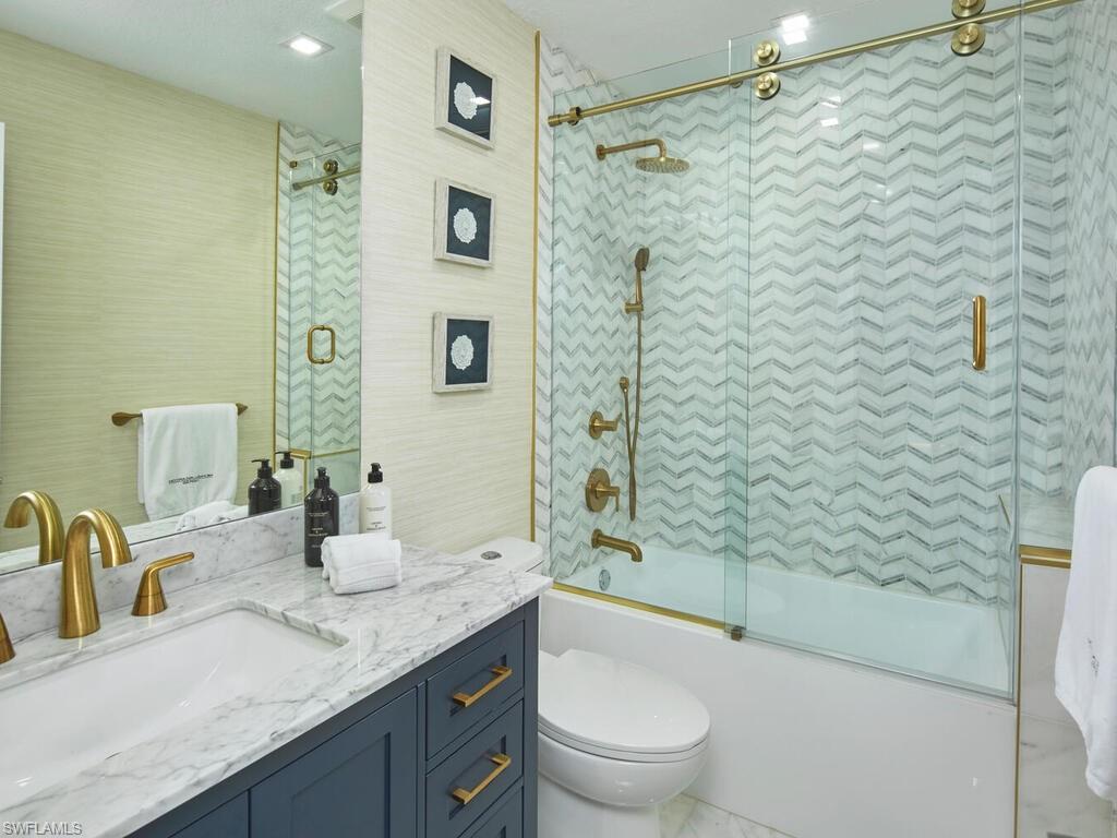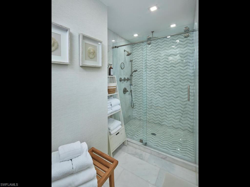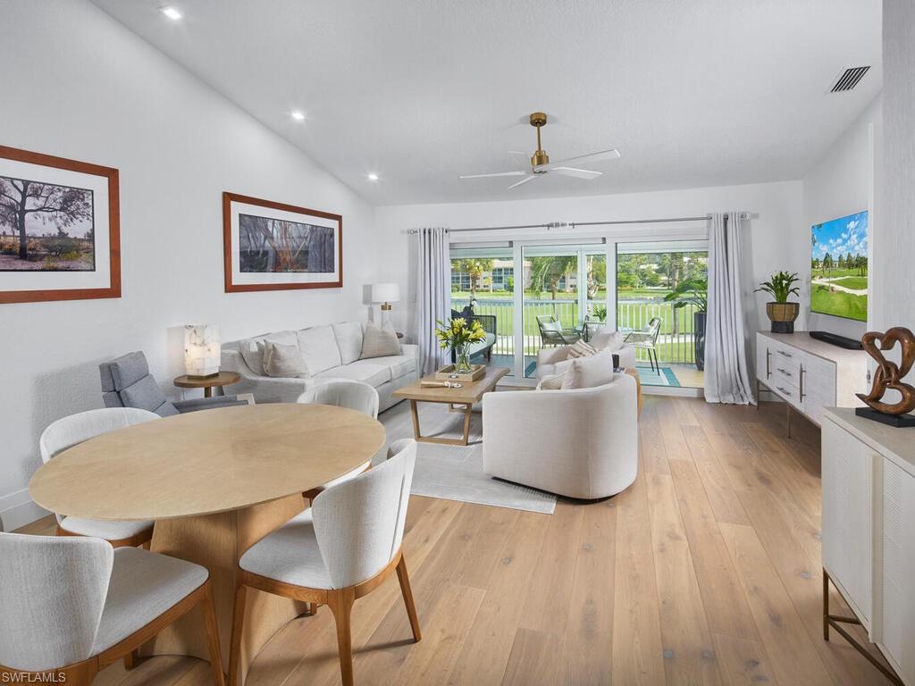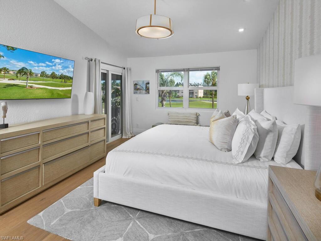Emerald Green is located in the heart of Naples, less than 10 minutes' drive to the Seagate or Park Shore Beach, Mercato, Venetian Village and Old Naples. Completely renovated, meticulously redesigned open floor plan, 2 BR, 2 Baths and extra large screened terrace with electric hurricane shutters overlooking the golf course. Enjoy your own courtyard where you can grill your barbecue and 1 car detached garage, this high ceiling all in one floor second-floor condo feels like a villa. New hurricane impact windows and sliding doors, rich Legno Bastone wood floors, custom kitchen cabinets, double islands with quartz countertop, new built-in double oven/microwave, refrigerator, dishwasher, wine cooler and extra beverage cooler. Thoughtfully redesigned luxury primary and guest baths with marble floors, marble shower walls, frameless glass shower doors and custom cabinets. This beautifully furnished residence combines luxury and comfort to the most sophisticated buyer. Amenities include a heated pool and spa, clubhouse, tennis and pickle ball courts. Woodshire Lane is lined with stunning Royal Poinciana trees, best hidden gem in Naples just under $550,000