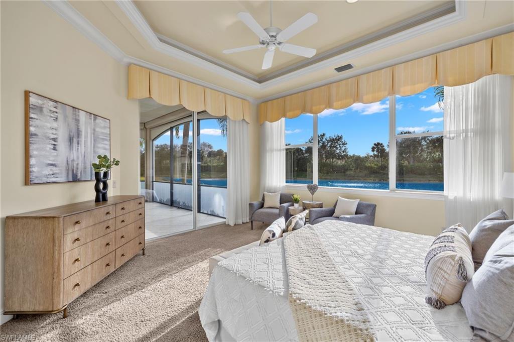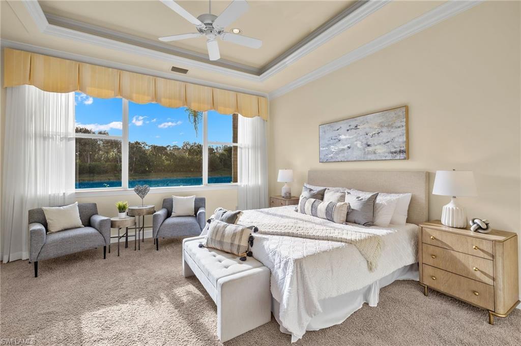BEST value in ALL of Mediterra! Welcome to paradise! Located in the heart of Mediterra, a golf community that offers unparalleled access to the finest amenities and lifestyle opportunities, this coach home is the one to redefine style and sophistication! A spacious living area with breathtaking views of the surrounding lake and green scenery is the perfect place to relax and unwind. The ample space for cooking and entertaining as well as the newly remodeled kitchen with custom cabinetry and quartz countertops are sure to impress whether you're hosting a formal dinner party or an intimate gathering. Maximizing on that eastern morning sun and glistening lake views, the sizable master suite features a spa-like bathroom, complete with a soaking tub, walk-in shower, and dual vanities. Two additional guest bedrooms, one en-suite, in addition to the office/den area compliment the floorplan to a very comfortable living space. The community speaks for itself, whether you are an avid golfer or not, you will be enamored with a variety of other amenities that Mediterra affords its residents. The newly renovated and much anticipated Beach Club is now open!