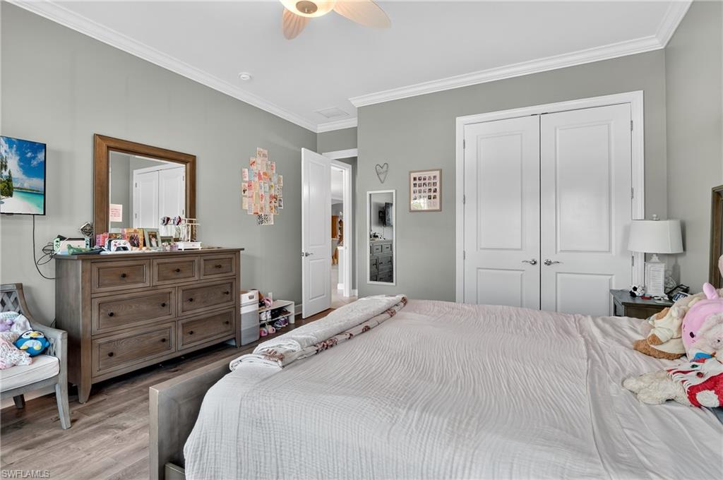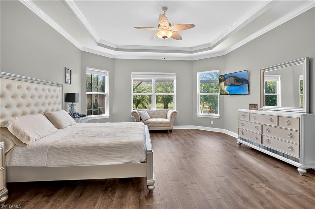"Live the Naples Lifestyle” – Your Dream Home Awaits! This highly upgraded “Palazzio" model comes with a FULL GOLF MEMBERSHIP—a rare find in one of Naples’ most sought-after gated golf course communities. Welcome to your private luxury retreat in the heart of North Naples. With coveted southern exposure, this home sits at the end of a peaceful cul-de-sac, steps from nature preserves, bike and walking trails—the perfect balance of serenity and resort living. This popular "Palazzio" model is located within Esplanade, a prestigious golf course community offering approx. 3,037 sq. ft. of refined space, this residence backs to a tranquil lake, setting the stage for unforgettable mornings and sunsets. From the moment you arrive, you’ll be impressed by the striking entry: double impact-glass doors, lush professionally lit landscaping, and mature tropical greenery that highlight the home’s curb appeal. Inside, a grand foyer opens to a spacious great room with 24” porcelain tile laid on the diagonal, crown molding, recessed lighting, and tray ceilings that add timeless elegance. The cheery bright chef’s kitchen is a showstopper: 42” white shaker soft-close cabinetry with under cabinet lighting, striking glass subway backsplash, oversized center island with additional storage, beverage cooler, sparkling Cambria quartz counters, and GAS cooktop with premium stainless appliances. Plus a tankless water heater adds modern convenience and efficiency. This elegant floor plan offers 3 spacious bedrooms, three luxuries full bathrooms, and a versatile den that can serve as a home office, creative studio, or cozy retreat. The generous sized primary suite is a private retreat showcasing an upgraded bay window, spa-inspired bath featuring a soaking tub & separate shower, plus custom walk-in closet with built-ins. Step outside to a dream outdoor oasis: an extended covered lanai with electric roll-down hurricane screens, a designer summer kitchen with sink, vented hood, refrigerator, and gas grill, ideal for unforgettable al-fresco dining and entertaining, and a resort-style pool with glass water pots, sun shelf & spa. A panoramic screen provides wide-open lake views with complete privacy. Beyond luxury finishes, this home also provides practical upgrades including a Culligan whole-house water filtration system and full-home surge protection—true peace of mind! As an Esplanade resident, you’ll enjoy resort-style living every day: an 18-hole championship golf course, true resort pool with cabanas and the lively Poolside Bahama Bar, a 15,000 sq. ft. clubhouse with restaurant, bar, and outdoor dining, plus a full-service spa, cutting-edge fitness center, tennis, pickleball, bocce, two dog parks, and miles of walking and biking trails.This home is more than a residence—it’s a lifestyle. Discover refined luxury, unmatched amenities, and the best of Naples living. Enjoy a new lifestyle and tour this exceptional home today!