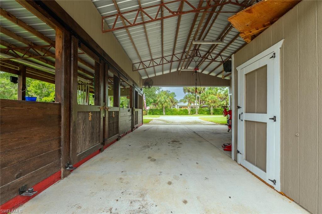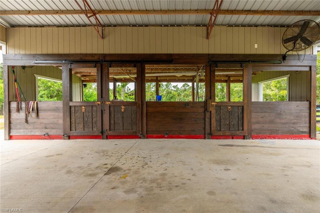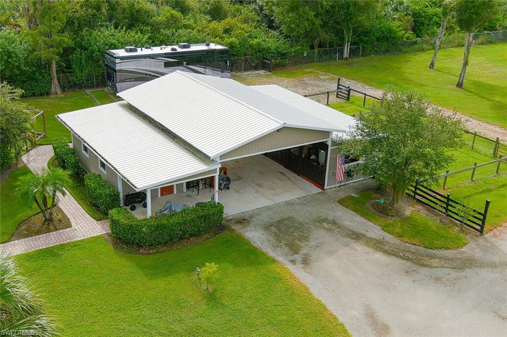 Horse property on 2.73 acres, with plenty of tropical landscaping around the house and privacy grounds. A gated entry with driveway to house and barn, room for trailer parking-storage. Turn out the paddocks and pasture for the horses with a nice, well-constructed and laid out 48’x36’ barn. Your horses have 3-12’x12’ stalls, water, and lights in each, a concrete aisle, and an air-conditioned feed-tack room with hay storage above. Beautiful totally renovated home has many new updates, upgrades, and wanted FL amenities like a secure metal roof, impact windows, slider-doors, RO system, built-in wood shelving and closets, and epoxy garage floor. The main suite features a walk-in shower with a glass door, double sinks, a walk-in closet, and sliding doors to the pool area. Outdoor enjoyment begins with a screened pool enclosure, a paver deck, overlooking a landscaped yard and pasture-barn area. A lighted Gazebo, pre-wired and plumbed, perfect for a summer kitchen, a fire pit, sit next to a Koi Pond, and a neat little chicken coop for those country-fresh eggs. No restrictions here for your toys, travel trailer, RV, boat, ATV s, and pets, for the perfect country retreat, yet close enough to stores and area amenities. Riding trails in the Picayune Strand State Forest offers hours of enjoyment with the horses and friends who ride. Large new million-dollar homes are being built in the neighborhood. Much new commercial construction going on so the Estates has shopping, dining, Tractor Supply, and so much more within minutes of your country estate retreat property. Shown by appointment, 24 hour notice, qualified buyers only please*
