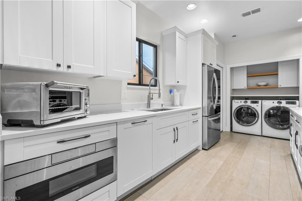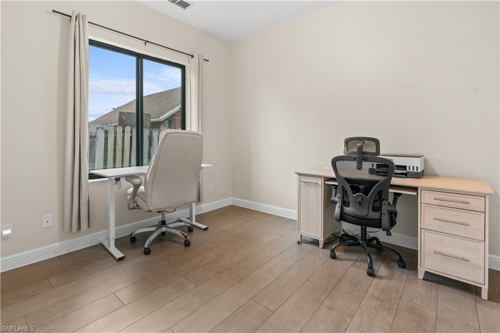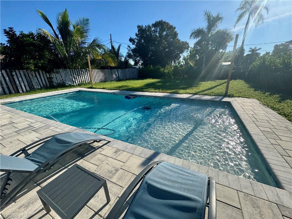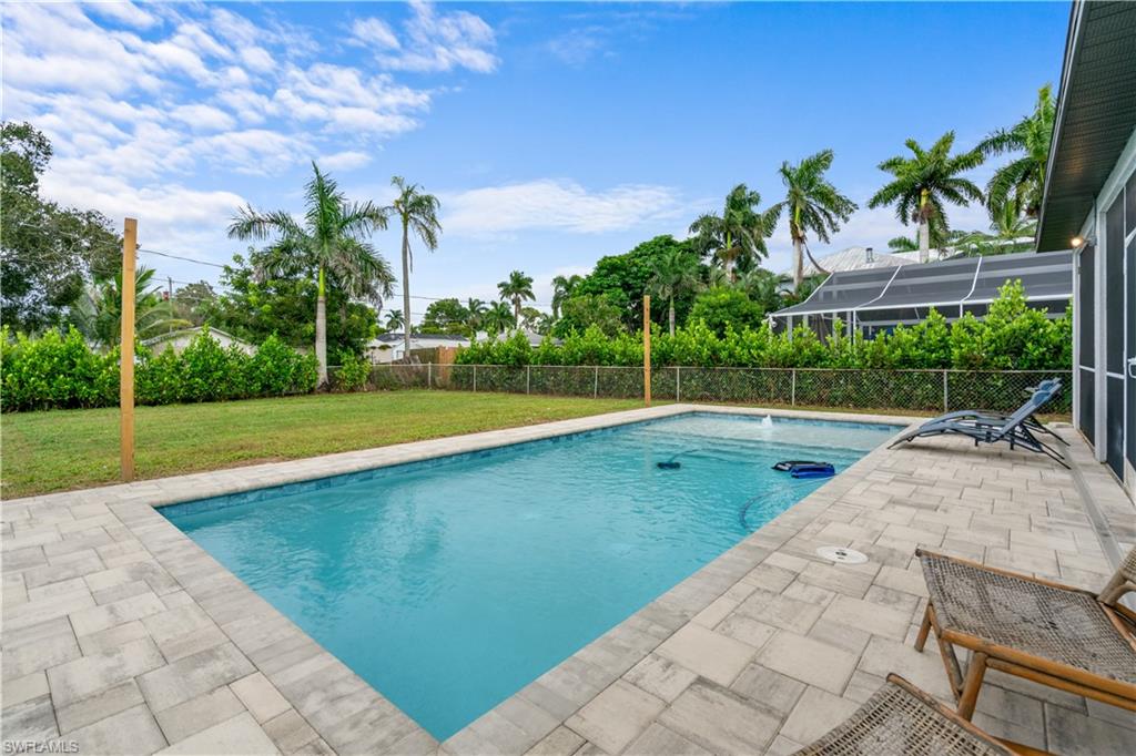 Welcome to this bright and inviting 3-bedroom, 2-bath home with a dedicated office space, tucked away in the historic heart of Bonita Springs. This property offers a highly desirable location just steps from Bonita Springs Elementary, the Community Center, Riverside Park, local restaurants, and boutique shops. The Gulf’s sandy beaches are only minutes away, making it easy to enjoy both everyday convenience and the coastal lifestyle. Inside, you’ll find a spacious open floor plan with a great room design that blends the living and dining areas into one seamless gathering space. The kitchen showcases crisp white cabinetry, sleek quartz countertops, and generous storage, creating both functionality and style. Step into your own private oasis with a brand new pool, designed for both relaxation and entertainment. The sparkling pool features crisp, modern lines and ample space for swimming, lounging, or simply cooling off under the Florida sun. The garage has been thoughtfully converted into a home office, providing flexibility for remote work or creative pursuits. Impact-rated windows and doors throughout offer peace of mind, while the primary suite features a large walk-in closet for added comfort. Positioned just a few blocks from the energy of downtown Bonita Springs, this home is not only a comfortable retreat but also a smart investment in a community on the rise. Here, you can enjoy modern living, coastal charm, and long-term growth potential—all in one.