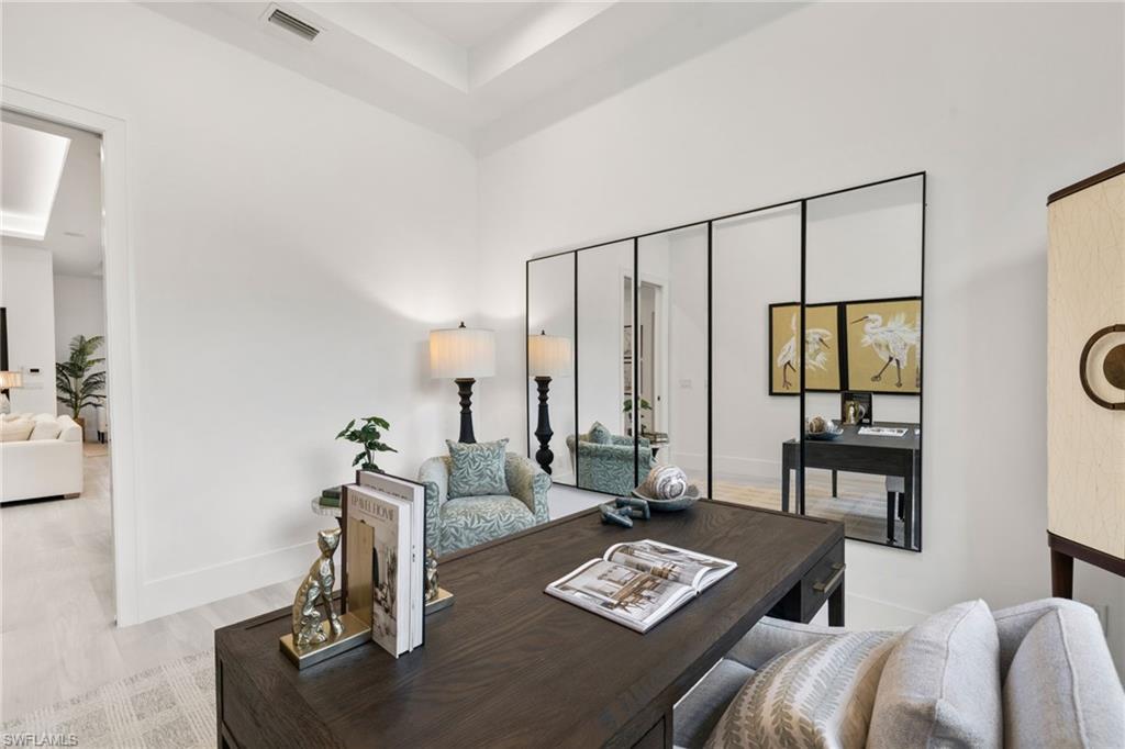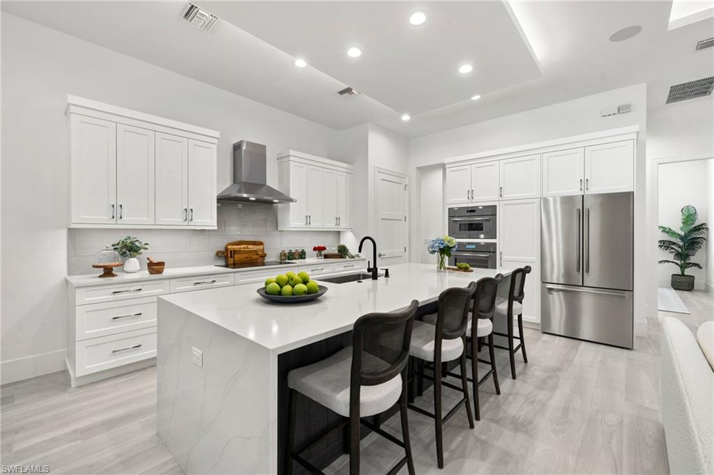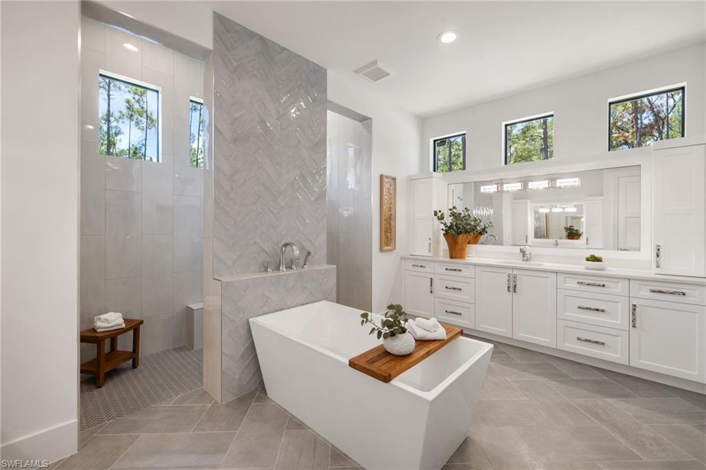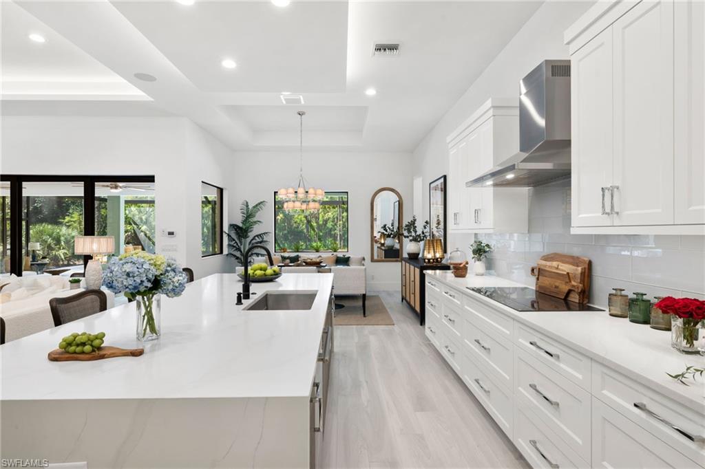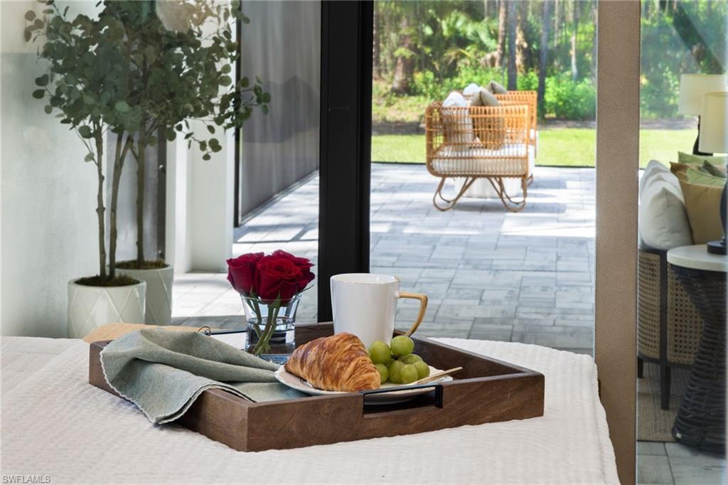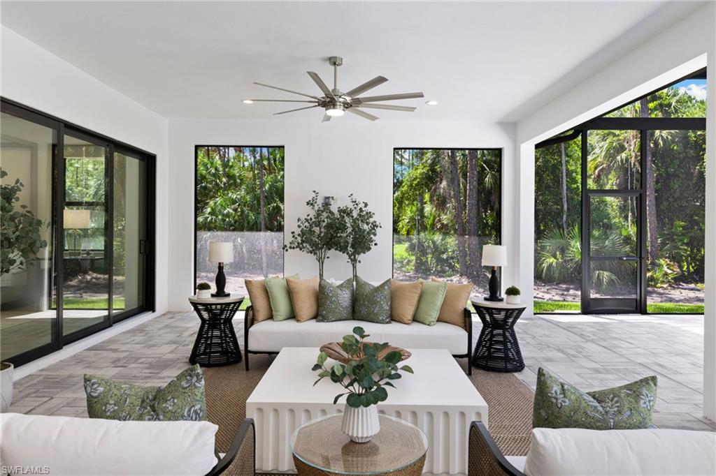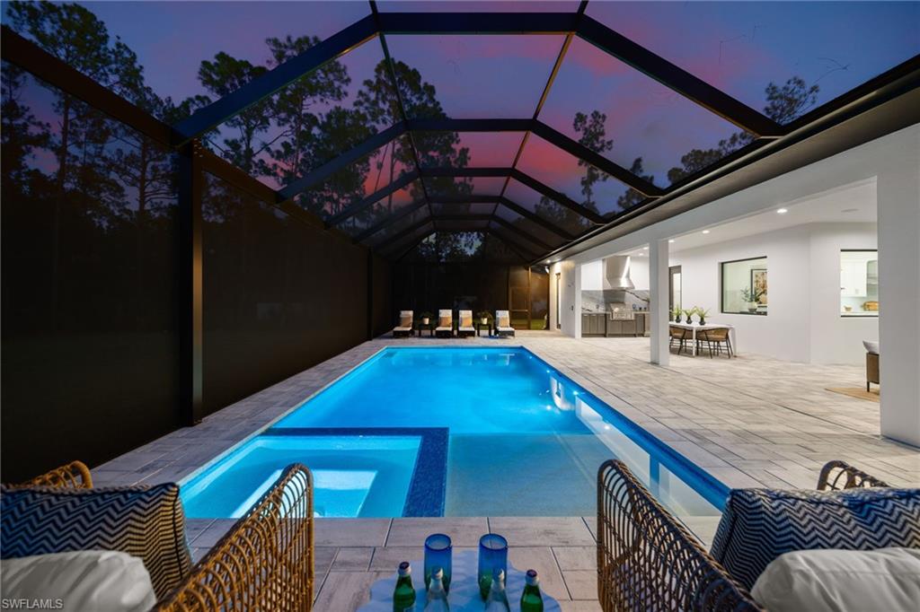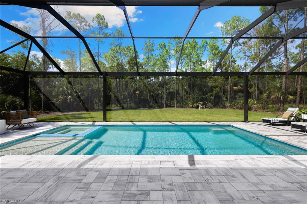 Unmatched in quality, design, and sophistication, in this newly constructed home is a true showpiece. Set on nearly 3 acres of meticulously landscaped grounds and 100% Uplands, the residence was created through the vision of a renowned interior designer and the craftsmanship of Forge Construction, one of the area’s premier custom builders. The expansive property offers endless possibilities—space for a playground, firepit, pickleball or tennis courts, or even an additional garage while maintaining an elegant sense of privacy and tranquility. Inside, the heart of the home is a chef-inspired kitchen featuring Thermador appliances, an induction cooktop, a generous walk-in pantry, and locally crafted custom cabinetry. Countertops of marble, granite, and quartz add timeless refinement, while designer Palecek lighting provides a distinctive finishing touch. Every detail reflects uncompromising quality: PGT aluminum impact windows and sliders, a fiberglass impact-rated front door, insulated garage doors with quiet side-mount openers, an epoxy-finished garage floor, and a durable stucco exterior. Modern conveniences include LED lighting, 400-amp electrical service, a Sonos-integrated A/V system, Ring doorbell, and pre wiring for cameras. Comfort is enhanced with Wi-Fi–controlled HVAC systems with dehumidifiers, a smart water heater with timer and recirculation line. Step outside to experience Florida living at its finest. A fully automated saltwater pool and spa with Pentair lighting invite relaxation, framed by a picture-window screen enclosure. The outdoor bath and shower add convenience, while a summer kitchen-complete with grill, refrigerator, sink, and composite cabinetry—makes entertaining effortless.Blending elegance, innovation, and lifestyle flexibility, this property embodies the very best of modern Florida living. Ideally located in Collier Woods, the property offers the perfect balance of privacy and convenience—just minutes from Naples’ renowned white-sand beaches, world-class golf courses, luxury shopping, and fine dining.