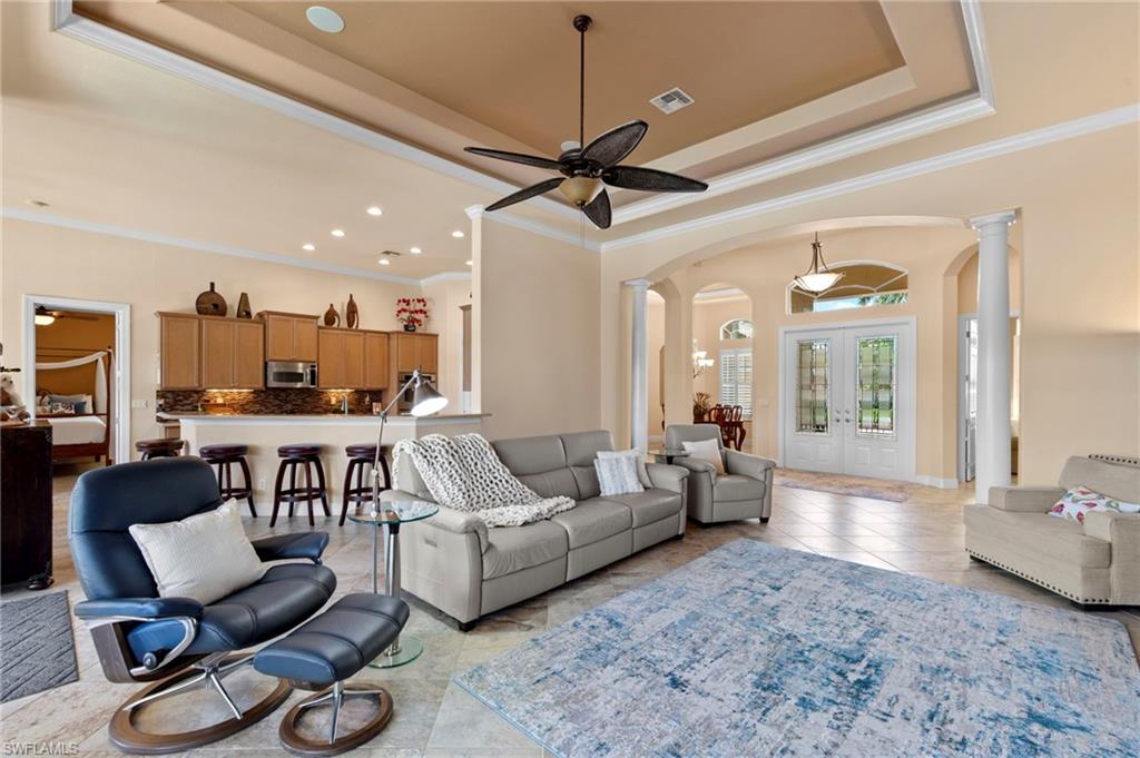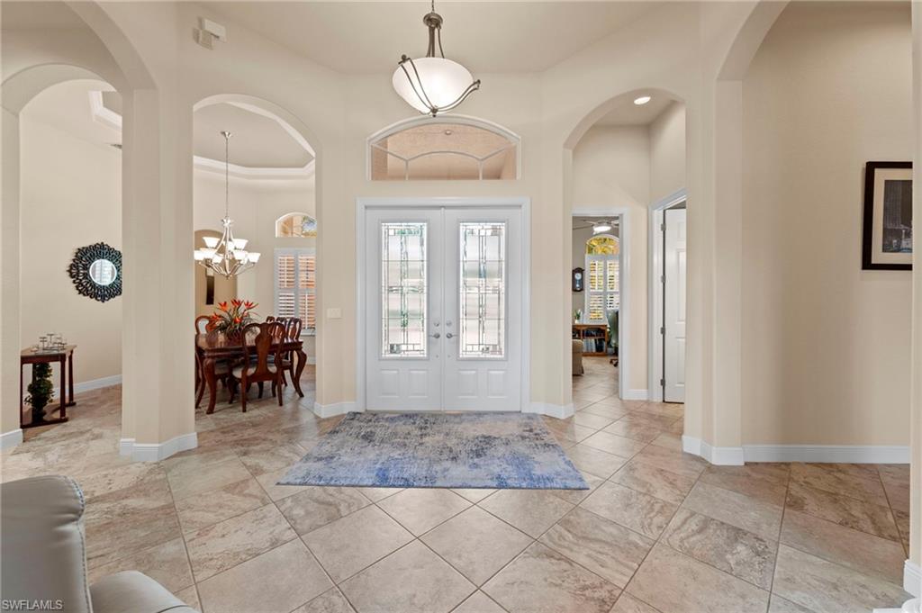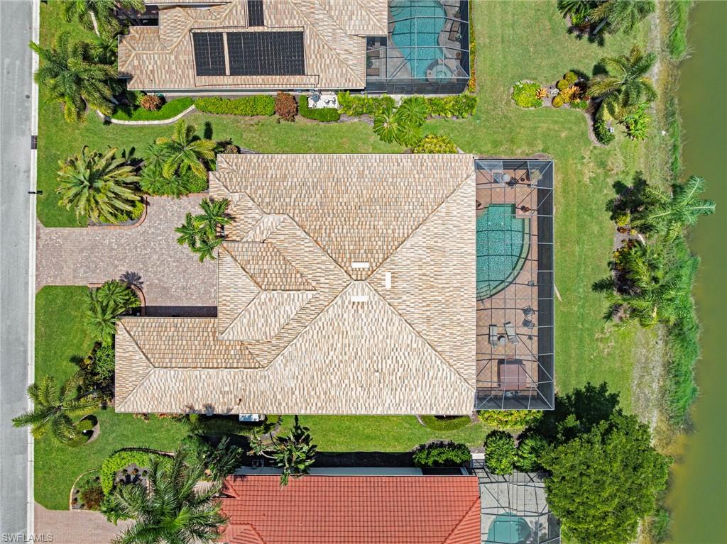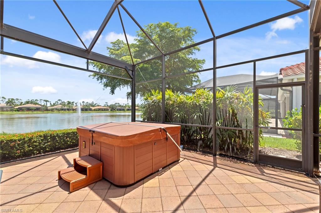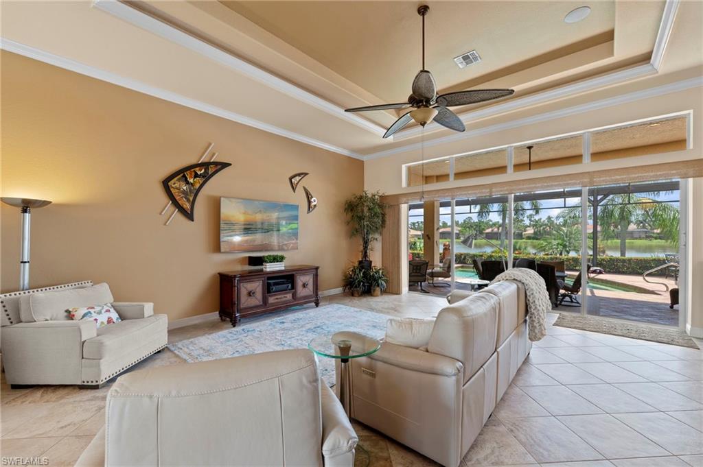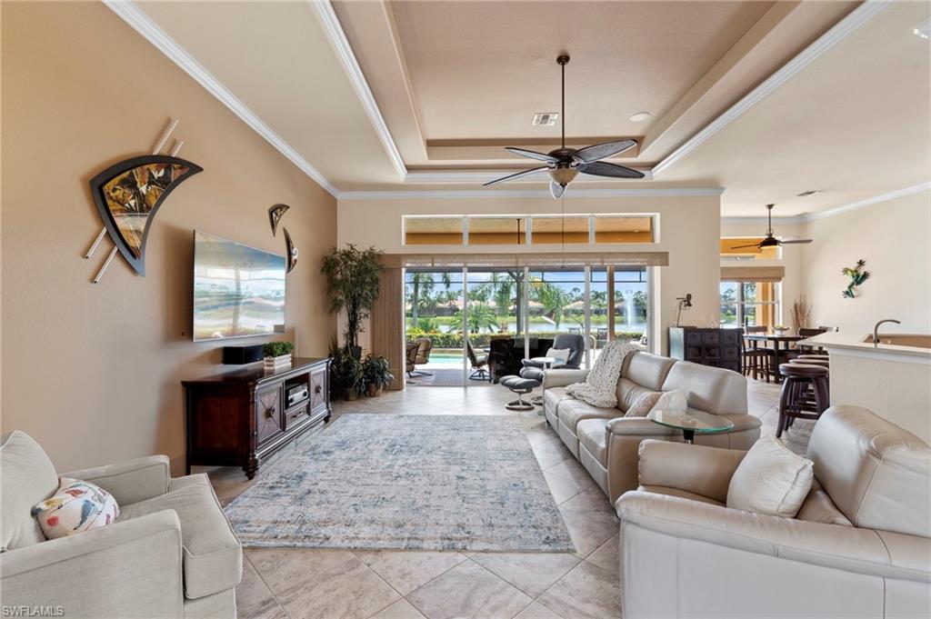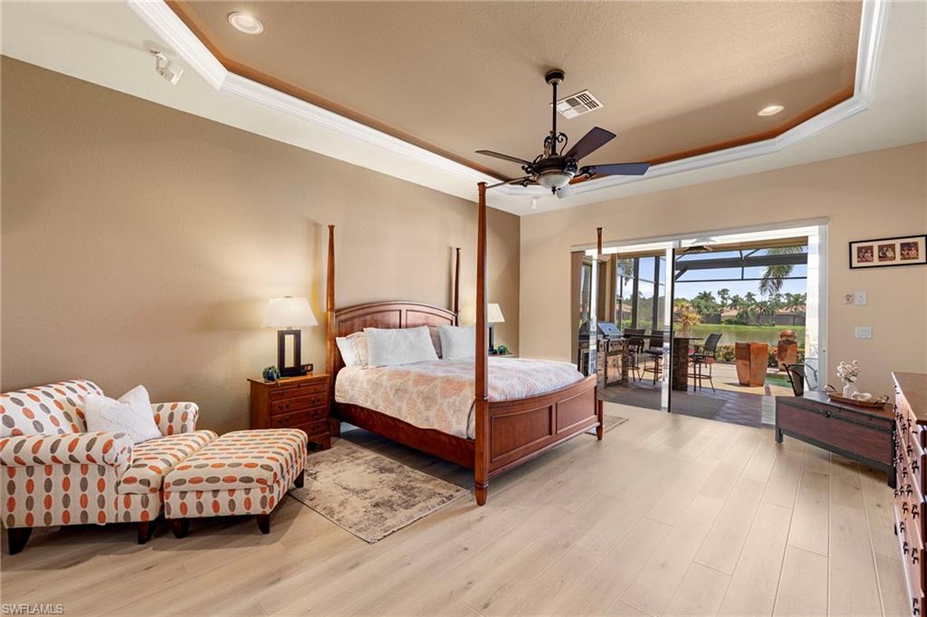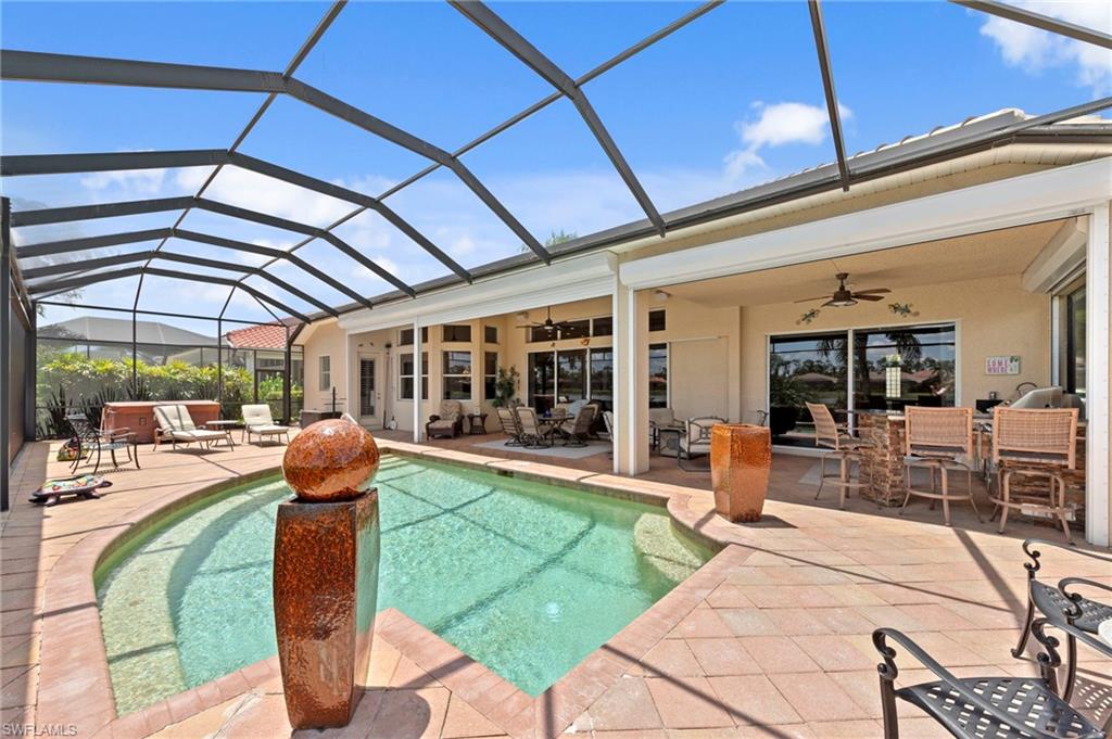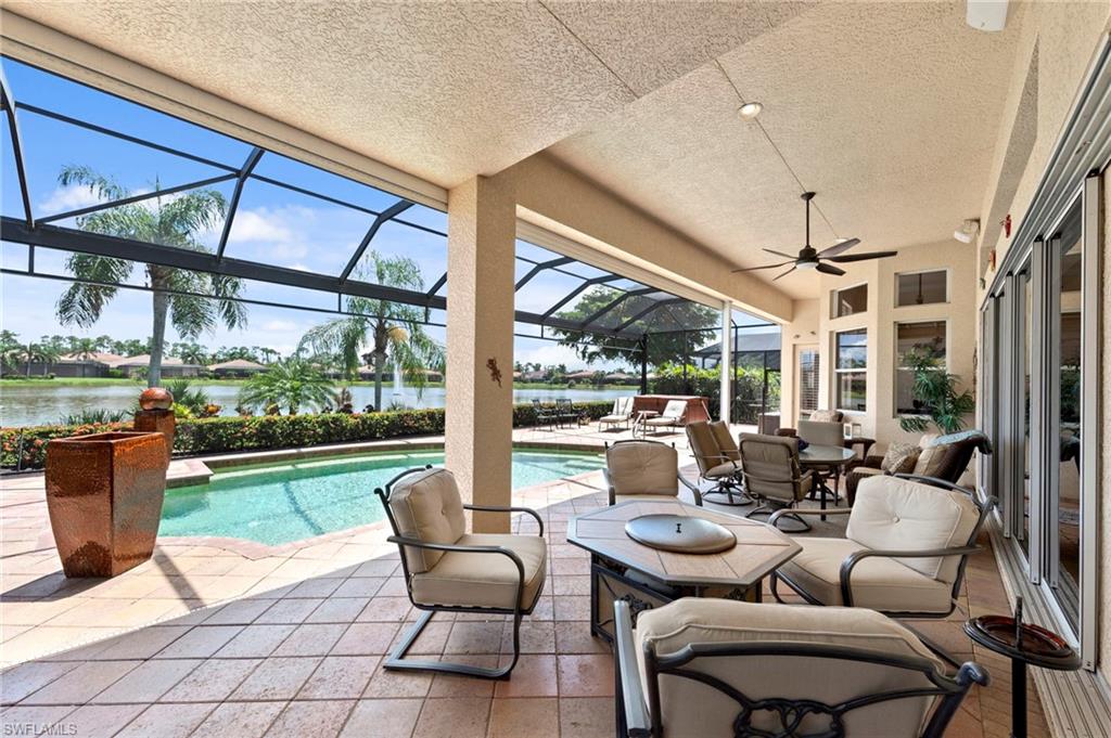 This sought-after Aragon model sits on a premium lakefront lot with sweeping wide-water views and numerous upgrades, blending relaxed sophistication with modern comfort. Spanning over 3,100 square feet, the home offers four spacious bedrooms (or 3 beds + home office) and four full bathrooms, all thoughtfully designed for both everyday living and entertaining. The open great room floor plan with soaring ceilings creates an airy, inviting atmosphere, anchored by a gourmet kitchen with granite countertops, stainless steel appliances, and a generous center island—perfect for gatherings with family and friends. The master suite is a true retreat, with tray ceilings, dual walk-in closets, 8-foot sliding glass doors to the lanai, and a spa-like bathroom featuring dual vanities, a soaking tub, and a walk-in shower. New LVP flooring runs throughout all bedrooms, offering style, durability, and comfort with no carpet. Walls of sliding glass open to the screened lanai, where a sparkling SALTWATER POOL is framed by a new panoramic screen that enhances the wide-water view. A full outdoor kitchen and spacious lanai provide the perfect setting for entertaining or enjoying peaceful lakefront living. For added peace of mind, the home features a newer roof, A/C's, pool heater, and water heater, along with IMPACT GLASS windows, a WHOLE-HOUSE GENERATOR, and roll-down hurricane shutters. Belle Lago residents enjoy resort-style amenities including a clubhouse, fitness center, resort pool, tennis and pickleball courts, walking trails, and a lively social calendar. Residents also have the option of joining neighboring Estero Country Club, with private golf cart access between the two communities. Ideally located near Coconut Point, RSW Airport, FGCU, and the Gulf beaches! Don't miss a rare opportunity to own one of Belle Lago’s most desirable lakefront residences, offering timeless elegance, a central location between Fort Myers and Naples, and the added security of being in low-risk Flood Zone X.