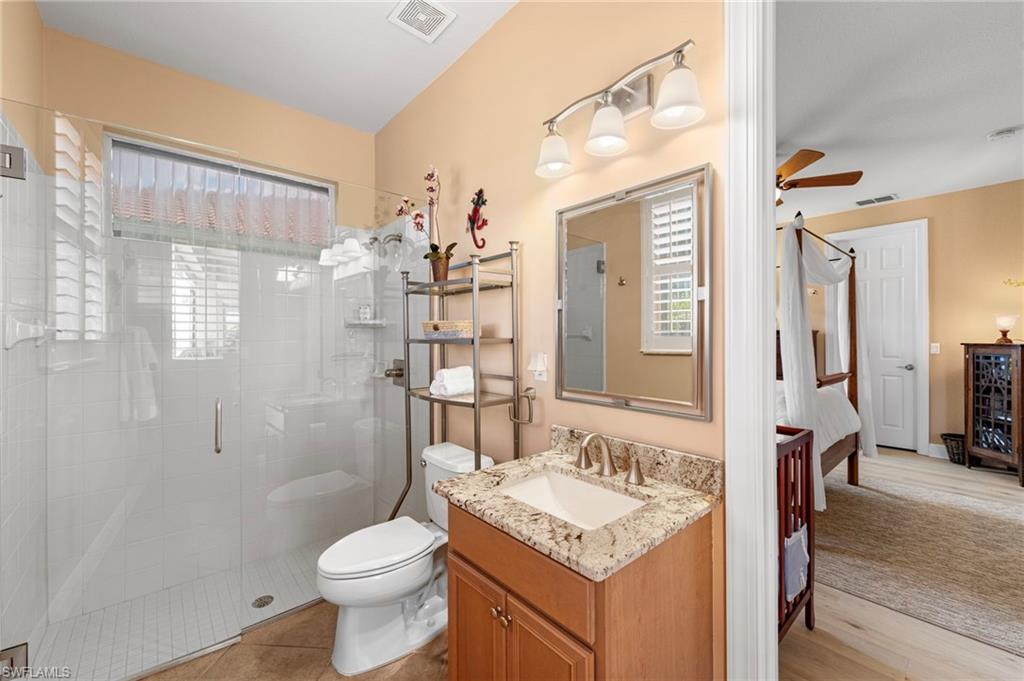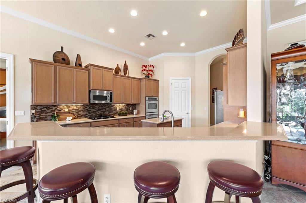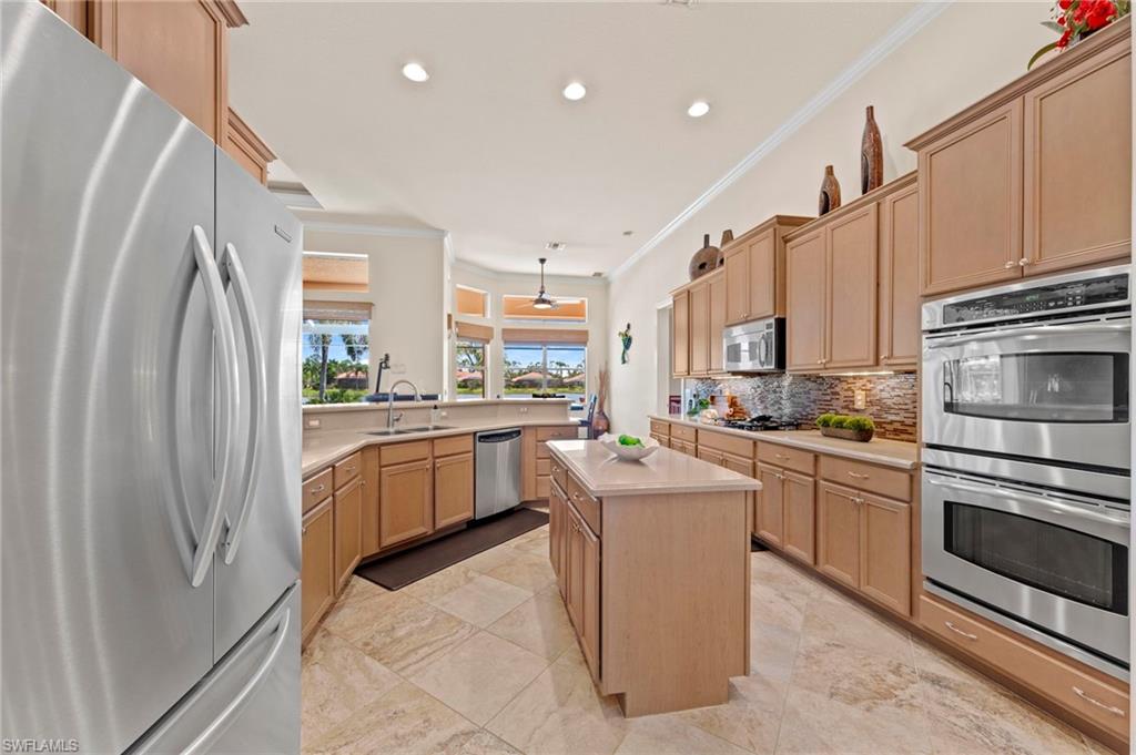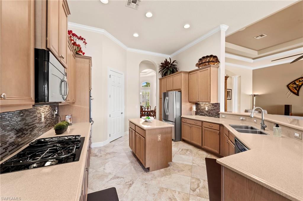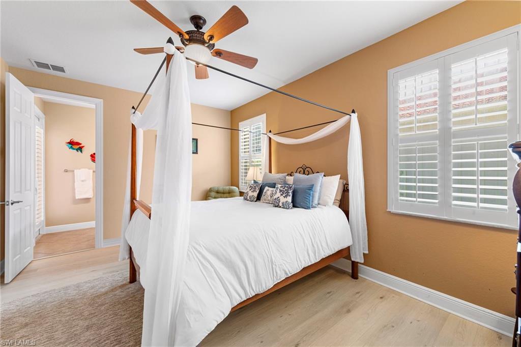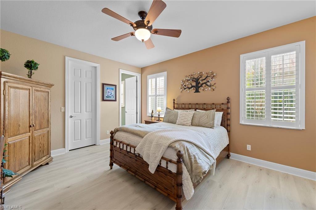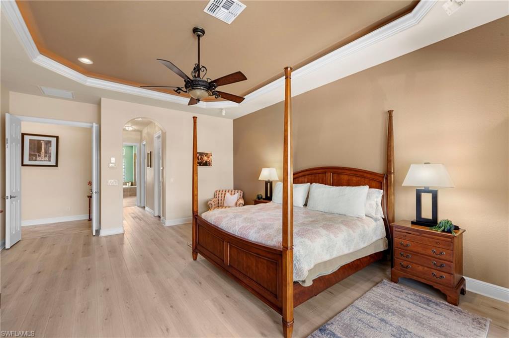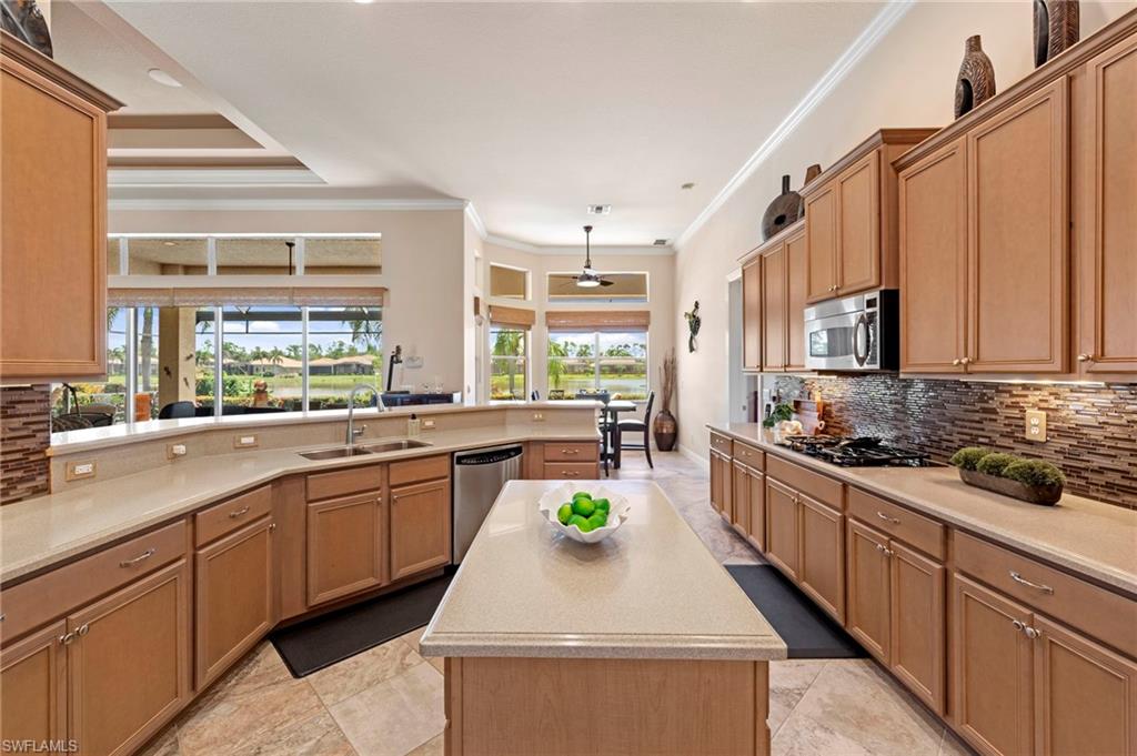 This sought-after Aragon model sits on a premium lakefront lot with sweeping wide-water views and numerous upgrades, blending relaxed sophistication with modern comfort. Spanning over 3,100 square feet, the home offers four spacious bedrooms (or 3 beds + home office) and four full bathrooms, all thoughtfully designed for both everyday living and entertaining. The open great room floor plan with soaring ceilings creates an airy, inviting atmosphere, anchored by a gourmet kitchen with granite countertops, stainless steel appliances, and a generous center island—perfect for gatherings with family and friends. The master suite is a true retreat, with tray ceilings, dual walk-in closets, 8-foot sliding glass doors to the lanai, and a spa-like bathroom featuring dual vanities, a soaking tub, and a walk-in shower. New LVP flooring runs throughout all bedrooms, offering style, durability, and comfort with no carpet. Walls of sliding glass open to the screened lanai, where a sparkling SALTWATER POOL is framed by a new panoramic screen that enhances the wide-water view. A full outdoor kitchen and spacious lanai provide the perfect setting for entertaining or enjoying peaceful lakefront living. For added peace of mind, the home features a newer roof, A/C's, pool heater, and water heater, along with IMPACT GLASS windows, a WHOLE-HOUSE GENERATOR, and roll-down hurricane shutters. Belle Lago residents enjoy resort-style amenities including a clubhouse, fitness center, resort pool, tennis and pickleball courts, walking trails, and a lively social calendar. Residents also have the option of joining neighboring Estero Country Club, with private golf cart access between the two communities. Ideally located near Coconut Point, RSW Airport, FGCU, and the Gulf beaches! Don't miss a rare opportunity to own one of Belle Lago’s most desirable lakefront residences, offering timeless elegance, a central location between Fort Myers and Naples, and the added security of being in low-risk Flood Zone X.