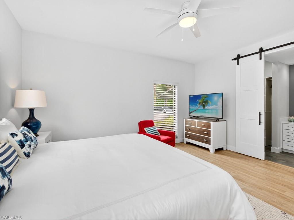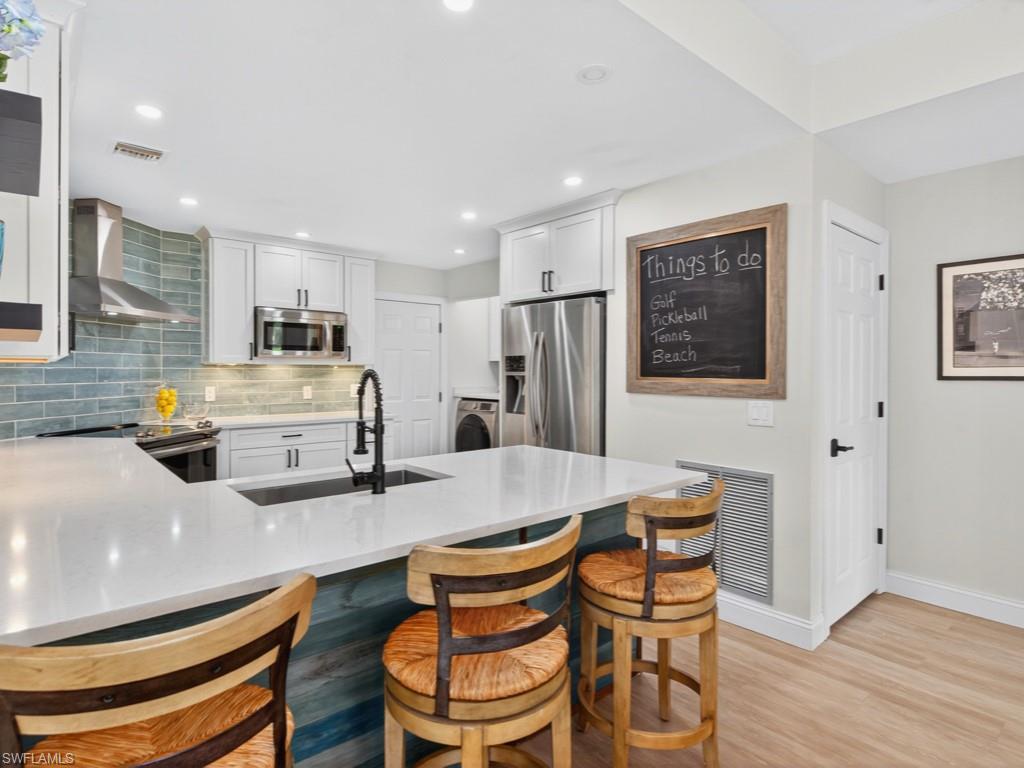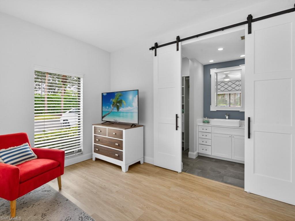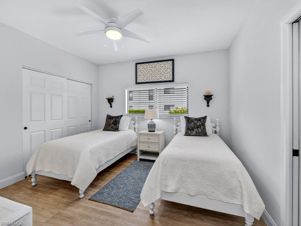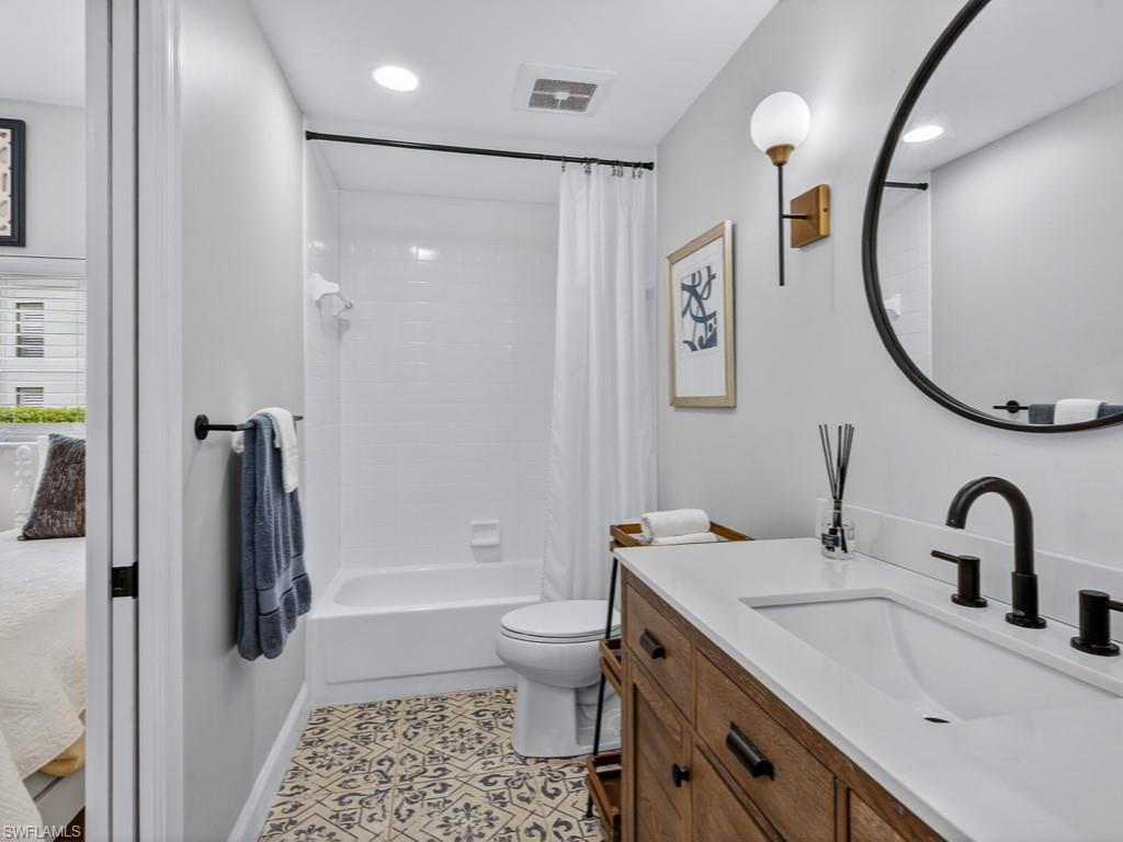 IMMEDIATE GOLF MEMBERSHIP AVAILABLE | TURNKEY | RENOVATED SHOWSTOPPER! Experience the best of Naples living in this 3 BR, 3 BA (all en-suite) residence in Eagle Creek Golf & Country Club. Nearly 2,000 SF of open living blends effortless style with everyday comfort—lives like a single-family home. Thoughtfully renovated with quality finishes, stylish furnishings, and updated systems throughout. Primary suite and second master suite feature custom closets, designer walk-in showers showcasing custom glass and mosaic stone, DBL sinks, quartz tops. The third bedroom—a sun-filled guest suite—includes a gorgeous designer bathroom highlighting Merola porcelain floor tile and tub. A fabulous gourmet kitchen shines with quartz countertops, imported aqua tile backsplash, and stainless appliances, while a custom wet bar with Brazilian granite and dual-zone beverage fridge elevates entertaining. Step out to an expansive 500 sf screened lanai showcasing a 20-ft opening with brand-new, storm impact sliders (California-style), 30 x 30 Arctic-white porcelain tile, all-new screening—framing spectacular golf-course views of the coveted 4th hole. Additional highlights: newer A/C, designer lighting & hardware, abundant storage (separate outdoor storage), and covered parking. Enjoy resort-style amenities—NEW clubhouse for dining & entertainment, pickleball, tennis, bocce, pool, fitness center, and yoga studio—minutes to Naples beaches, Olde Naples, and Marco Island. Social or Golf Membership required.