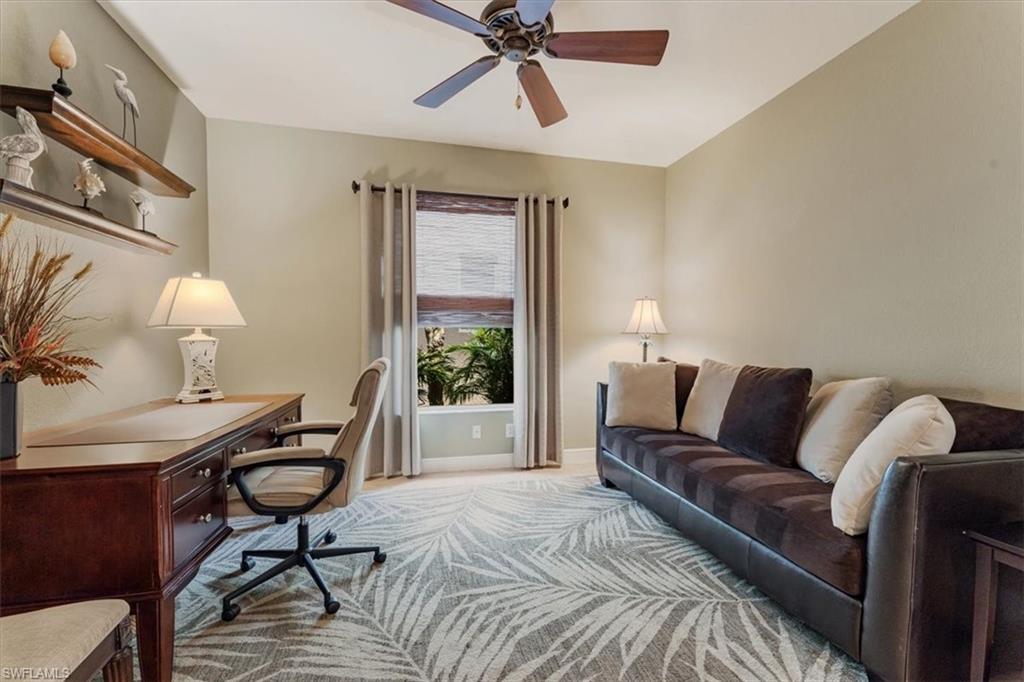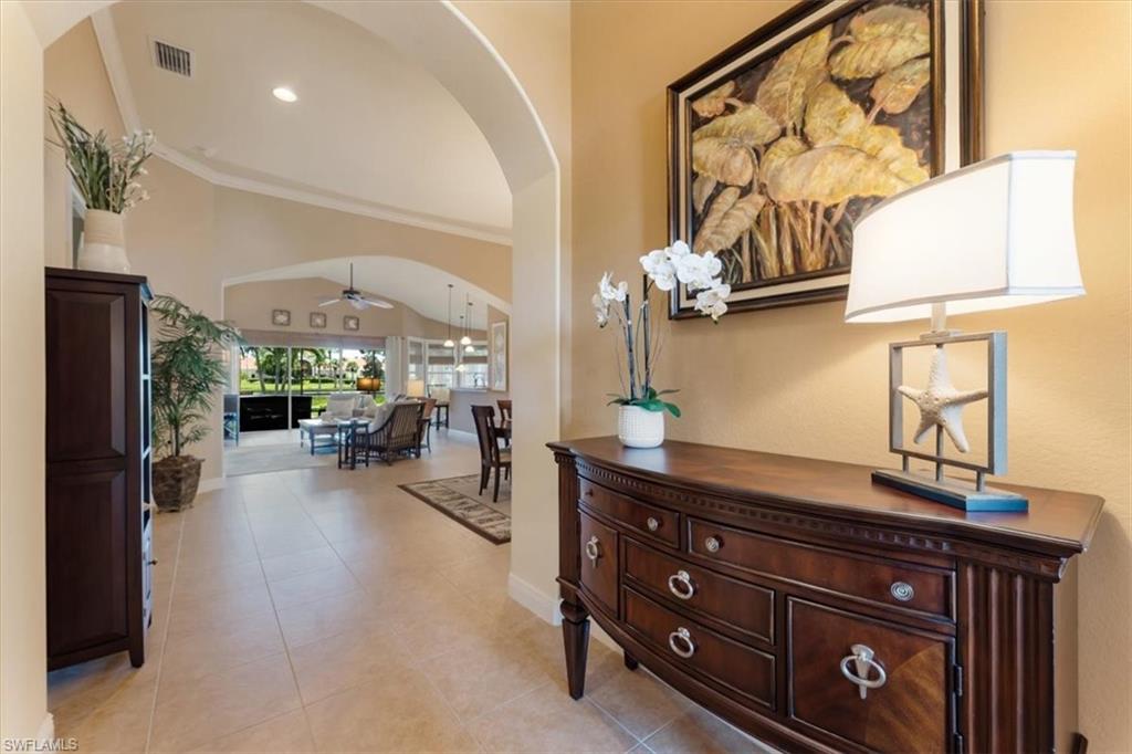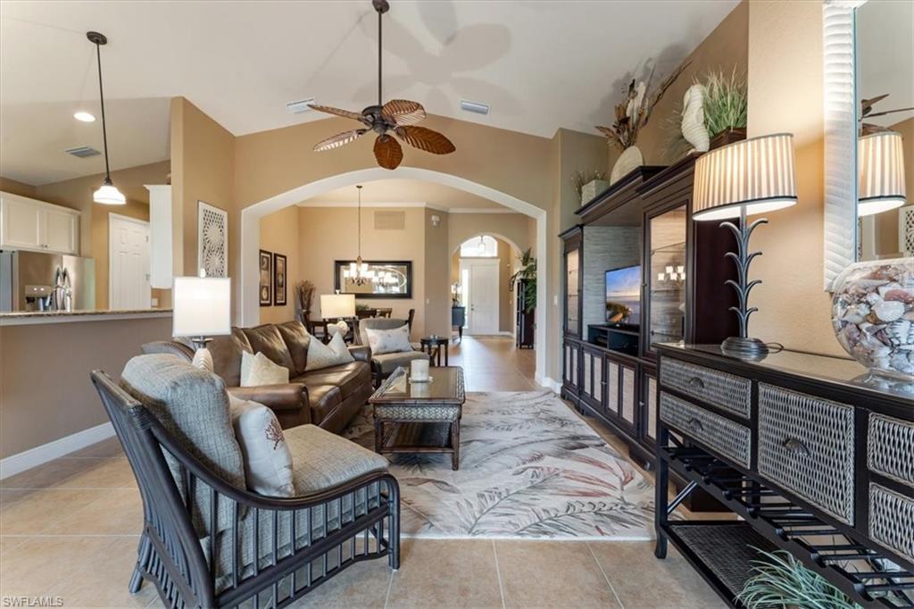 Welcome to your dream home in the coveted community of The Reserve at Estero! This stunning one owner single family home has been meticulously cared for & is being sold fully furnished. This spotless home is move-in ready & features 2 bedrooms, a den/office, with 2 bathrooms & a 2 car garage. The open concept floor plan is perfect for entertaining, & the beautifully decorated living room is bright & inviting. Soaring archways & cathedral ceilings add a sense of grandeur. The gourmet kitchen with a natural gas range also boasts spacious granite counters, a breakfast bar, and stainless steel appliances, with a new refrigerator in 2023 & new microwave in 2024. Step outside to the southern exposure lakefront location and take in the breathtaking views from your own sunset lakefront patio. The spacious den is currently being used as a home office but can easily be converted to a 3rd bedroom for your family or guests. The newer HVAC system installed in December of 2023 will ensure that you will stay comfortable and stress free year round. Custom window treatments add a finishing touch of class to every room, and this home is ready for immediate occupancy. No need to stress over furniture shopping! The Reserve at Estero is perfectly located in the heart of Estero, only minutes from retail, grocery, medical offices, RSW & the white sands of Bonita Beach. Don't miss out on this incredible opportunity to own a piece of paradise in the heart of Estero!