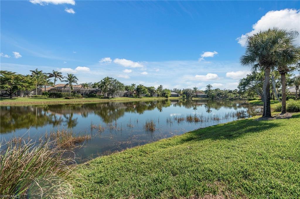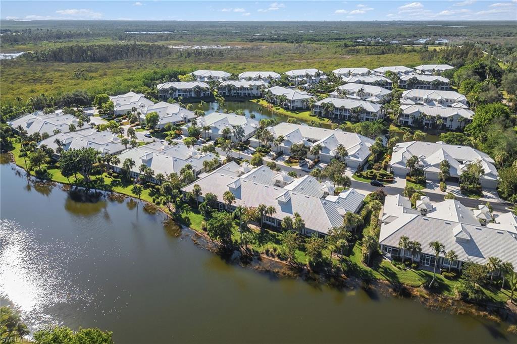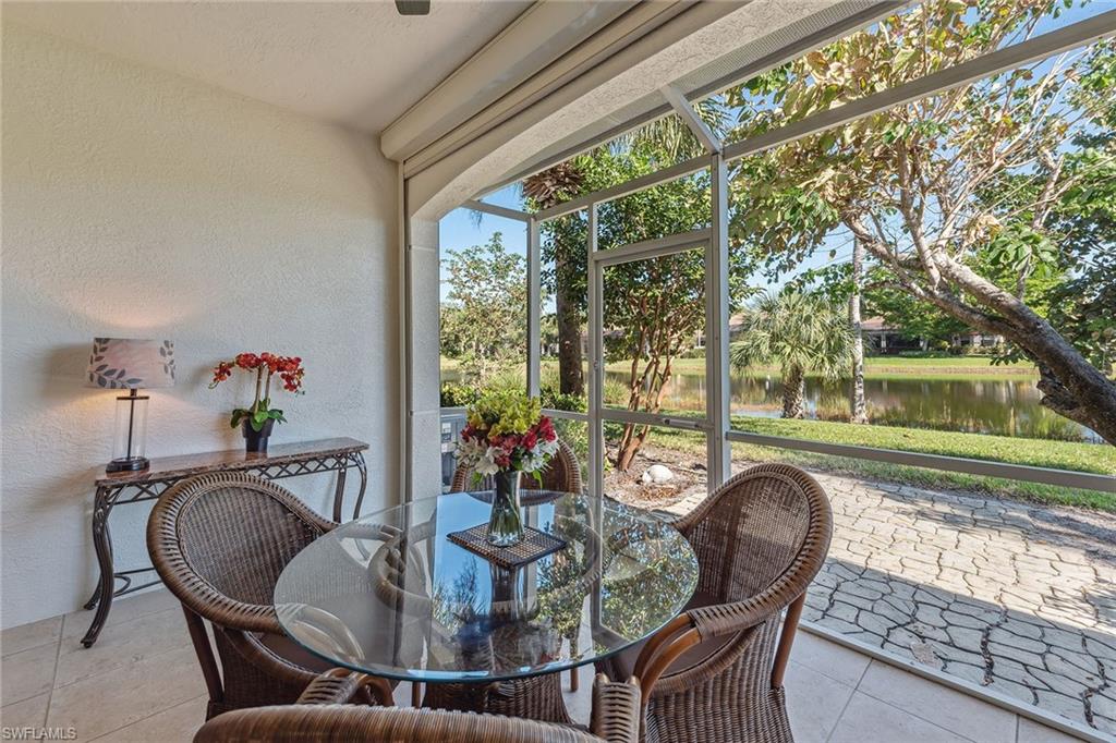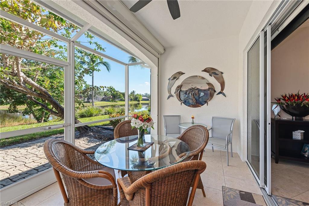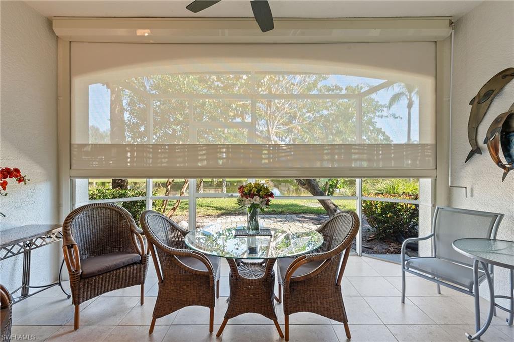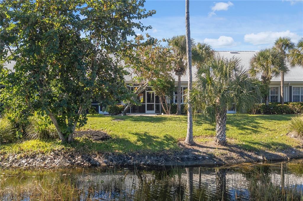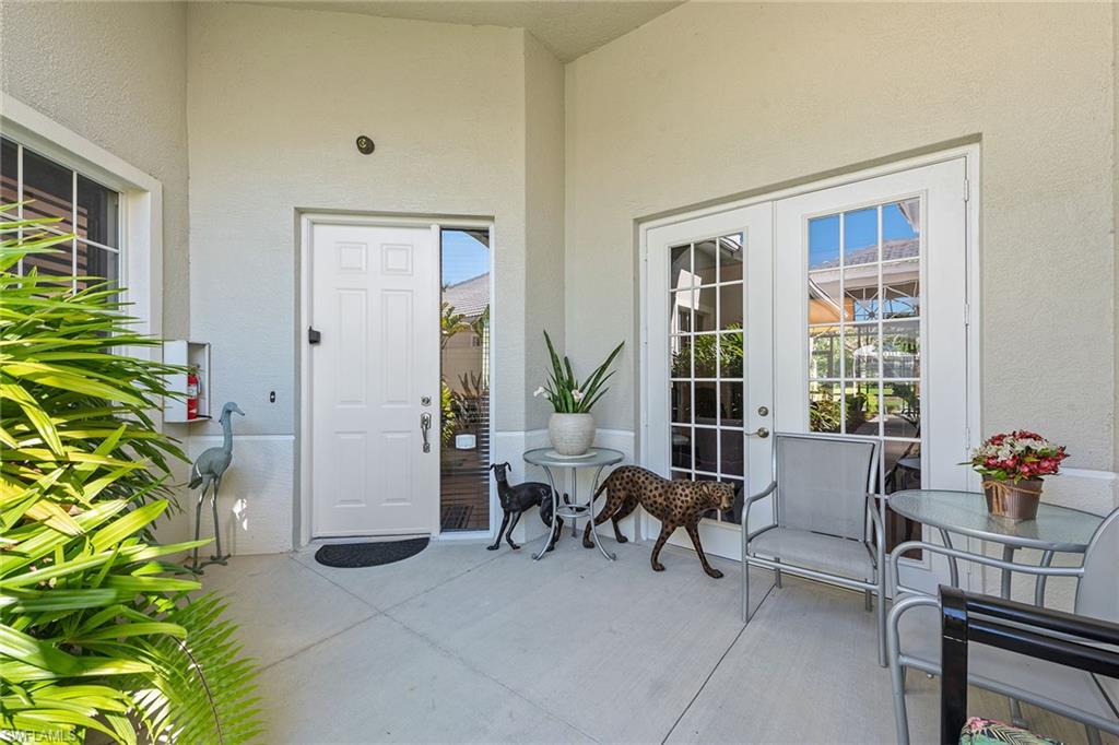 Located in the award-winning community of Cardinal Cove in highly regarded Fiddler’s Creek, this beautifully maintained villa offers the perfect blend of elegance, comfort, and tranquil lakefront living. Enjoy picturesque sunrise views from the expansive screened-in lanai, complete with in-ceiling speakers, an electric storm screen, and ample space for both dining and relaxation. Thoughtfully designed and meticulously cared for, this 1,539-square-foot home features two spacious bedrooms, two full baths, and a two-car garage. Inside, soaring 10-foot ceilings, crown molding, plantation shutters, and 18-inch tile flooring create a warm and inviting ambiance throughout the main living areas. The kitchen is a chef’s delight, offering white cabinetry with under- and over-cabinet lighting, a pantry, natural gas cooking, and a new LG refrigerator. The open-concept living and dining area seamlessly flows to the lanai through sliding glass doors, while French doors lead to a charming front porch offering multiple spaces to enjoy Naples' sunny weather. The owner’s suite is a peaceful retreat with engineered wood flooring, a walk-in closet, and an elegant en-suite bath featuring dual vanities with marble countertops, a walk-in shower, soaking tub, and a high-end Toto toilet. The spacious guest bedroom, also with wood flooring, is conveniently located near a full bath across the hall. Additional highlights include a well-equipped laundry room with a storage closet, wall cabinets, and utility sink, plus a retractable screen in the garage. Every detail of this home has been thoughtfully curated for easy, stylish living. It’s ideal for seasonal or year-round living. A rare feature that you will enjoy is having no other unit above you or below you, which provides for a free-standing, single-family home feel. Also, the Cardinal Cove village is in high demand due to its quaint feel, with only 44 residences, and a heated swimming pool solely for the village residents at the end of the street. Residents of Fiddler’s Creek enjoy world-class amenities including a state-of-the-art fitness center with personal training and classes, an extremely active tennis and pickleball program, bocce, spa services, sauna and steam rooms, fine and casual dining, and a resort-style pool with poolside service. An extensive calendar of events, activities, and parties adds to the vibrant social lifestyle. Optional memberships are available at The Golf Club, with no wait to join, and featuring a newly renovated championship course and a brand-new clubhouse, as well as The Tarpon Club for beach and marina privileges. Don’t miss this opportunity to own a lakeside retreat with modern conveniences in one of Southwest Florida’s most sought-after communities. Miles of sidewalks for walking, jogging, and bicycling surrounded by stunning tropical landscaping. Perfectly located, convenient to the beaches, boutiques, restaurants, golf courses, and executive airport of Naples and Marco Island.
