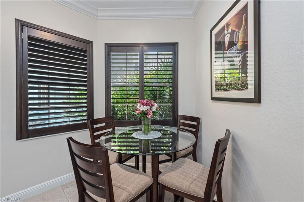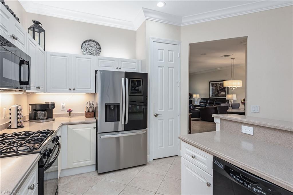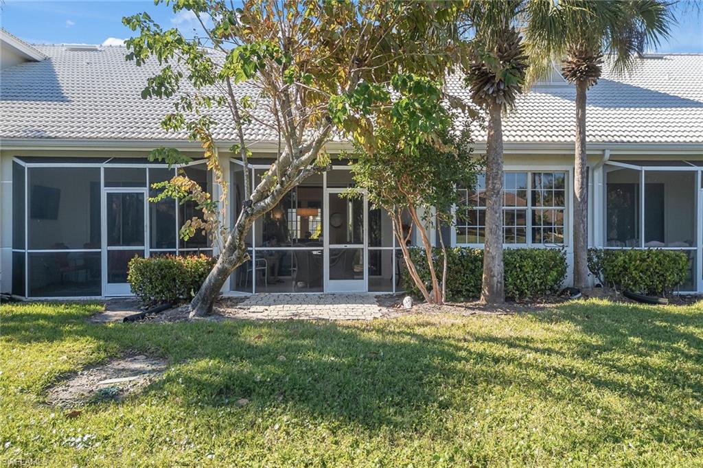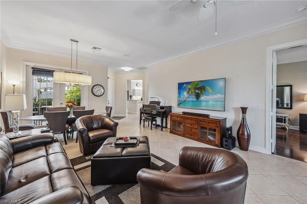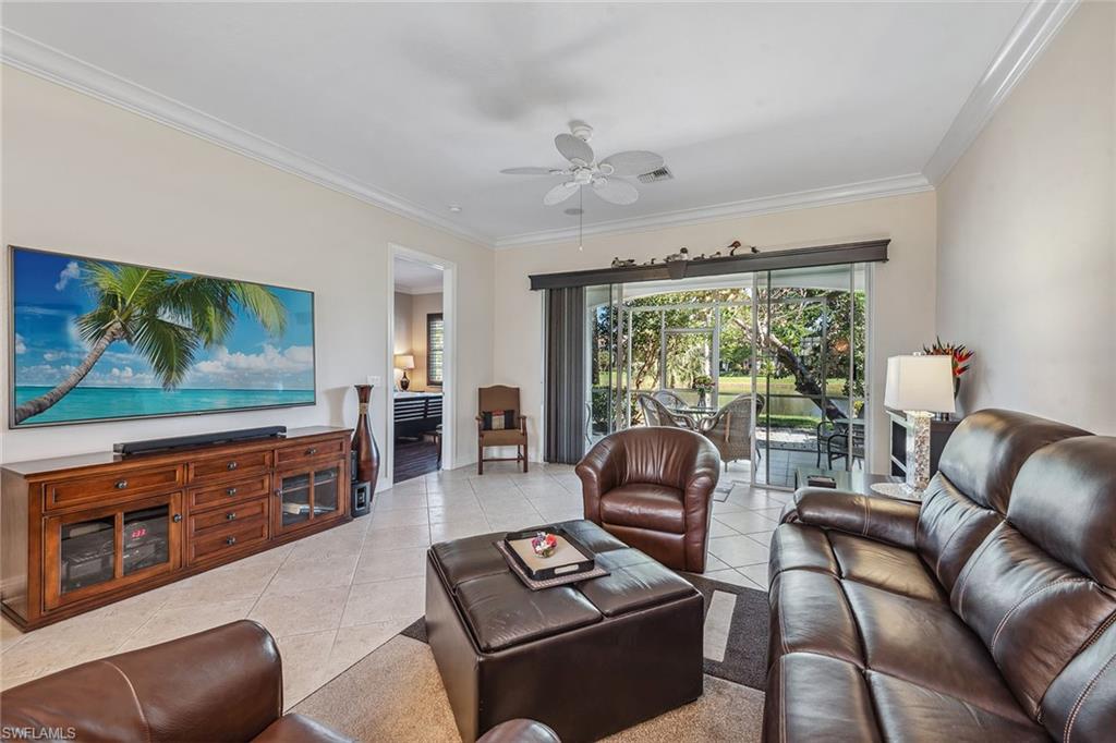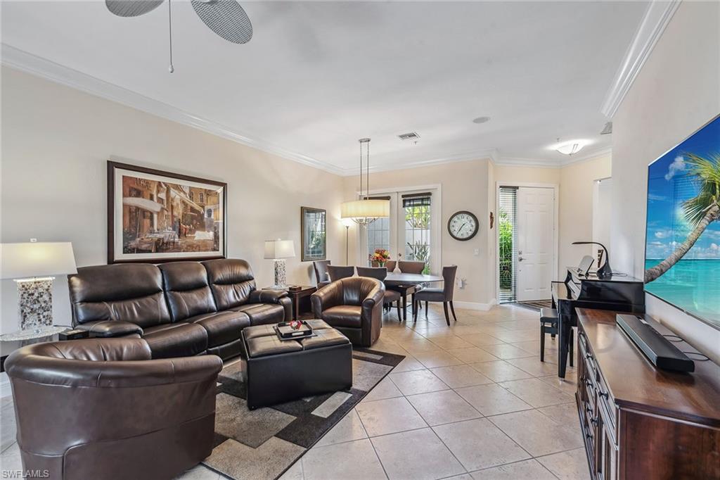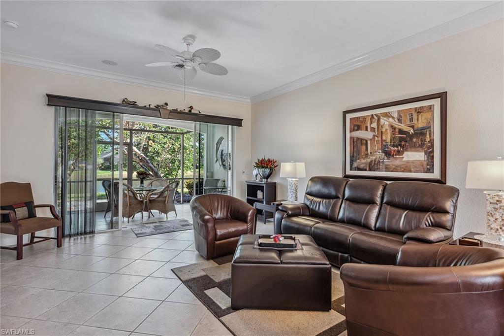 Located in the award-winning community of Cardinal Cove in highly regarded Fiddler’s Creek, this beautifully maintained villa offers the perfect blend of elegance, comfort, and tranquil lakefront living. Enjoy picturesque sunrise views from the expansive screened-in lanai, complete with in-ceiling speakers, an electric storm screen, and ample space for both dining and relaxation. Thoughtfully designed and meticulously cared for, this 1,539-square-foot home features two spacious bedrooms, two full baths, and a two-car garage. Inside, soaring 10-foot ceilings, crown molding, plantation shutters, and 18-inch tile flooring create a warm and inviting ambiance throughout the main living areas. The kitchen is a chef’s delight, offering white cabinetry with under- and over-cabinet lighting, a pantry, natural gas cooking, and a new LG refrigerator. The open-concept living and dining area seamlessly flows to the lanai through sliding glass doors, while French doors lead to a charming front porch offering multiple spaces to enjoy Naples' sunny weather. The owner’s suite is a peaceful retreat with engineered wood flooring, a walk-in closet, and an elegant en-suite bath featuring dual vanities with marble countertops, a walk-in shower, soaking tub, and a high-end Toto toilet. The spacious guest bedroom, also with wood flooring, is conveniently located near a full bath across the hall. Additional highlights include a well-equipped laundry room with a storage closet, wall cabinets, and utility sink, plus a retractable screen in the garage. Every detail of this home has been thoughtfully curated for easy, stylish living. It’s ideal for seasonal or year-round living. A rare feature that you will enjoy is having no other unit above you or below you, which provides for a free-standing, single-family home feel. Also, the Cardinal Cove village is in high demand due to its quaint feel, with only 44 residences, and a heated swimming pool solely for the village residents at the end of the street. Residents of Fiddler’s Creek enjoy world-class amenities including a state-of-the-art fitness center with personal training and classes, an extremely active tennis and pickleball program, bocce, spa services, sauna and steam rooms, fine and casual dining, and a resort-style pool with poolside service. An extensive calendar of events, activities, and parties adds to the vibrant social lifestyle. Optional memberships are available at The Golf Club, with no wait to join, and featuring a newly renovated championship course and a brand-new clubhouse, as well as The Tarpon Club for beach and marina privileges. Don’t miss this opportunity to own a lakeside retreat with modern conveniences in one of Southwest Florida’s most sought-after communities. Miles of sidewalks for walking, jogging, and bicycling surrounded by stunning tropical landscaping. Perfectly located, convenient to the beaches, boutiques, restaurants, golf courses, and executive airport of Naples and Marco Island.