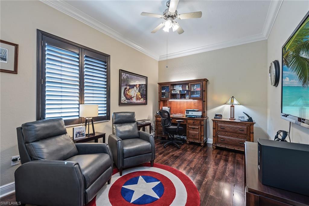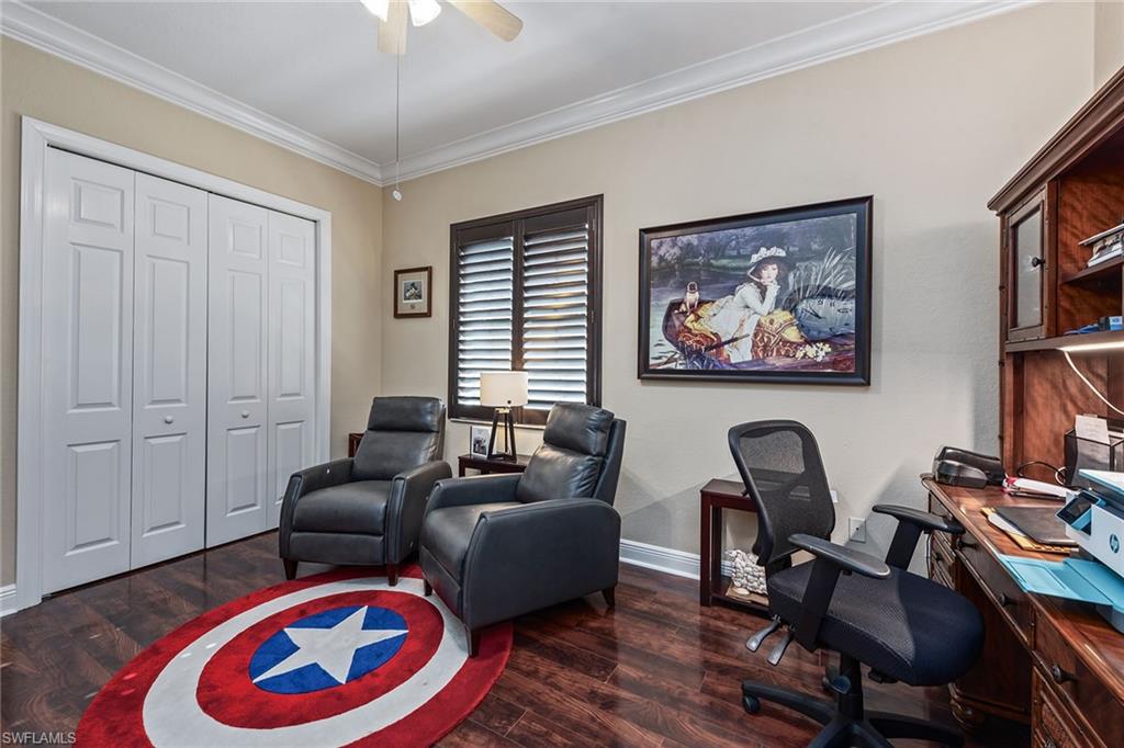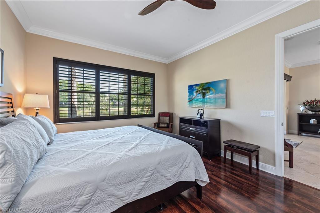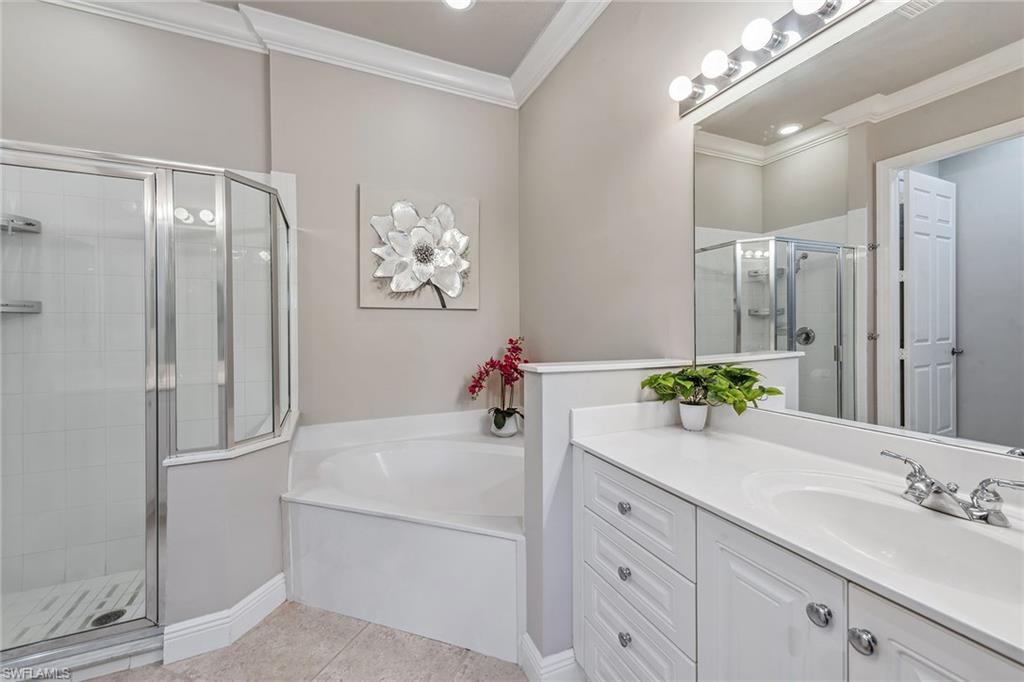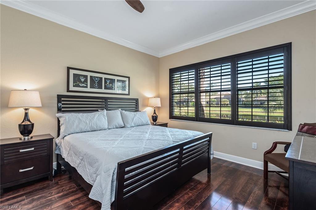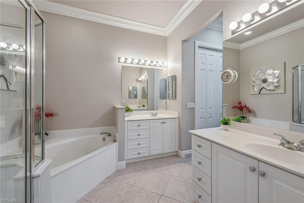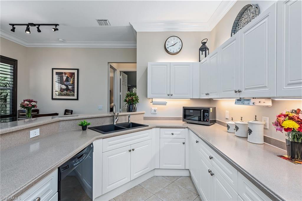 Located in the award-winning community of Cardinal Cove in highly regarded Fiddler’s Creek, this beautifully maintained villa offers the perfect blend of elegance, comfort, and tranquil lakefront living. Enjoy picturesque sunrise views from the expansive screened-in lanai, complete with in-ceiling speakers, an electric storm screen, and ample space for both dining and relaxation. Thoughtfully designed and meticulously cared for, this 1,539-square-foot home features two spacious bedrooms, two full baths, and a two-car garage. Inside, soaring 10-foot ceilings, crown molding, plantation shutters, and 18-inch tile flooring create a warm and inviting ambiance throughout the main living areas. The kitchen is a chef’s delight, offering white cabinetry with under- and over-cabinet lighting, a pantry, natural gas cooking, and a new LG refrigerator. The open-concept living and dining area seamlessly flows to the lanai through sliding glass doors, while French doors lead to a charming front porch offering multiple spaces to enjoy Naples' sunny weather. The owner’s suite is a peaceful retreat with engineered wood flooring, a walk-in closet, and an elegant en-suite bath featuring dual vanities with marble countertops, a walk-in shower, soaking tub, and a high-end Toto toilet. The spacious guest bedroom, also with wood flooring, is conveniently located near a full bath across the hall. Additional highlights include a well-equipped laundry room with a storage closet, wall cabinets, and utility sink, plus a retractable screen in the garage. Every detail of this home has been thoughtfully curated for easy, stylish living. It’s ideal for seasonal or year-round living. A rare feature that you will enjoy is having no other unit above you or below you, which provides for a free-standing, single-family home feel. Also, the Cardinal Cove village is in high demand due to its quaint feel, with only 44 residences, and a heated swimming pool solely for the village residents at the end of the street. Residents of Fiddler’s Creek enjoy world-class amenities including a state-of-the-art fitness center with personal training and classes, an extremely active tennis and pickleball program, bocce, spa services, sauna and steam rooms, fine and casual dining, and a resort-style pool with poolside service. An extensive calendar of events, activities, and parties adds to the vibrant social lifestyle. Optional memberships are available at The Golf Club, with no wait to join, and featuring a newly renovated championship course and a brand-new clubhouse, as well as The Tarpon Club for beach and marina privileges. Don’t miss this opportunity to own a lakeside retreat with modern conveniences in one of Southwest Florida’s most sought-after communities. Miles of sidewalks for walking, jogging, and bicycling surrounded by stunning tropical landscaping. Perfectly located, convenient to the beaches, boutiques, restaurants, golf courses, and executive airport of Naples and Marco Island.