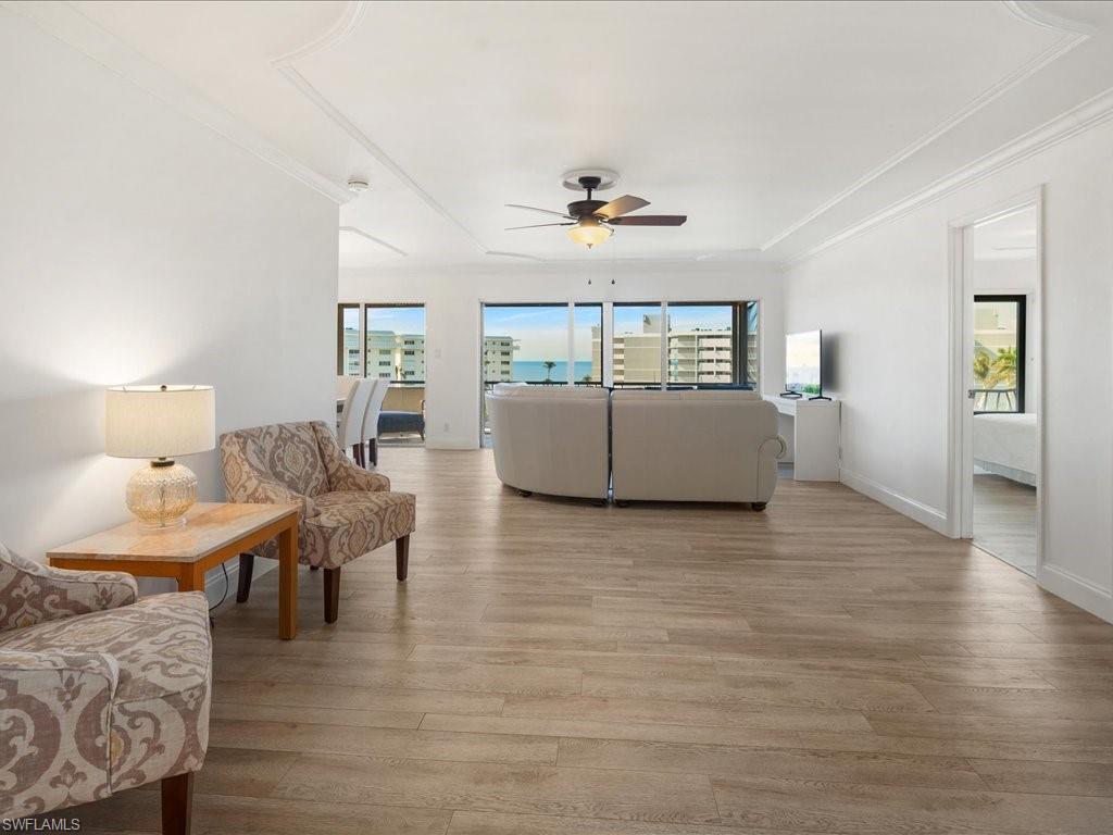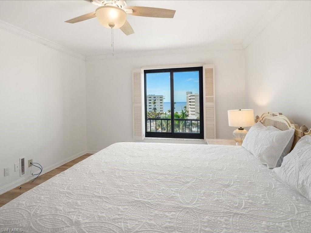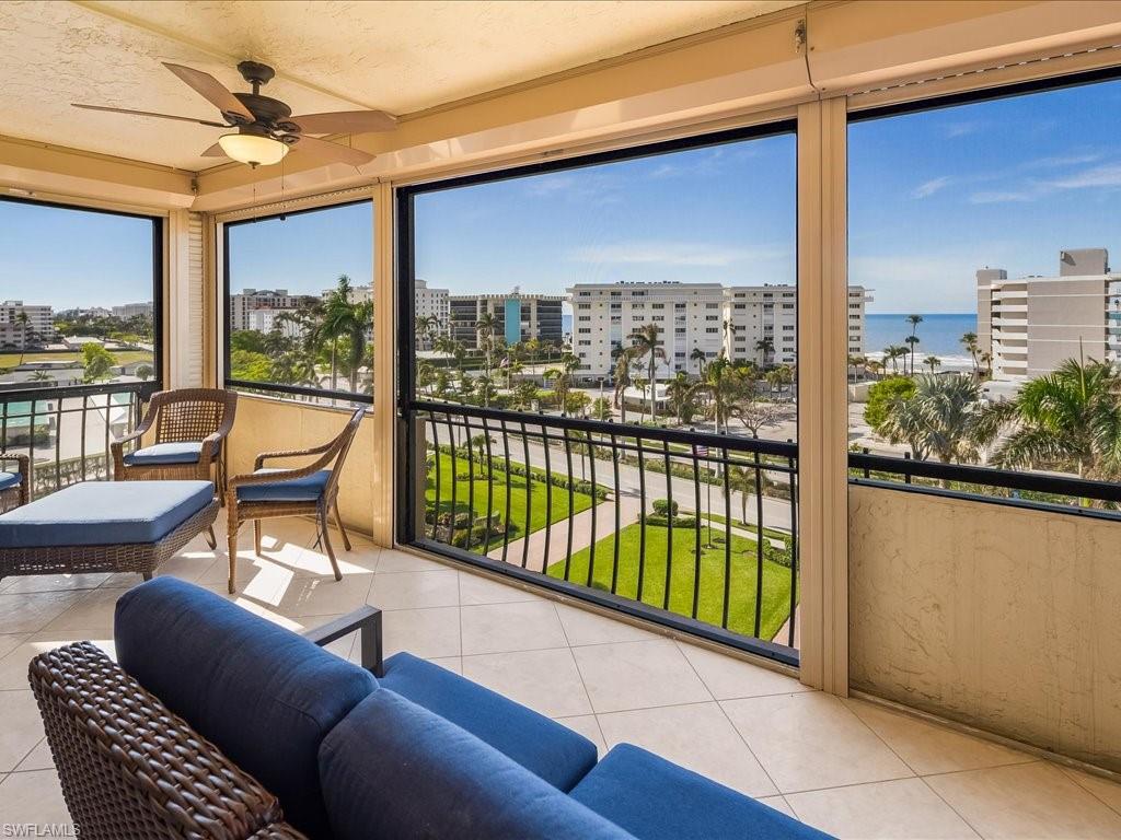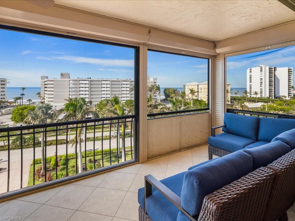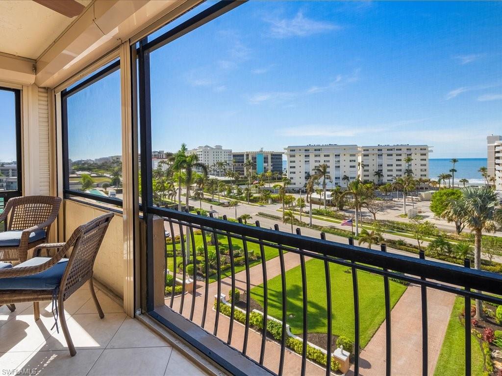 Bask in stunning westerly views and sweeping vistas along Gulf Shore Boulevard from this light-filled Madrid Club condo. Enjoy breathtaking sunsets with partial Gulf of Mexico views and coastal breezes right from your private balcony. Move-in ready for the season, this spacious unit offers a full-size laundry room—a rare feature in the building—and plenty of potential to personalize and reimagine the space over time. The Madrid Club has recently undergone a multi-million-dollar renovation and offers resort-style amenities, including a bayfront pool, fitness center, social rooms, an outdoor kitchen, kayak racks, and optional boat slips are separately available for lease or purchase. Beach access is just across the street, and memberships to The Moorings Private Beach Club are available. With under-building garage parking, air-conditioned storage, and a short stroll to The Village on Venetian Bay for fine dining and shopping, this is Naples coastal living at its best!