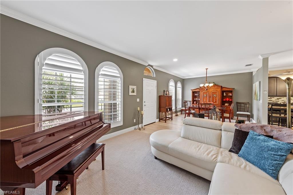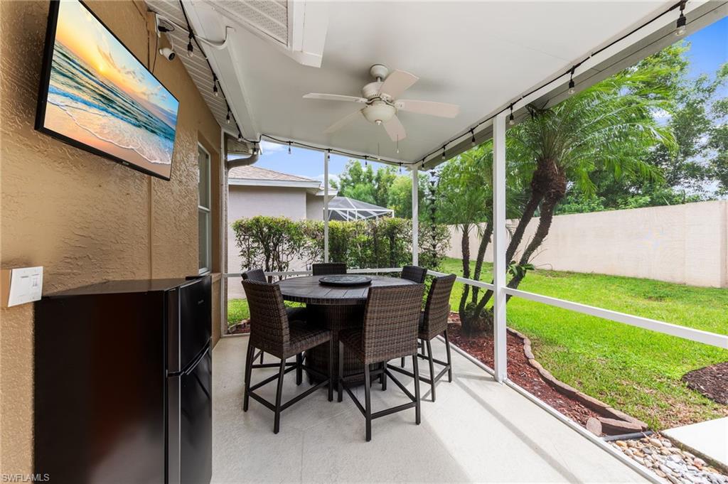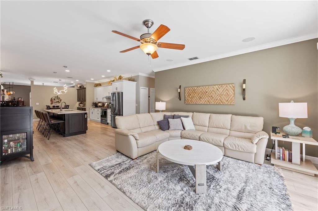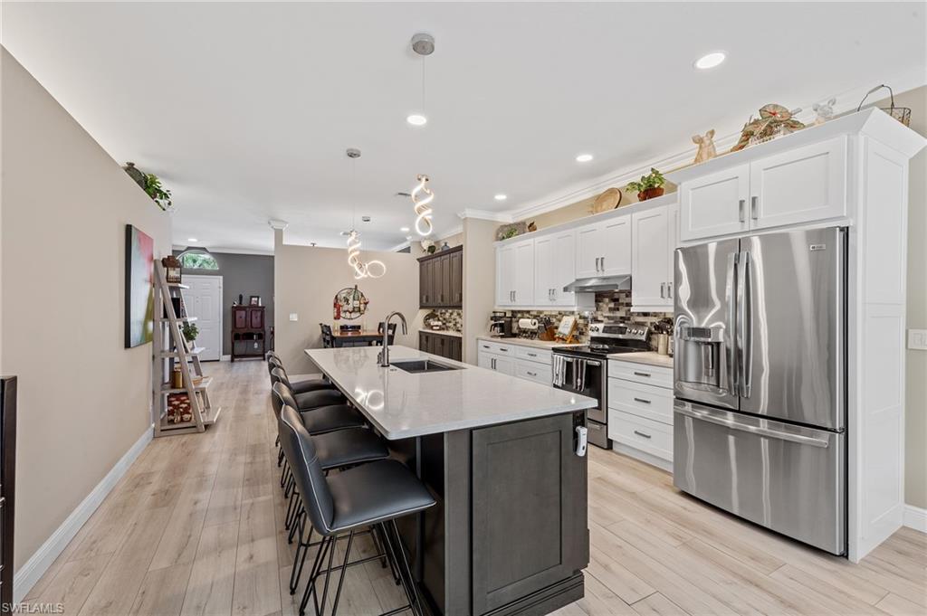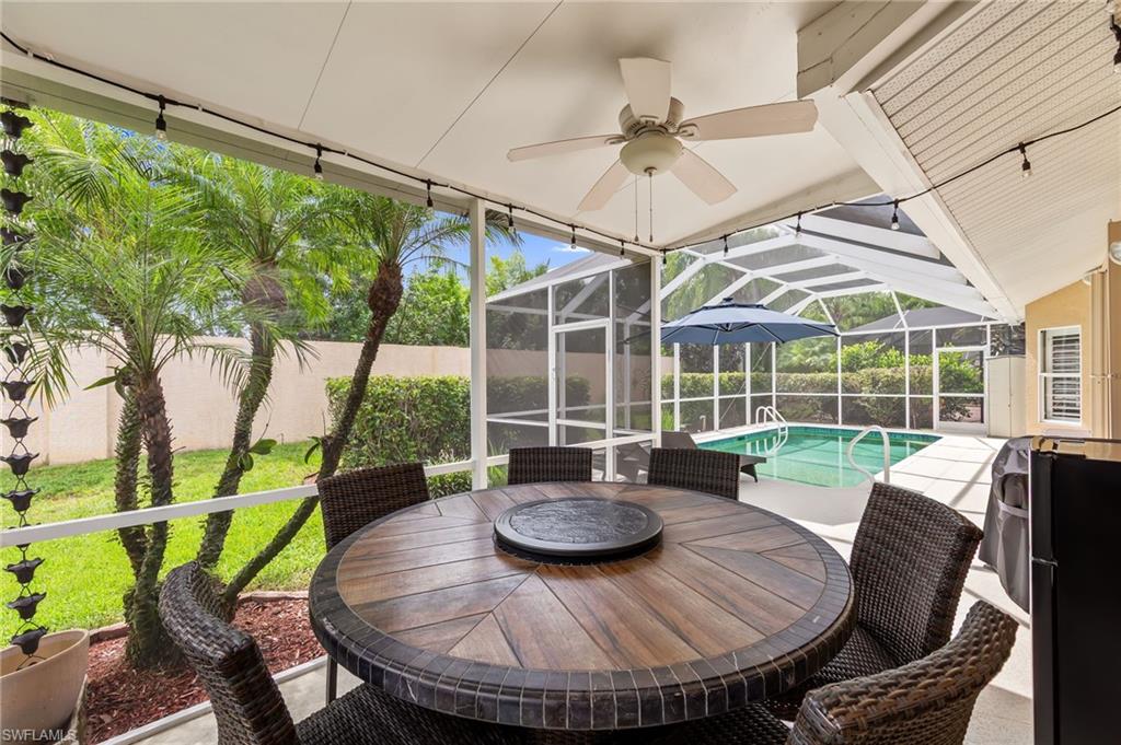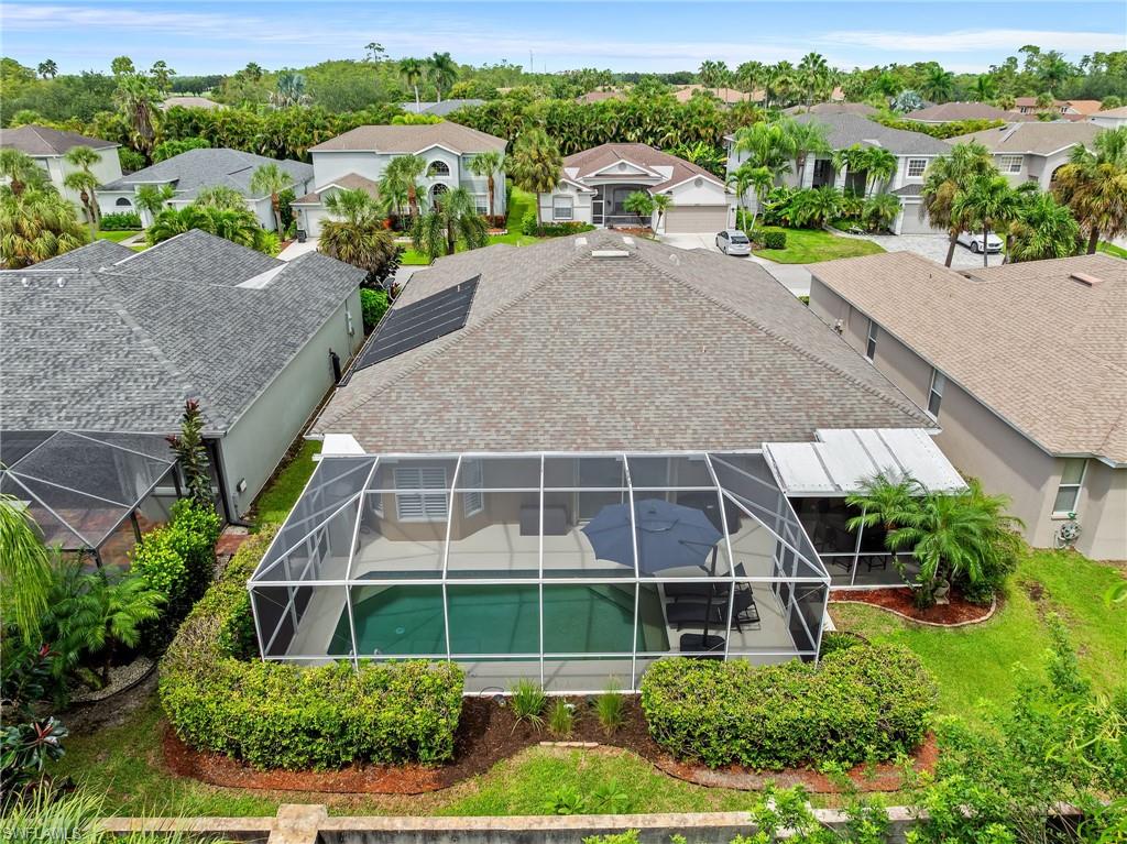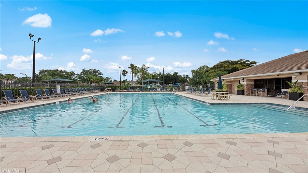 Completely updated and move-in ready, this 4 bedroom, 2 bath home features a spacious great room floor plan that blends comfort and style. The interior boasts luxury vinyl flooring in the main living areas, plush new carpet in the living room and bedrooms, custom crown moulding, tall baseboards, and plantation shutters throughout. A gourmet kitchen showcases custom cabinetry, solid surface quartz counters, and stainless steel appliances, all overlooking the family room and pool—perfect for entertaining family and guests. The outdoor living space is a highlight, with a solar-heated saltwater pool and a covered lanai ideal for dining or relaxing. The spacious primary suite offers a large walk-in closet with built-in cabinets and a stunning remodeled bathroom (2025) featuring a custom tile shower with seamless glass doors and a freestanding soaking tub. The guest bathroom has also been beautifully updated with a custom tiled shower, cabinetry, and sink. Additional updates include a new A/C (2024) and roof (2020), giving peace of mind for years to come. The front exterior has been refreshed with all-new landscaping, showcasing lush greenery, colorful plantings, and a thoughtfully designed layout that highlights the home’s inviting charm. This property combines modern upgrades with timeless features, creating a perfect place to call home. Stoneybrook amenities offer something for everyone! Enjoy access to an exercise room, 3 community pools, tennis courts, pickleball, volleyball, basketball, bocce ball, a playground, and even a baseball field. The public golf course means you can pay as you play—no membership required. Conveniently located near shopping, dining, I-75, FGCU, beaches, and RSW airport. You're just a short walk=drive to the golf clubhouse, CVS, Publix, Miromar Outlets, and Hertz Arena. With low association fees and a full range of amenities, it’s easy to see why Stoneybrook remains one of Estero’s most popular communities.