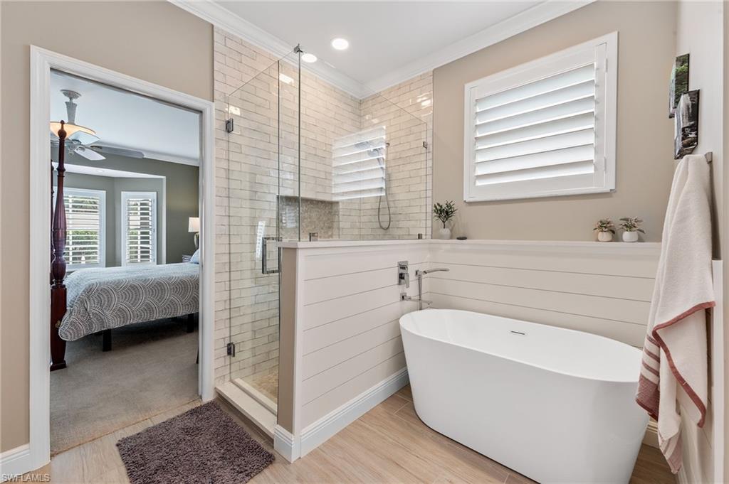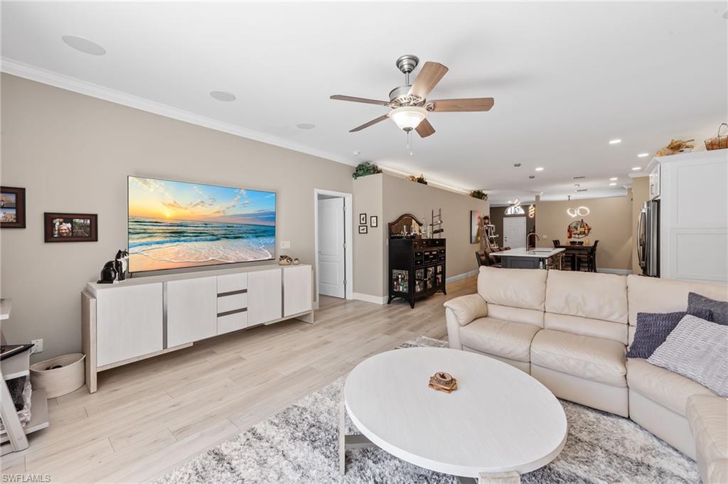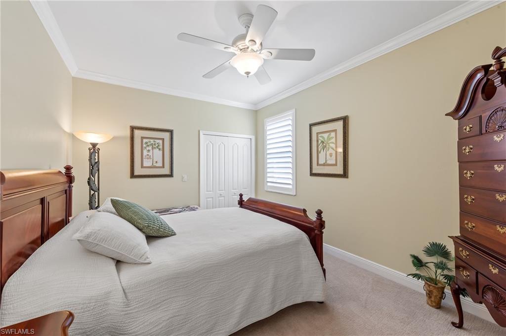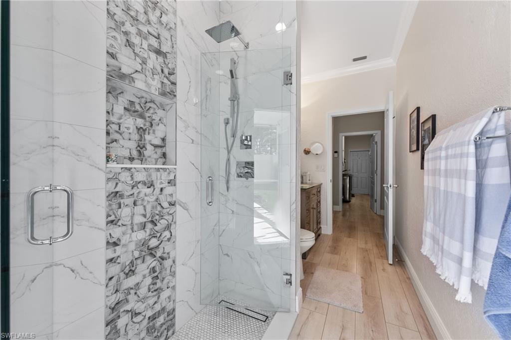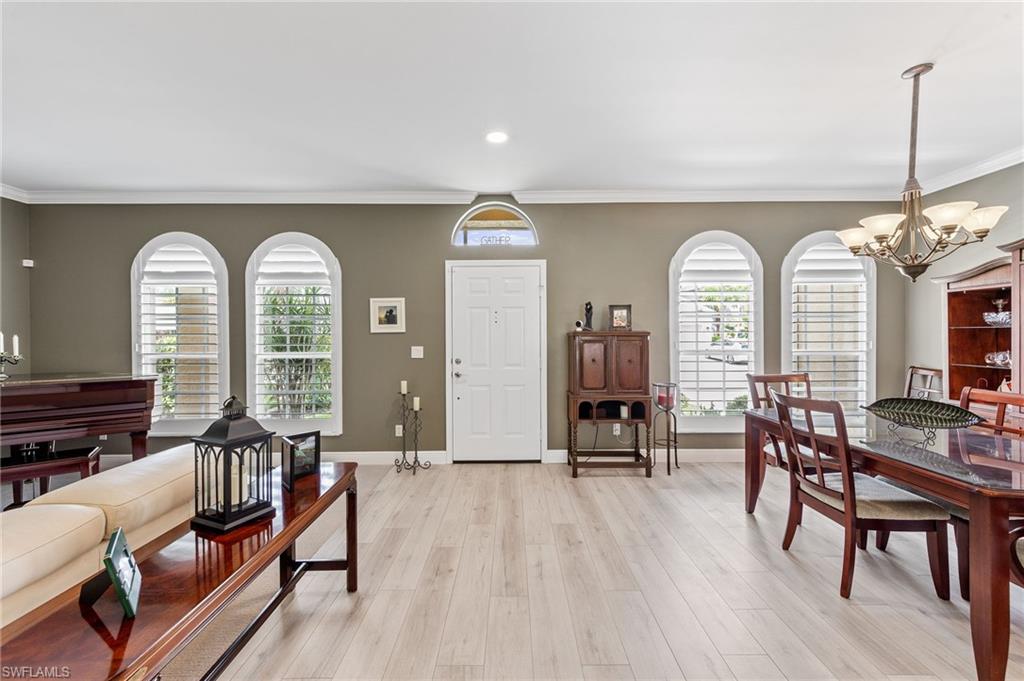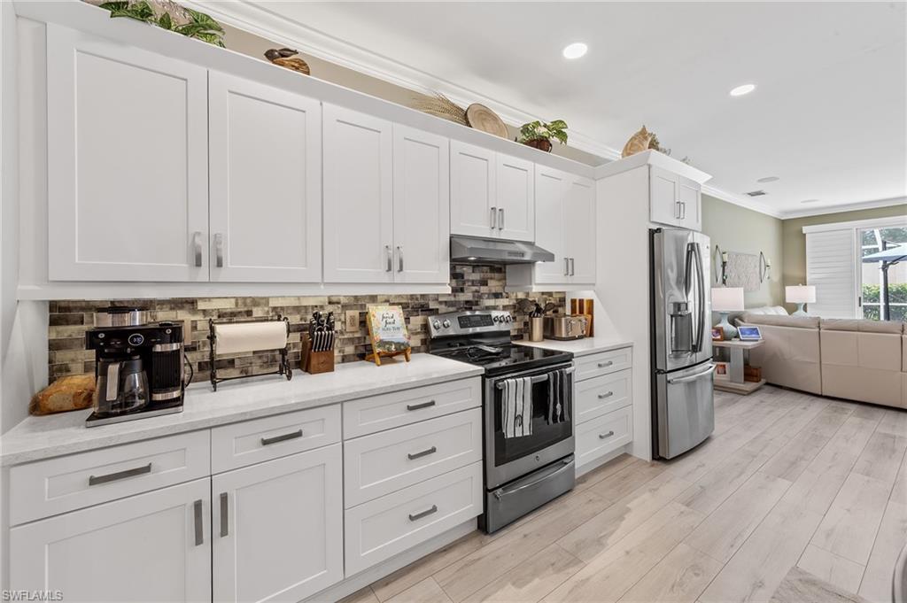 Completely updated and move-in ready, this 4 bedroom, 2 bath home features a spacious great room floor plan that blends comfort and style. The interior boasts luxury vinyl flooring in the main living areas, plush new carpet in the living room and bedrooms, custom crown moulding, tall baseboards, and plantation shutters throughout. A gourmet kitchen showcases custom cabinetry, solid surface quartz counters, and stainless steel appliances, all overlooking the family room and pool—perfect for entertaining family and guests. The outdoor living space is a highlight, with a solar-heated saltwater pool and a covered lanai ideal for dining or relaxing. The spacious primary suite offers a large walk-in closet with built-in cabinets and a stunning remodeled bathroom (2025) featuring a custom tile shower with seamless glass doors and a freestanding soaking tub. The guest bathroom has also been beautifully updated with a custom tiled shower, cabinetry, and sink. Additional updates include a new A/C (2024) and roof (2020), giving peace of mind for years to come. The front exterior has been refreshed with all-new landscaping, showcasing lush greenery, colorful plantings, and a thoughtfully designed layout that highlights the home’s inviting charm. This property combines modern upgrades with timeless features, creating a perfect place to call home. Stoneybrook amenities offer something for everyone! Enjoy access to an exercise room, 3 community pools, tennis courts, pickleball, volleyball, basketball, bocce ball, a playground, and even a baseball field. The public golf course means you can pay as you play—no membership required. Conveniently located near shopping, dining, I-75, FGCU, beaches, and RSW airport. You're just a short walk=drive to the golf clubhouse, CVS, Publix, Miromar Outlets, and Hertz Arena. With low association fees and a full range of amenities, it’s easy to see why Stoneybrook remains one of Estero’s most popular communities.