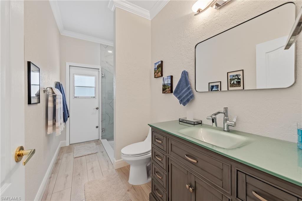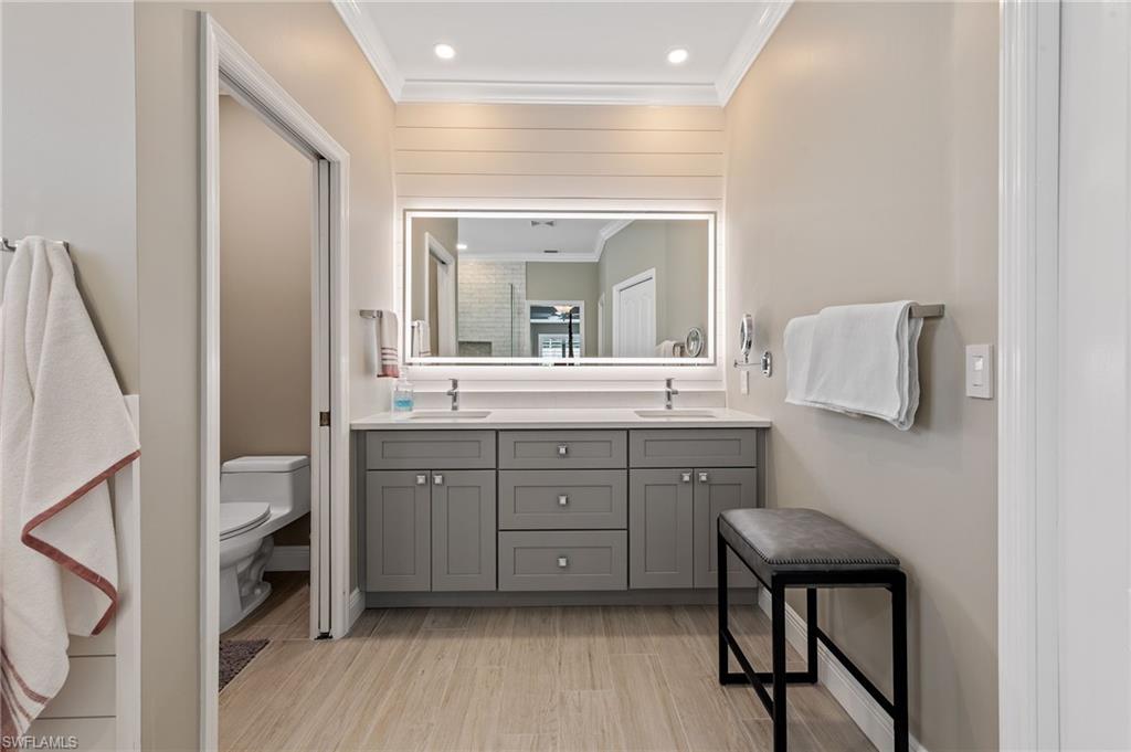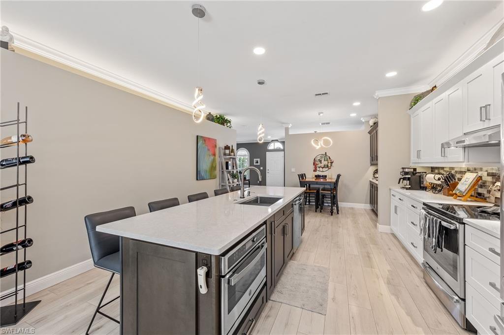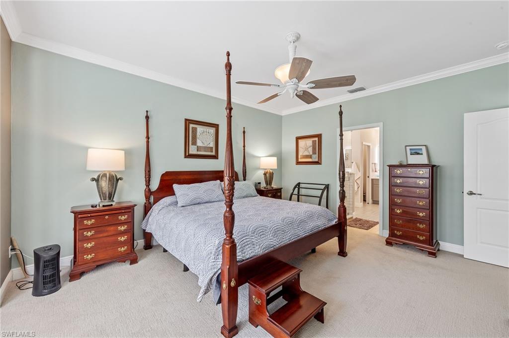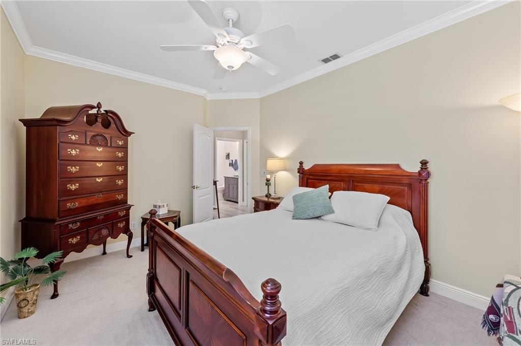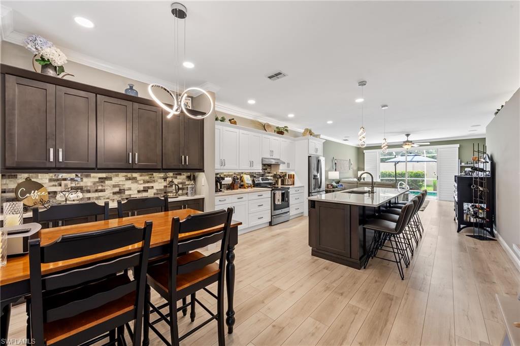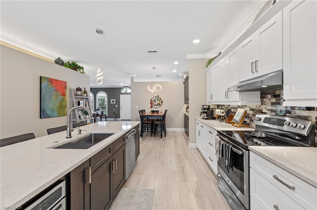Completely updated and move-in ready, this 4 bedroom, 2 bath home features a spacious great room floor plan that blends comfort and style. The interior boasts luxury vinyl flooring in the main living areas, plush new carpet in the living room and bedrooms, custom crown moulding, tall baseboards, and plantation shutters throughout. A gourmet kitchen showcases custom cabinetry, solid surface quartz counters, and stainless steel appliances, all overlooking the family room and pool—perfect for entertaining family and guests. The outdoor living space is a highlight, with a solar-heated saltwater pool and a covered lanai ideal for dining or relaxing. The spacious primary suite offers a large walk-in closet with built-in cabinets and a stunning remodeled bathroom (2025) featuring a custom tile shower with seamless glass doors and a freestanding soaking tub. The guest bathroom has also been beautifully updated with a custom tiled shower, cabinetry, and sink. Additional updates include a new A/C (2024) and roof (2020), giving peace of mind for years to come. The front exterior has been refreshed with all-new landscaping, showcasing lush greenery, colorful plantings, and a thoughtfully designed layout that highlights the home’s inviting charm. This property combines modern upgrades with timeless features, creating a perfect place to call home. Stoneybrook amenities offer something for everyone! Enjoy access to an exercise room, 3 community pools, tennis courts, pickleball, volleyball, basketball, bocce ball, a playground, and even a baseball field. The public golf course means you can pay as you play—no membership required. Conveniently located near shopping, dining, I-75, FGCU, beaches, and RSW airport. You're just a short walk=drive to the golf clubhouse, CVS, Publix, Miromar Outlets, and Hertz Arena. With low association fees and a full range of amenities, it’s easy to see why Stoneybrook remains one of Estero’s most popular communities.