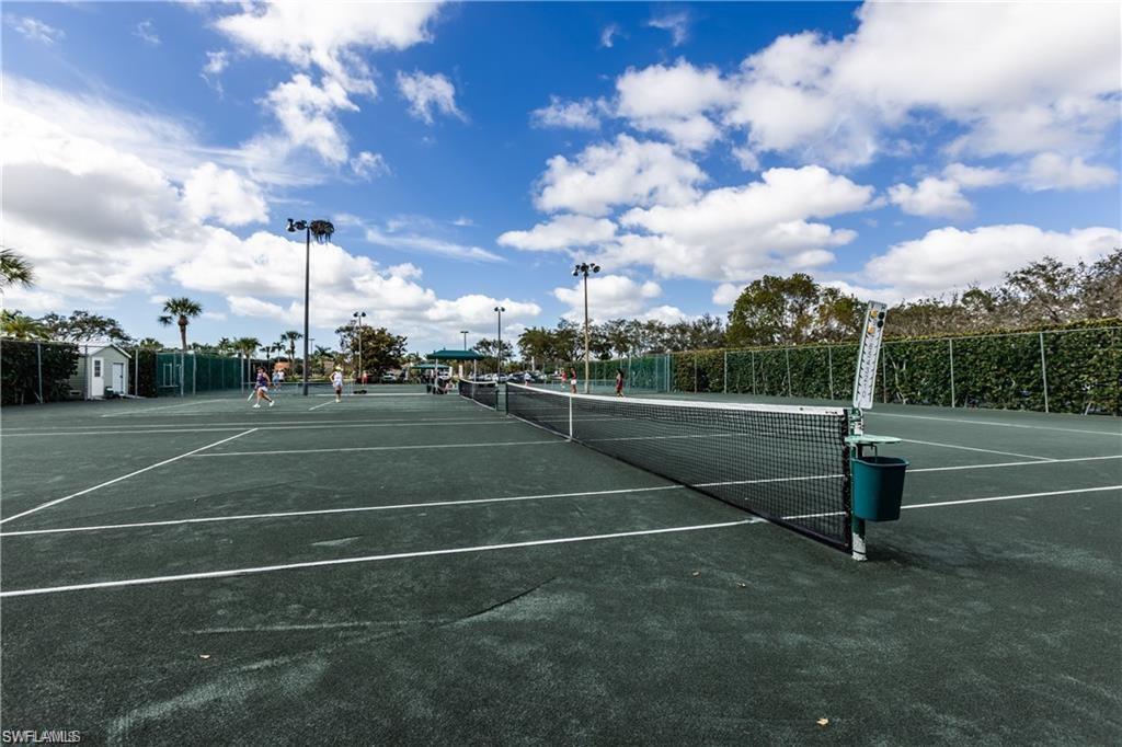 Quiet private Villa Single Family Home offers 3 Bedrooms, 2 Full Baths and a two-car garage it is set on a cul-de-sac It is located on Grafton Court which backs onto a totally Private Preserve area and no flood insurance is required! This is the largest villa floor plan with 1857 square feet! A screened entry opens to a Great Room with soaring high ceilings and architectural trays. Large windows fill the Great Room and Breakfast Area with light. The spacious primary bedroom suite has a tray ceiling, dual vanities, step-in shower, soaking tub, separate water closet and his and hers large walk-in closets. The split bedroom floor plan features 2 guest bedrooms and bathroom. Relax on the large screened lanai surrounded by lush landscaping in a private serene setting with no neighbors behind you. The paver driveway has ample parking for you and guests. The fees include Internet, cable, exterior painting every 5-6 years, lawn, mulch, and trimming, giving you lots of time to enjoy all the amenities that comes with Your Social Membership. Your fees include everything! Head to the Clubhouse for fabulous dining, bar, golf simulator, har-tru lit tennis courts, ping pong, billiards, library, card rooms, fire pit, great events, golfing May through October and much more. At the Divot you will find a full fitness center, outstanding complimentary fitness classes, breakfast and lunch. Glen Eagle is a Gated Community offering 2 gates leading to great restaurants, multiple grocery stores, shopping and only 4 miles to downtown Olde Naples, its beaches and boutiques. Naples is the Pickleball Capital of the World and this home is only 10 minutes to the USOP- National Pickle Ball Center which host the world pickleball tournaments each year, plus there are over 100 pickleball courts throughout Naples!