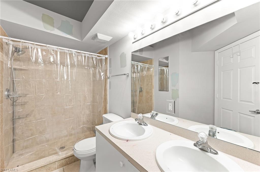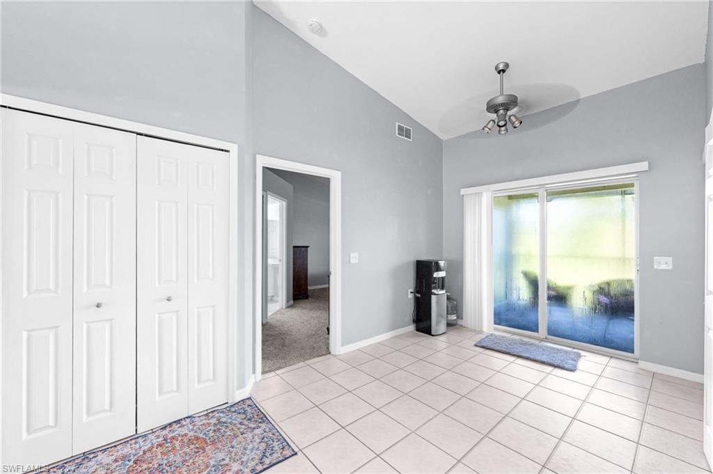 Welcome to Bermuda Palms — a highly desirable community in beautiful North Naples with an amazing location right off of I-75 and within walking distance to Seed to Table! This community offers low HOA fees, a sparkling community pool, and relaxing spa. This spacious second-floor condo features breathtaking lake and fountain views, perfectly framed by sunset skies right outside your window. The open-concept kitchen flows seamlessly into a generous dining and living area — ideal for both entertaining and everyday living. The large primary suite includes a walk-in closet and private en-suite bath, while the split floor plan provides added privacy for the second bedroom and guest bath. A versatile den with a closet can serve as a third bedroom, home office, or flex space. Step through sliding doors off the kitchen to enjoy your screened lanai and tranquil lake view — the perfect spot for morning coffee or evening unwinding. Centrally located near North Collier Regional Park, top-rated schools, shopping, dining, and just 10 minutes to the beach — this home offers the best of Naples living. Whether you're looking for your new full-time residence, seasonal retreat, or an investment opportunity, this is your chance to own a slice of paradise!