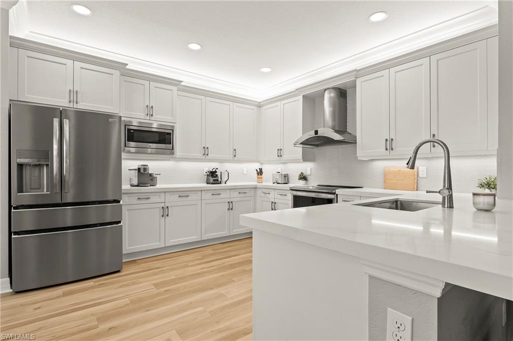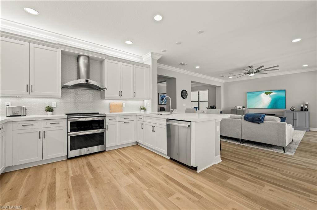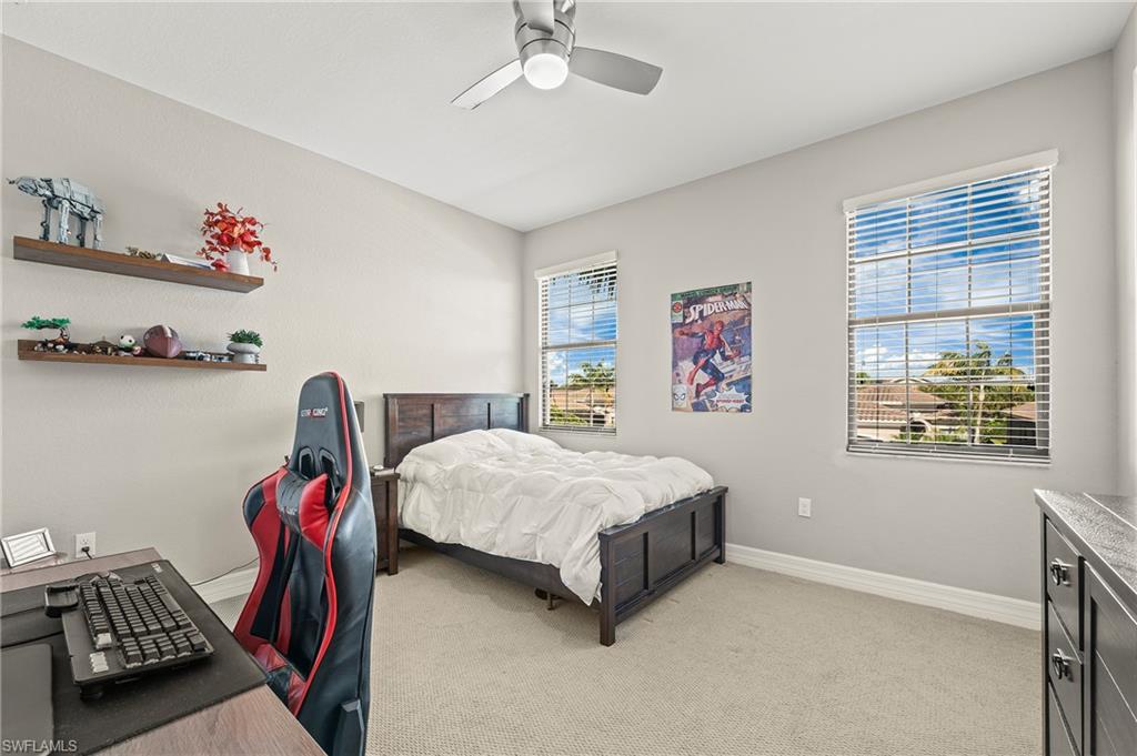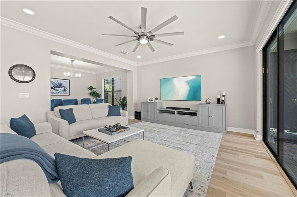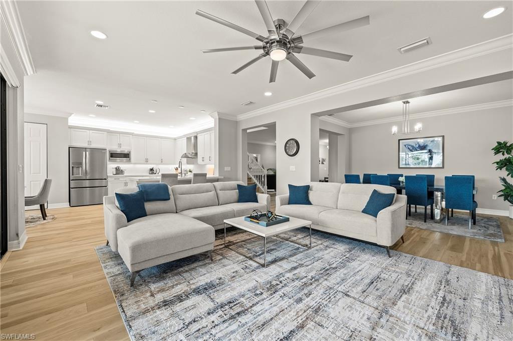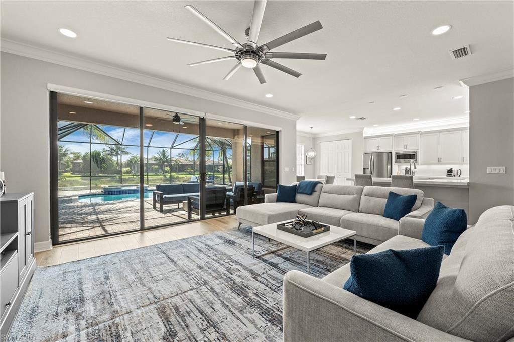 Welcome to this beautifully updated 5 bedroom + den, 4 bathroom home in the heart of Naples! This home has been meticulously maintained and just updated with new COREtec flooring, quartz countertops, new kitchen appliances, washer & dryer, and garage floor epoxy. The open layout is perfect for everyday and entertaining with the beautifully upgraded kitchen, featuring custom white cabinetry, quartz countertops, stainless steel appliances, and ample storage. Upstairs is a huge master bedroom & bathroom with his and hers walk-in closets, 3 more spacious bedrooms, and an open loft/game room area with endless possibilities. The extended lanai and oversized pool are a perfect place to relax and enjoy beautiful sunsets year-round with open, west-facing lake views. Impact windows & doors provide added storm protection, energy efficiency, and security for peace of mind. Marbella Isles is an active, resort-style community offering the ultimate in luxury and lifestyle. Designed for comfort and entertainment, the community’s expansive clubhouse features top-tier amenities including a resort-style pool, private cabanas, a kids’ splash park, and a playground. Stay active with a state-of-the-art fitness center, game room, indoor basketball court, 3 tennis courts, and 4 pickleball courts. For more relaxed fun, enjoy a friendly game of bocce with neighbors in this lively, social setting. Ideally situated with two convenient entrances, Marbella Isles is only 10 minutes from Naples’ beautiful beaches, Mercato, & Waterside Shops, 15 minutes to downtown, and 25 minutes to the airport. Families will value the location within a top-rated school district, along with nearby prestigious private schools like the Community School of Naples and First Baptist Academy.