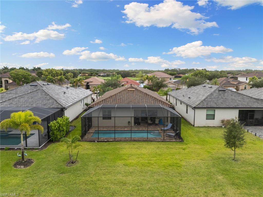 Welcome to your piece of paradise in sunny Naples! This stunning single-family home features the popular one-story Trevi floor plan, offering a spacious 4-bedroom, 3-bathroom layout with a desirable Split Bedrooms design for maximum privacy. The true highlight of this home is the private, screened lanai and beautiful below-ground pool, which provide spectacular, direct waterfront views of the lake. With its ideal western exposure, the property is perfectly positioned for you to witness breathtaking sunsets over the water every evening, creating a serene and unforgettable backdrop for both relaxation and entertaining. Beyond the stunning views, you'll also have access to a resort-style Clubhouse, pool, exercise room, library, tennis courts, and a public golf course, all conveniently located just moments from a local shopping center. This home truly offers the best of Florida living with an incredible view.