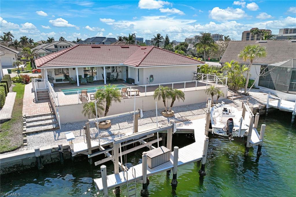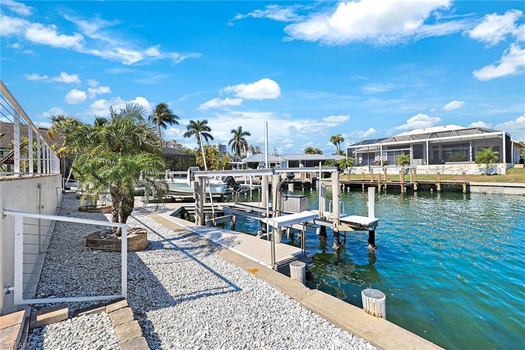 This ideally located waterfront beach cottage is for boaters and beach goers alike. Near multiple public beach accesses, this waterfront home also features two boat lifts with quick boating access to the gulf. Seller has transferable NFIP flood insurance policy at low rate. This cozy home features three bedrooms and two baths with nice views out to Landmark Waterway, which is a great place to kayak or jump on a paddleboard. Consistently updated throughout the years, the home is hurricane-protected with electric shutters and a backup generator for peace of mind, according to the owner. The home also features surround sound throughout for that Margaritaville experience. Grab your toothbrush, your flip flops and your bathing suit because this home is sold turnkey furnished and ready to go. The best restaurants, movie theater, mini-golf and shops of Marco Island are all within a short bike ride. This home can double as a year-round home or potential rental for investors with tile throughout and quality Kraft Maid cabinets with granite countertops in the kitchen and baths.