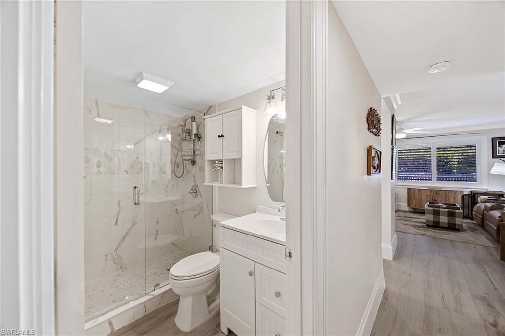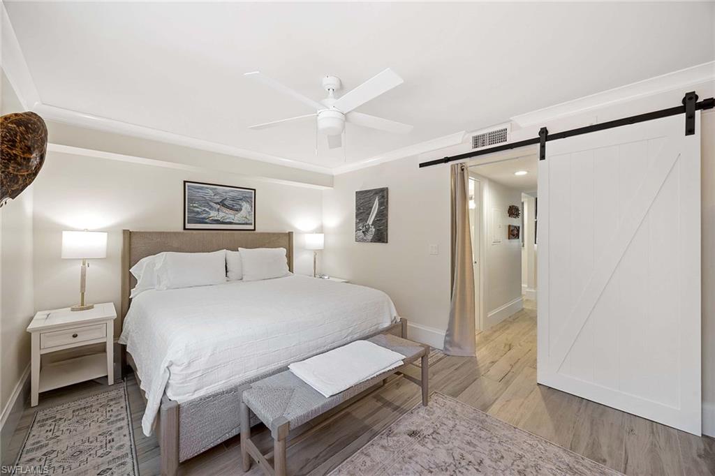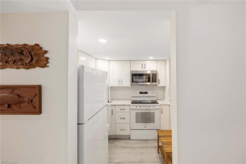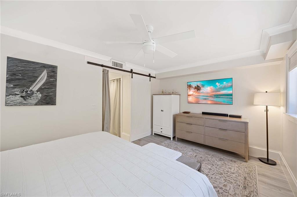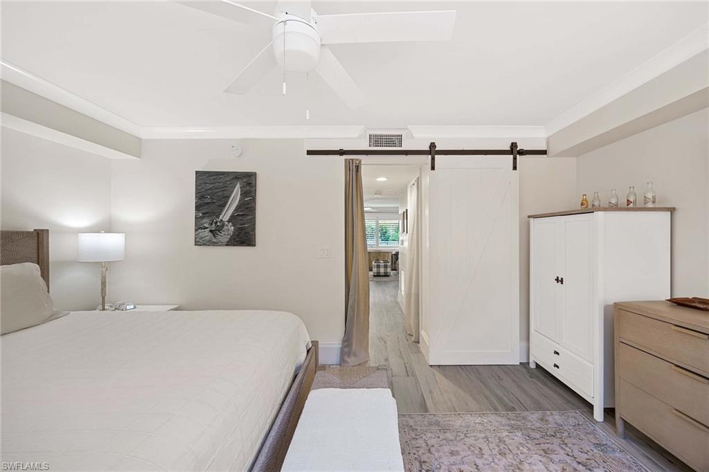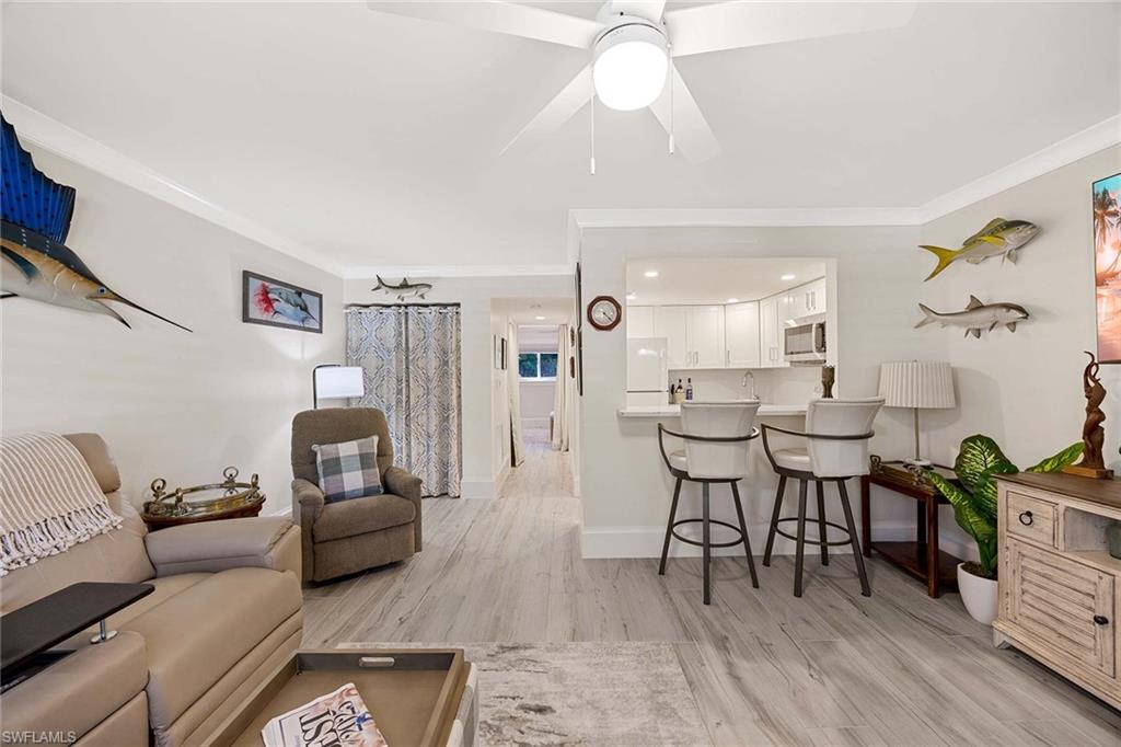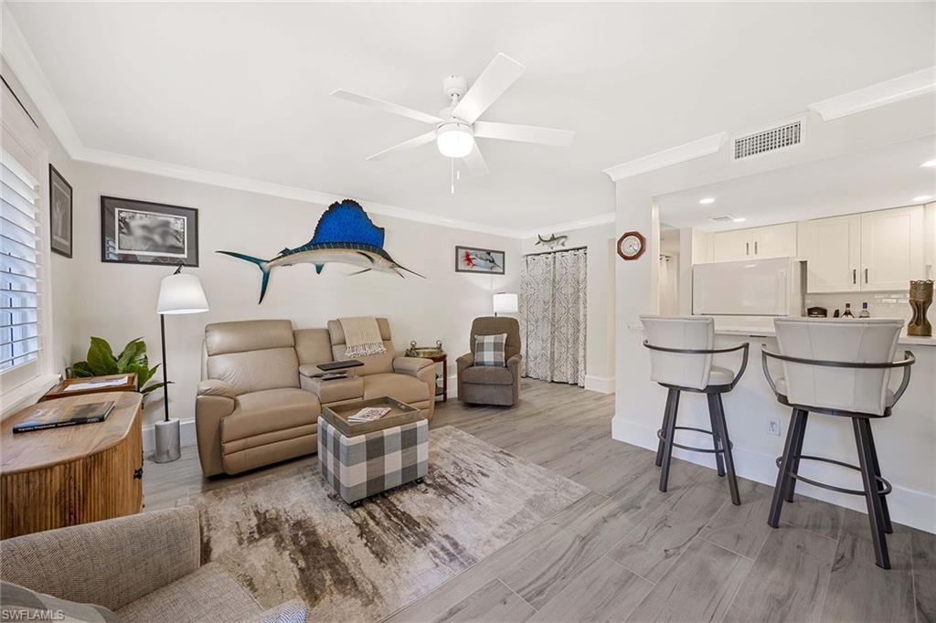 Welcome to Castleton Gardens, where Old Naples charm meets easy coastal living. This beautifully updated first-floor condominium is offered turnkey furnished and features one bedroom, one bath and tasteful finishes throughout. The kitchen includes quartz countertops, new appliances, and designer cabinetry, while the living area is highlighted by crown molding, LED lighting, plantation shutters, updated fixtures and new hurricane-impact windows. The spacious bedroom features a walk-in closet, and the renovated bath adds a clean, modern touch. In-unit laundry and the ease of single-level living provide everyday convenience. Castleton Gardens is a boutique, gated community offering a resort-style pool, spa, gazebo and barbecue area, all set within a banyan tree-lined courtyard. Just three blocks to 5th Avenue South, two blocks to Cambier Park, one block to Tin City and minutes to Naples beaches, this puts the best of downtown Naples right at your doorstep. With flexible rental options (12 times per year, 30-day minimum), it’s ideal as a seasonal retreat or investment.