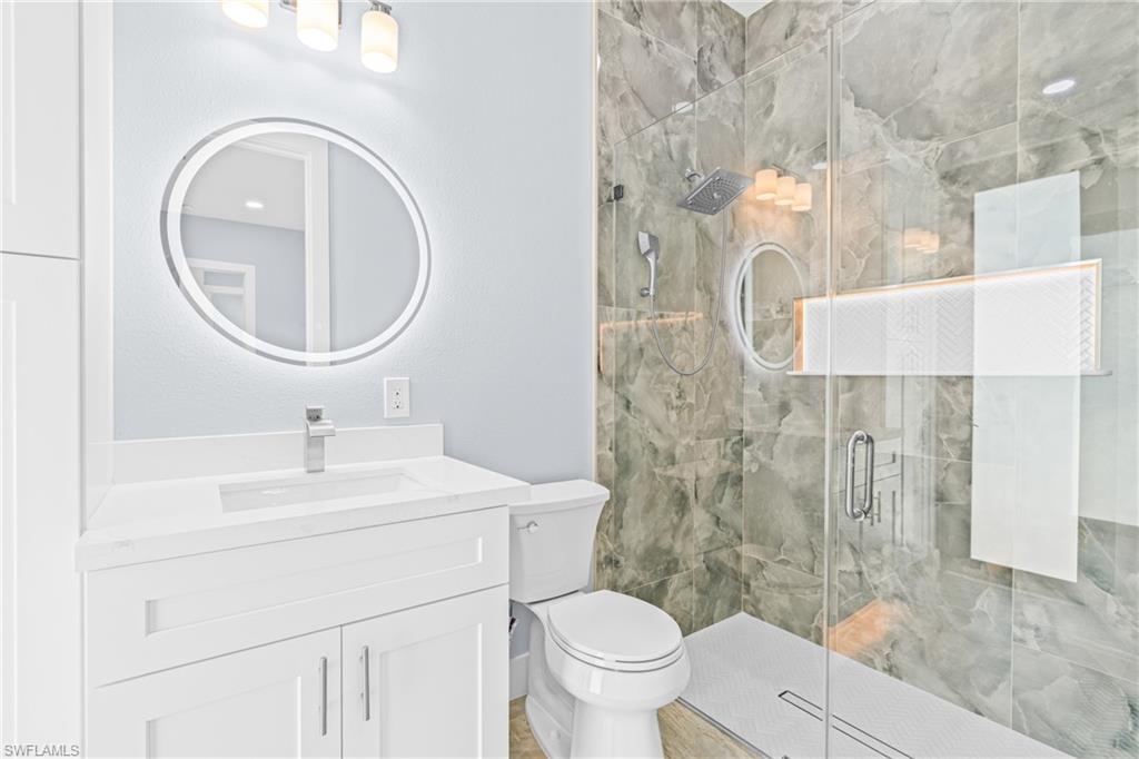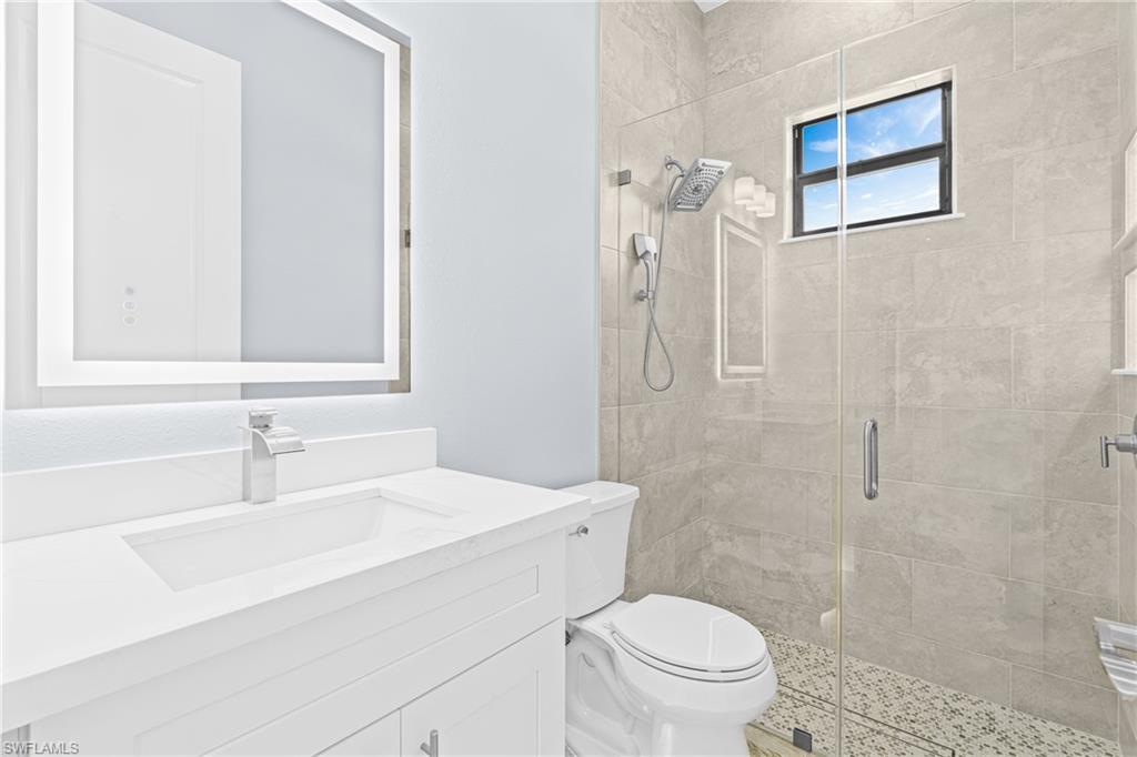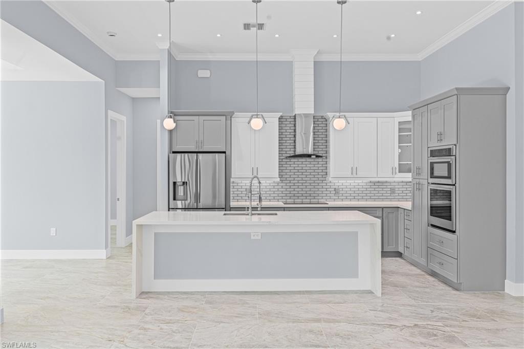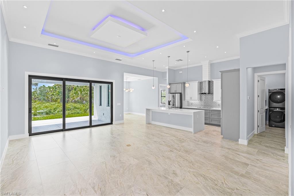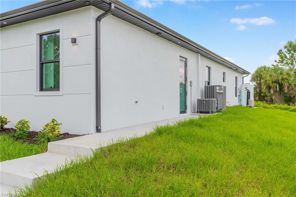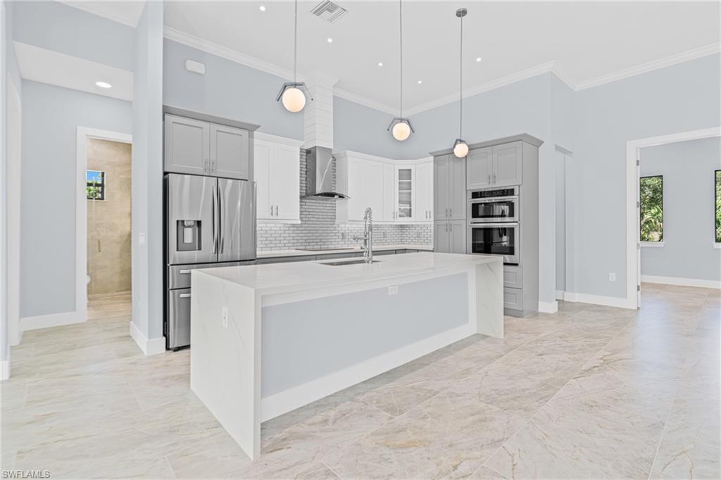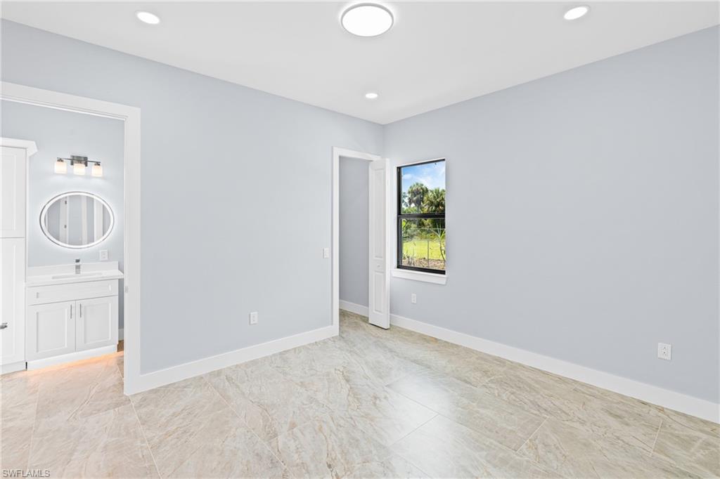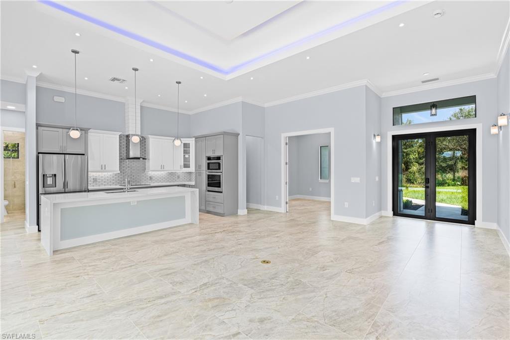 Nestled on 2.27 acres in the highly desirable Golden Gate Estates neighborhood, this exquisite property offers unparalleled privacy thanks to a wide 12-foot by 370-foot-long driveway. The exterior features decorative lighting, full gutters with underground drainage, and lush natural landscaping. Step inside to discover a thoughtfully designed interior boasting high-end finishes throughout, including elegant porcelain floors, impact-resistant windows and doors, and high ceilings with tray and coffered ceiling details. The home is equipped with a whole-house surge protector, two A/C units with smart thermostats, smart LED lighting, and a reverse osmosis water system. The main residence features 3 spacious bedrooms with modern lighting and generous walk-in closets, and 3 luxurious bathrooms — one with access; perfect for a future pool. The primary suite offers a bathroom with dual vanities and a beautifully designed shower. All bathrooms include LED mirrors and high-quality glass doors. The expansive living and dining areas flow seamlessly, with a den offering a serene front-facing view — perfect for a home office. The laundry room is ideally located inside the home and comes fully equipped with a "Washer and Dryer". A chef’s dream, the kitchen features custom wood cabinetry, quartz countertops with a stunning waterfall island, a mix of white and gray cabinetry, under cabinet lighting, and high-end built-in appliances including a wall-mounted oven/microwave and range hood. Enjoy the outdoors year-round in the oversized lanai, complete with a summer kitchen and wide sliding glass doors that open to expansive views of your private backyard. Additionally, this home includes a separate in-law suite, ideal for rental income or multi-generational living. It offers 1 bedroom with raised TV wiring, 1 full bath with LED mirror and elegant shower, a comfortable living space, and a fully equipped kitchen. Don't miss this opportunity to own a versatile, luxurious property in one of the most sought-after areas. Schedule your private showing today and experience all this home has to offer!