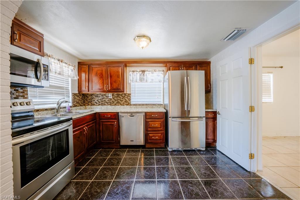 BEAUTIFUL HOME! Tucked away on a peaceful street in Naples, this home offers charm, space, and opportunities to make it your own. From the moment you arrive, you’ll feel the inviting character this property carries. Inside, the home is filled with natural light that pours through the windows, creating a warm and uplifting atmosphere. The living areas flow seamlessly, making it easy to relax after a long day or entertain friends and family. The kitchen serves as the heart of the home, featuring elegant granite countertops and rich espresso cabinetry. With plenty of storage and workspace, it’s the perfect setup for casual weeknight dinners or festive holiday gatherings. Each bedroom is designed for comfort, offering cozy retreats at the end of the day, while the bathrooms are thoughtfully laid out with everyday functionality in mind. Step outside, and the backyard reveals the true personality of this property. A spacious 400 sq. ft shed stands proudly at the rear, ideal for storage, a workshop, or even a creative studio. Beyond that, the garden, which was once home to a pool, can easily be reimagined to bring back sparkling waters and sun soaked afternoons, or kept as a tranquil garden retreat. It’s a space that adapts to whatever lifestyle you envision. This property balances comfort and flexibility beautifully. Whether you’re dreaming of weekend barbecues, cultivating a lush garden, or diving into poolside living, this Naples home gives you the foundation to make it happen. Add in its convenient location close to shopping, dining, and just a short drive to the Gulf, and you’ll see why it’s truly a standout.