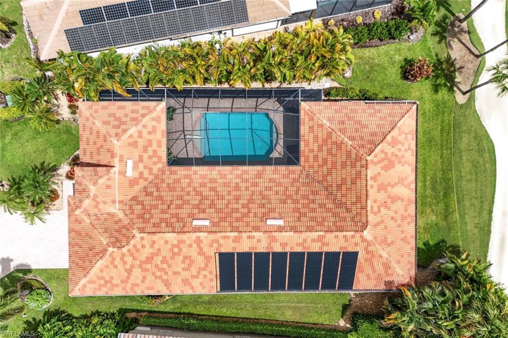 Elegant Courtyard Pool Home with Guest Cabana! GOLF MEMBERSHIP INCLUDED! This beautifully updated courtyard pool home features 2 bedrooms and 2 baths in the main house, plus a detached cabana suite with full bath ideal for guests or a private office. The kitchen shines with quartz countertops, granite sink, backsplash, under-cabinet lighting, added outlets, and a complete set of newer GE appliances. Bathrooms include upgraded shower doors, fixtures, and safety grab bars. The private pool courtyard has been enhanced with a new heat pump, filter, pump, timer, drain covers, and solar heating, completed alongside a new roof with gutters and back door. Protection comes with Imagen power hurricane shutters. Major mechanical updates include a new 5-ton A/C system for the main home, full cabana system replacement, smart thermostats, upgraded alarm sensors, and whole-home water filtration. Added touches: WiFi garage opener with backup battery, EV charging station, custom garage/lanai storage, and new Levolor blinds. Move-in ready and comprehensively upgraded, this home offers stylish comfort and effortless indoor-outdoor living. Hunters Ridge is a Private Golf & Country Club, not a bundled community with only 420 golf members, no Chelsea system and our golf member enthusiasts can play the course as often as they like! Hunters Ridge is very friendly, casual, and offers a large variety of social activities. Only 6 miles from Barefoot Beach Preserve! Just minutes to the best shopping, dining, entertainment, and the RSW Airport. 18 hole championship golf course, golf simulators, large community swimming pool with food & beverage service, community center, fitness center, clubhouse, beautiful dining room and grill room, poolside cafe, tennis courts, pickleball courts and much more! Adding to the lifestyle appeal, a major renovation is currently underway. The Activity and Fitness Center is being transformed into a modern, updated Community Center with expanded fitness and wellness amenities an exciting enhancement that will elevate daily living, increase home values, and truly bring resort style wellness to your doorstep.