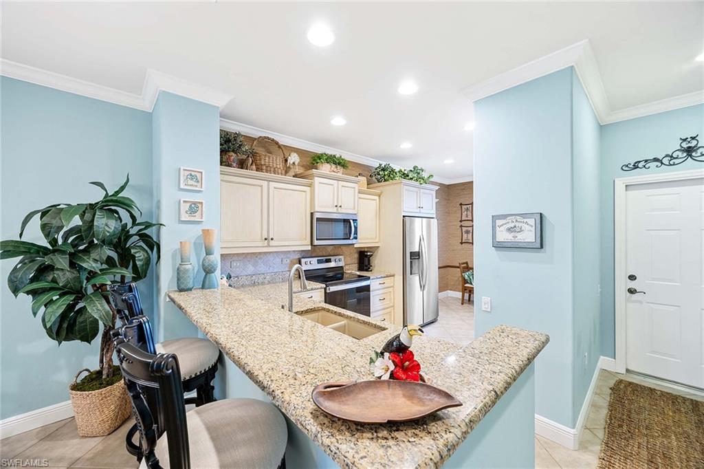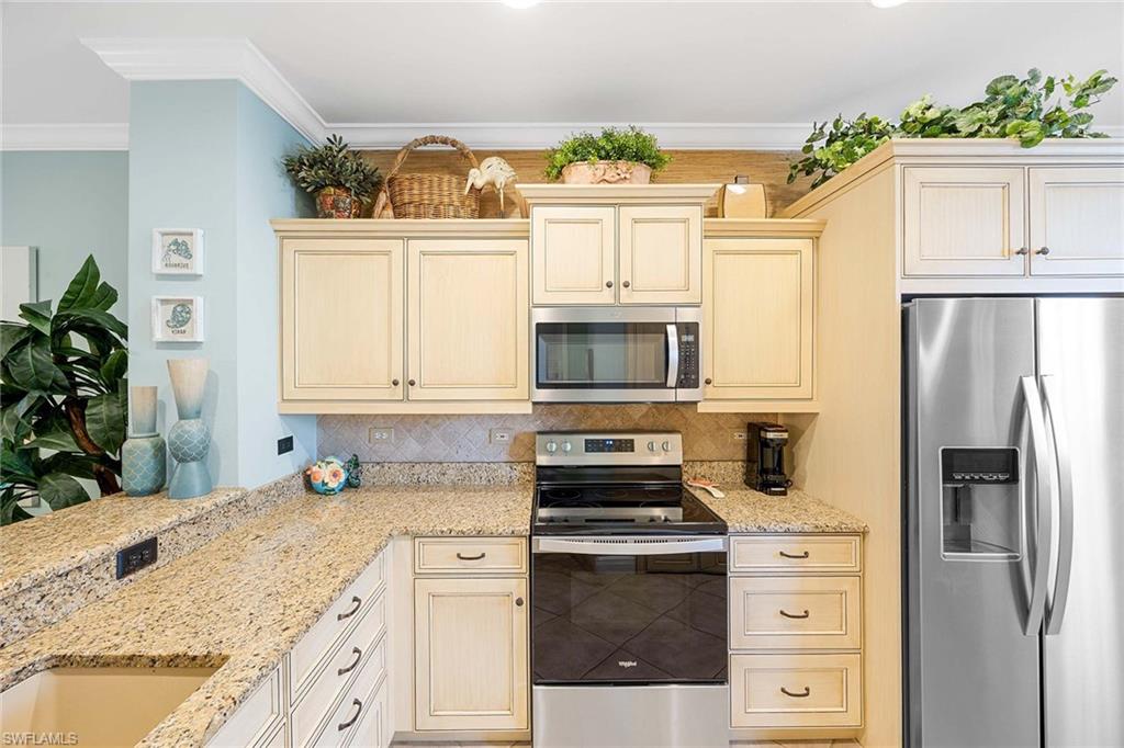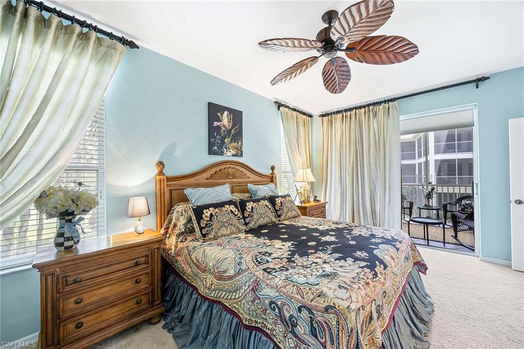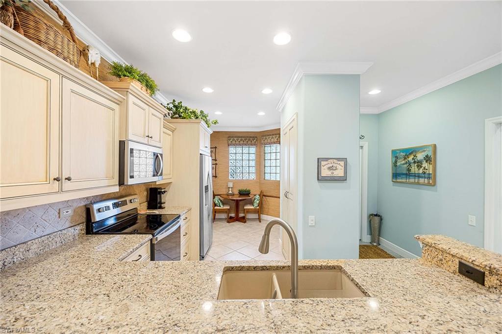 Experience the Vanderbilt Country Club lifestyle! Welcome to one of Naples premier bundled golf communities, offering an active social scene and resort-style amenities. Residents enjoy pickleball, tennis, bocce, community pools, dining options, fitness, and more. All within a short distance of your home. Dining choices abound, whether you prefer elegant club dining, the Terrace Café by the pool with live island music or the casual sports bar for lighter fare. The community also offers massage therapy, personal training, a state-of-the-art gym, full-time golf, tennis, and pickleball professionals, along with themed events, dancing and countless social activities. This beautifully maintained two-bedroom plus den, second-floor condominium showcases fabulous interior design with coastal-inspired colors, an open floor plan and stunning views of the 13th green. The eat-in kitchen features grass cloth walls for a café-style feel, pantry, granite countertops, newer stainless-steel appliance and upgraded flooring. The den provides a comfortable space for a home office or relaxation. Enjoy outdoor living on the screened lanai overlooking lush green space and the 13th green. Additional perks include a spacious storage closet just outside the condominium. At Vanderbilt Country Club, you'll find not just a home, but a lifestyle championship golf, vibrant friendships and an incredible community atmosphere!