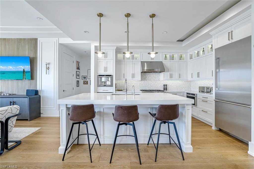 This exceptional residence is perfectly located in the heart of Old Naples, just steps from fine dining, boutique shops, and the historic Naples Hotel on 3rd Street. From this coveted address, you’ll enjoy world-class restaurants, weekend farmer’s markets, and the coastal lifestyle amenities Naples is known for—while being only three blocks from the pristine beach. Set within the highly sought-after 382 building, this boutique property offers the exclusivity of only four residences with secure, private entry. Privacy and sophistication define the experience here, making it an ideal choice for a full-time luxury home or a refined pied-à-terre in one of Naples’ most desirable neighborhoods. Apartment 301, located on the third floor, has been recently remodeled and is being offered fully furnished with brand-new, designer-selected pieces. Flooded with natural light through impact-resistant windows and automated pocket walls, the residence opens to sweeping northwest views. From the comfort of home, enjoy picturesque sunsets in the evening and vibrant views of the 12th Avenue South Farmer’s Market below. The open-concept design boasts 10-foot ceilings and white oak flooring throughout, creating a bright and airy atmosphere that blends indoor and outdoor living. A spacious private terrace enhances this lifestyle, offering the perfect setting to entertain or simply enjoy the energy of Old Naples. Elegant features include Thermador appliances with a built-in coffee station, a large walk-in pantry, and thoughtfully curated furnishings that complement the modern design. Every detail emphasizes comfort, style, and functionality, making this a true turnkey opportunity. Whether as a sophisticated getaway or a permanent retreat, Apartment 301 offers an unparalleled combination of luxury, privacy, and location. With its recent remodel, brand-new furnishings, and prime Old Naples setting, this one-of-a-kind residence is truly a must-see.