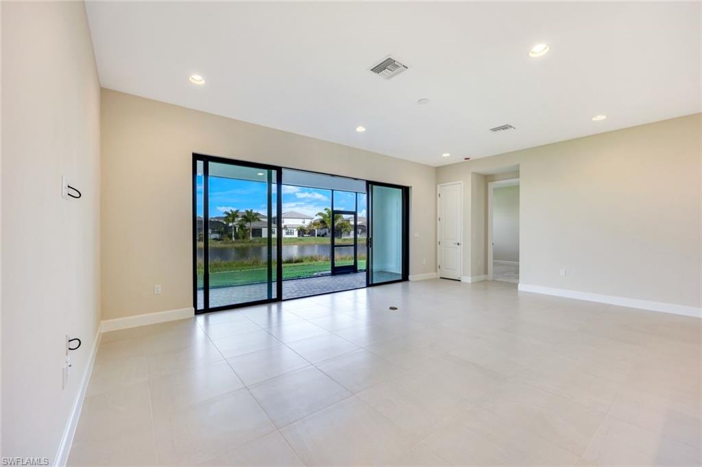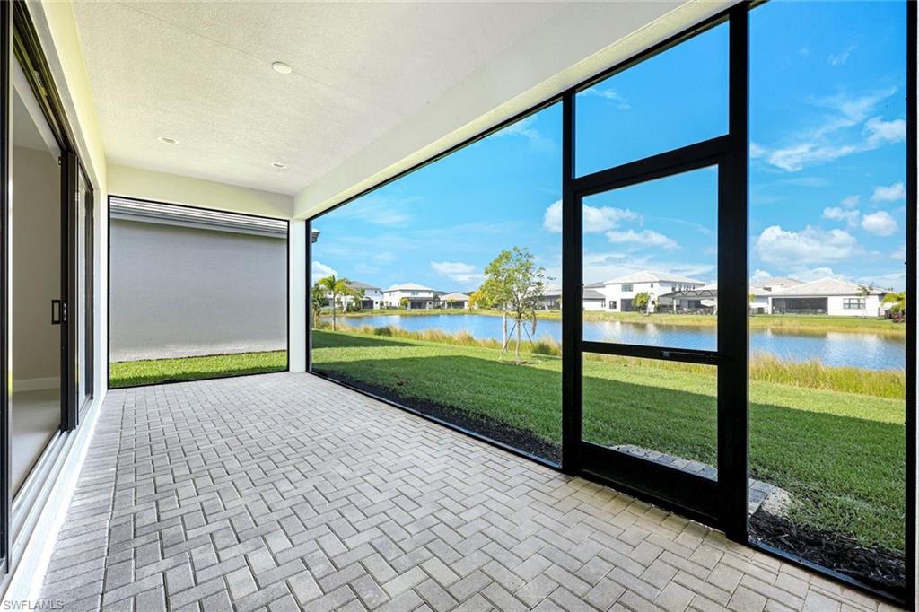 This brand-new “Acadia” model is NOW AVAILABLE in RiverCreek, Estero’s most sought-after new community. Designed with modern living in mind, this home offers 2 bedrooms plus a den, 2 bathrooms, a 2-car garage, and impact-resistant windows throughout. The open-concept layout blends the kitchen, dining, and living areas, all overlooking the backyard with room for a future pool. The exterior of the home showcases a modern design with cultured stone accents, upgraded landscaping, elegant glass entry doors, and a serene lake view. An extended driveway provides two extra feet of parking space, enhancing convenience and curb appeal. Inside, the home is finished with rectified 24x24 tile flooring in the main living areas, upgraded interior paint in Shoji White, and upgraded window coverings. The gourmet kitchen is a true highlight, featuring quartz countertops throughout, a chimney-style hood, GE stainless steel appliances, and an upgraded electrical package for added functionality. A pre-plumbed connection for a future laundry sink adds extra convenience. The owner’s suite includes two spacious walk-in closets and a spa-like bathroom with dual sinks. Beyond the home, RiverCreek offers an incredible 12,000-square-foot clubhouse filled with amenities. Residents enjoy a resort-style pool, fire pit, state-of-the-art fitness center, indoor sports complex, tennis and pickleball courts, card and game rooms, and dedicated spaces for kids including a splash park and playground. All of this is set in a prime location, just minutes from shopping, dining, and the best of Southwest Florida living.
